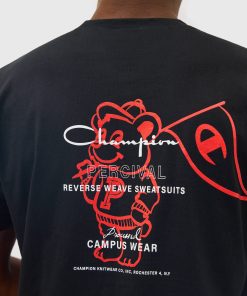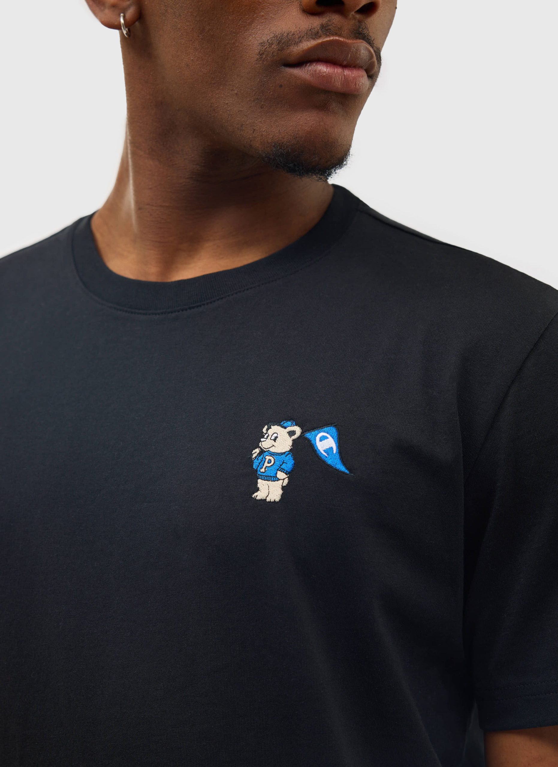 - Features: Men’s Regular Fit Champion T Shirt in Black. This heavyweight tee is embroidered in London with a hand drawn Percival illustration ‘Bear Mascot’ and iconic C logo patch on the sleeve. The short sleeve t shirt is a regular fit and is a wardrobe staple, perfect for layering all year round.