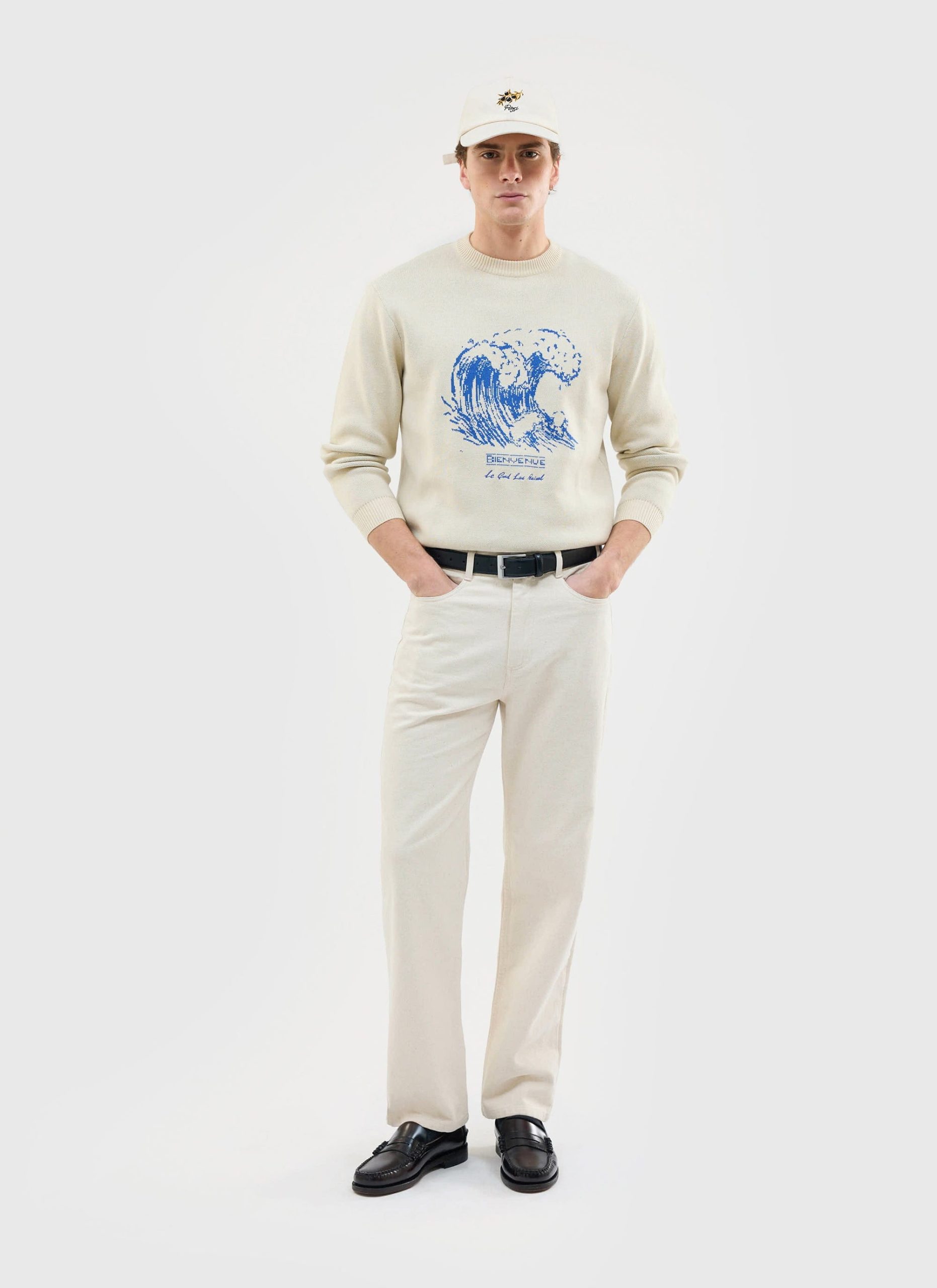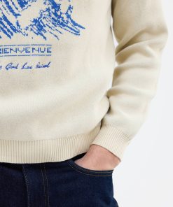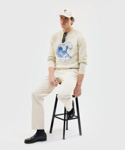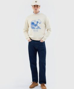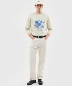 - Features: Men’s crew neck jumper made from 100% cotton for maximum comfort. This cream jumper features an intricately designed wave embroidery on the front and a ribbed crew neck for a classic finish. Lightweight yet high in quality, it’s the perfect cotton sweatshirt for cooler summer evenings and pairs effortlessly with both denim and linen trousers.