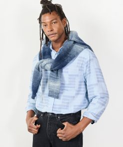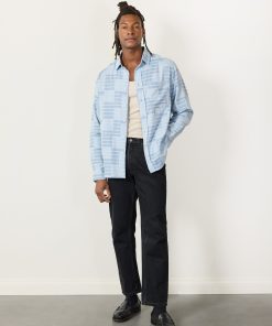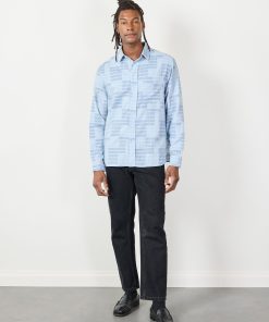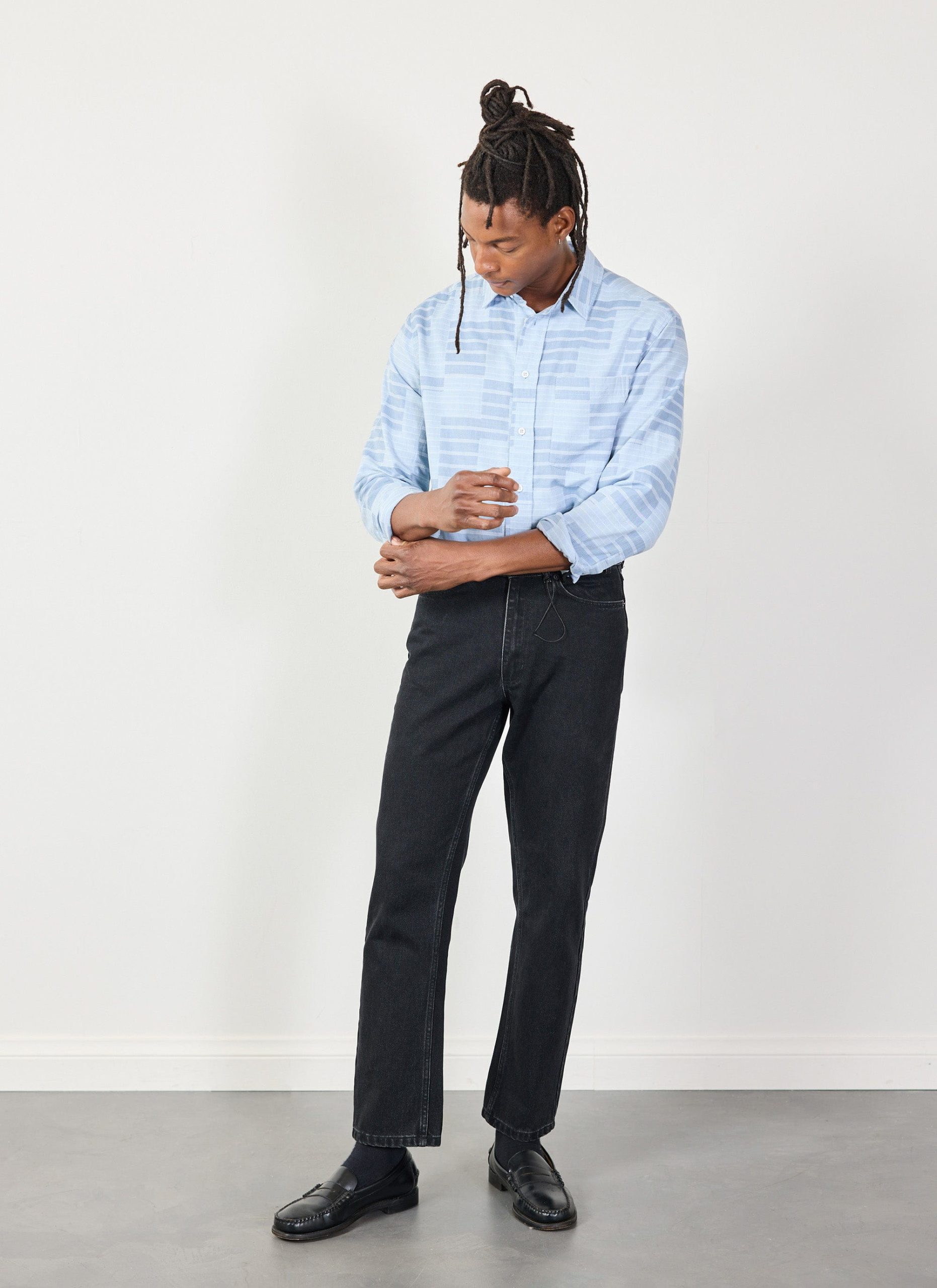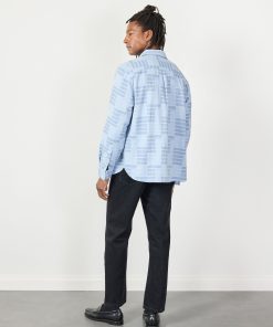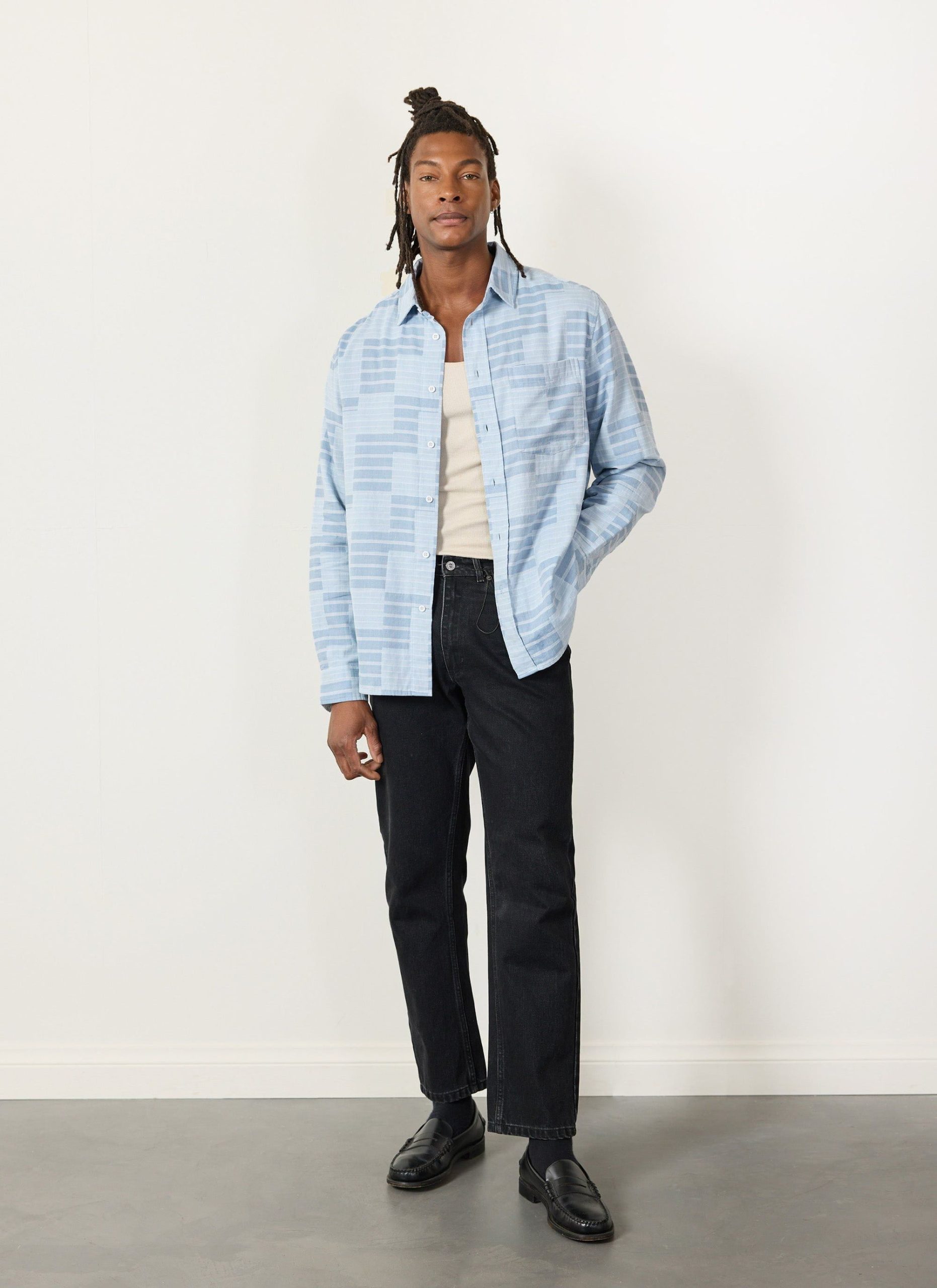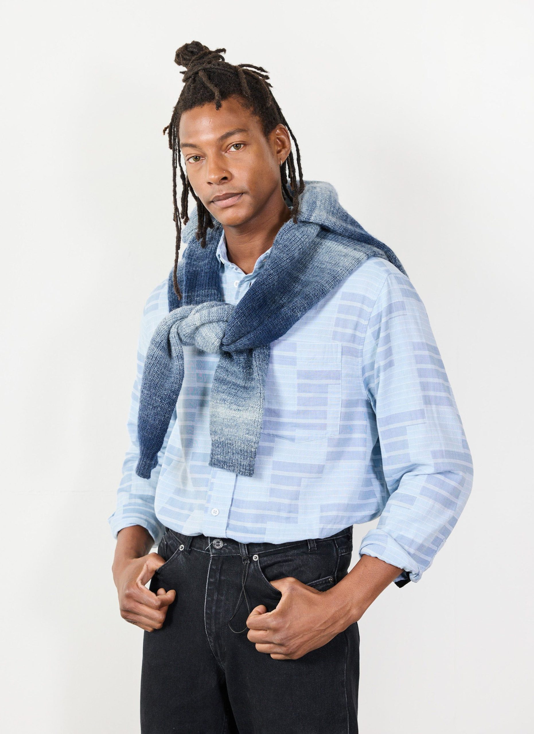 Block patch Pearce shirt, tongue twister, yes, good shirt, also yes. Custom Percival fabric, cut in the blue of the season, check out the macro shots, sweet. Our Pearce shirt fit is a slightly oversized yet comfortable fit, pair with loafer, Percival denim or smart trouser, it’s all up for grabs, well it kind of isn’t as they are made in limited quantities.
