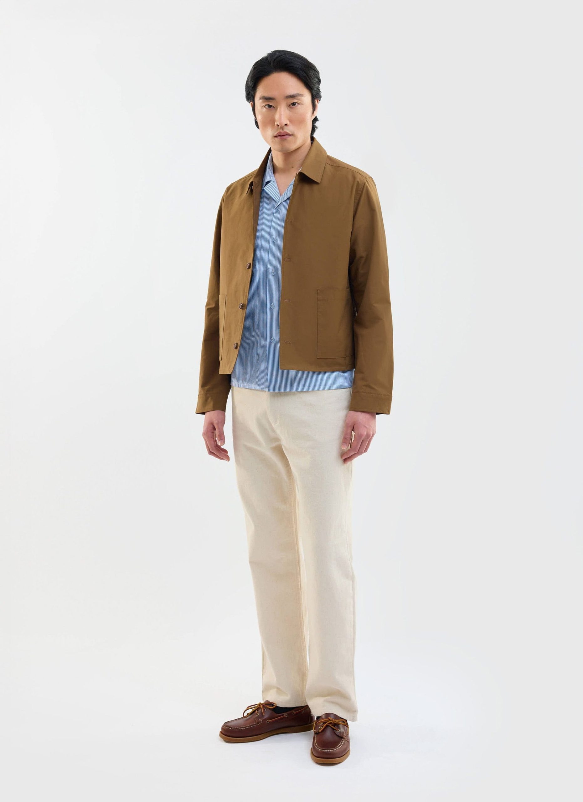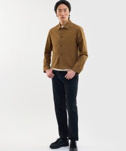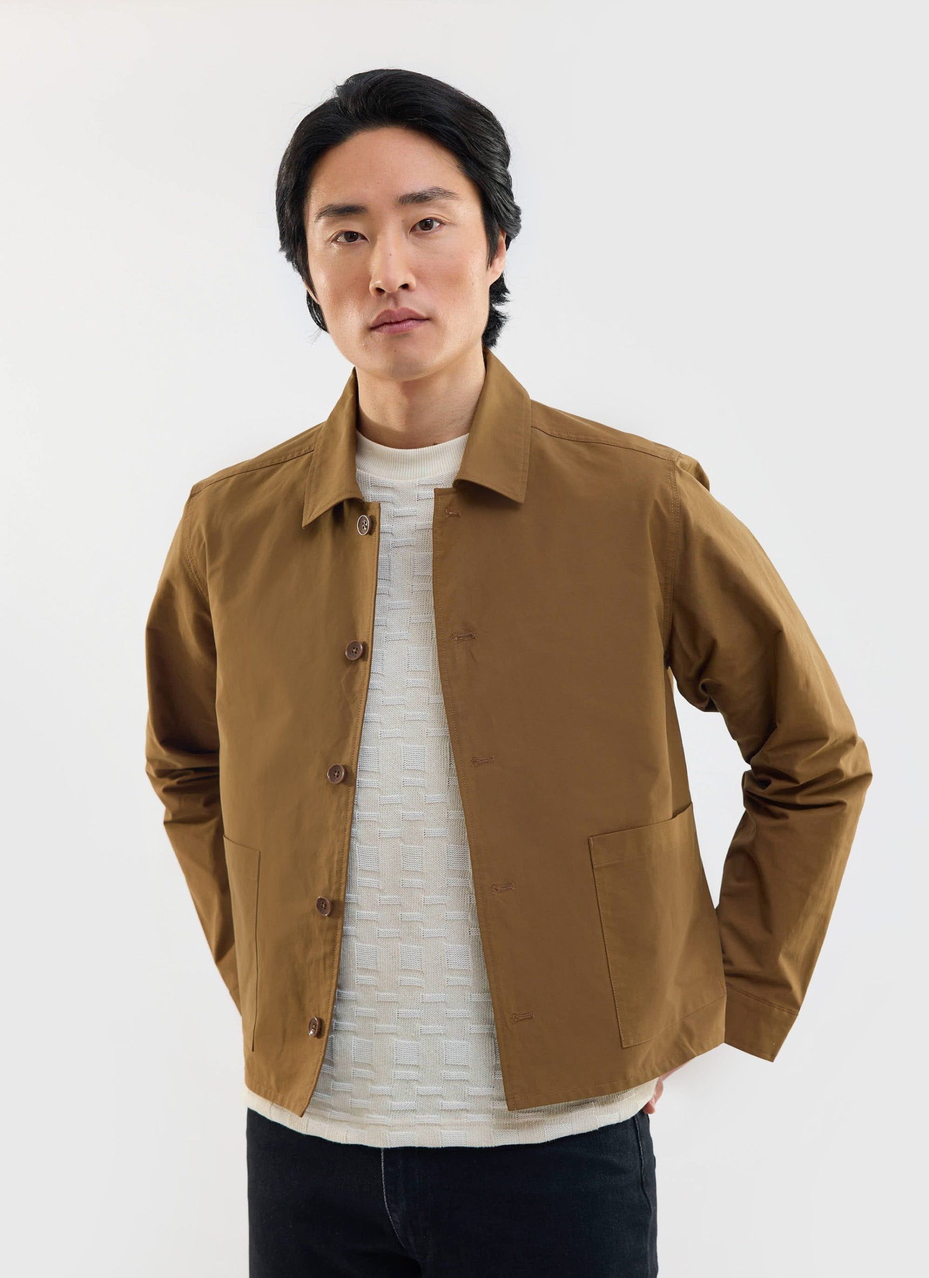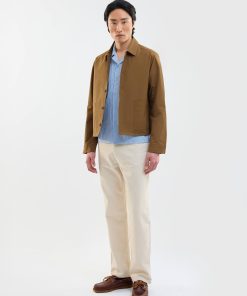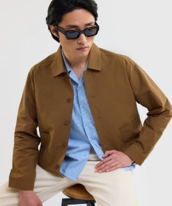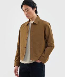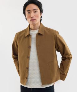 - Features: Men’s brown overshirt jacket made from heavy cotton canvas for a durable and structured feel. This cropped, boxy cut jacket sits just above the hip and features patch pocket detailing, an internal pocket, and a button down placket. It is perfect for layering over a tee or under a wool coat. The colour will naturally fade with wash and wear, giving it a lived in workwear character. A versatile button up jacket that elevates any man’s wardrobe and is ideal for unpredictable British summer weather.