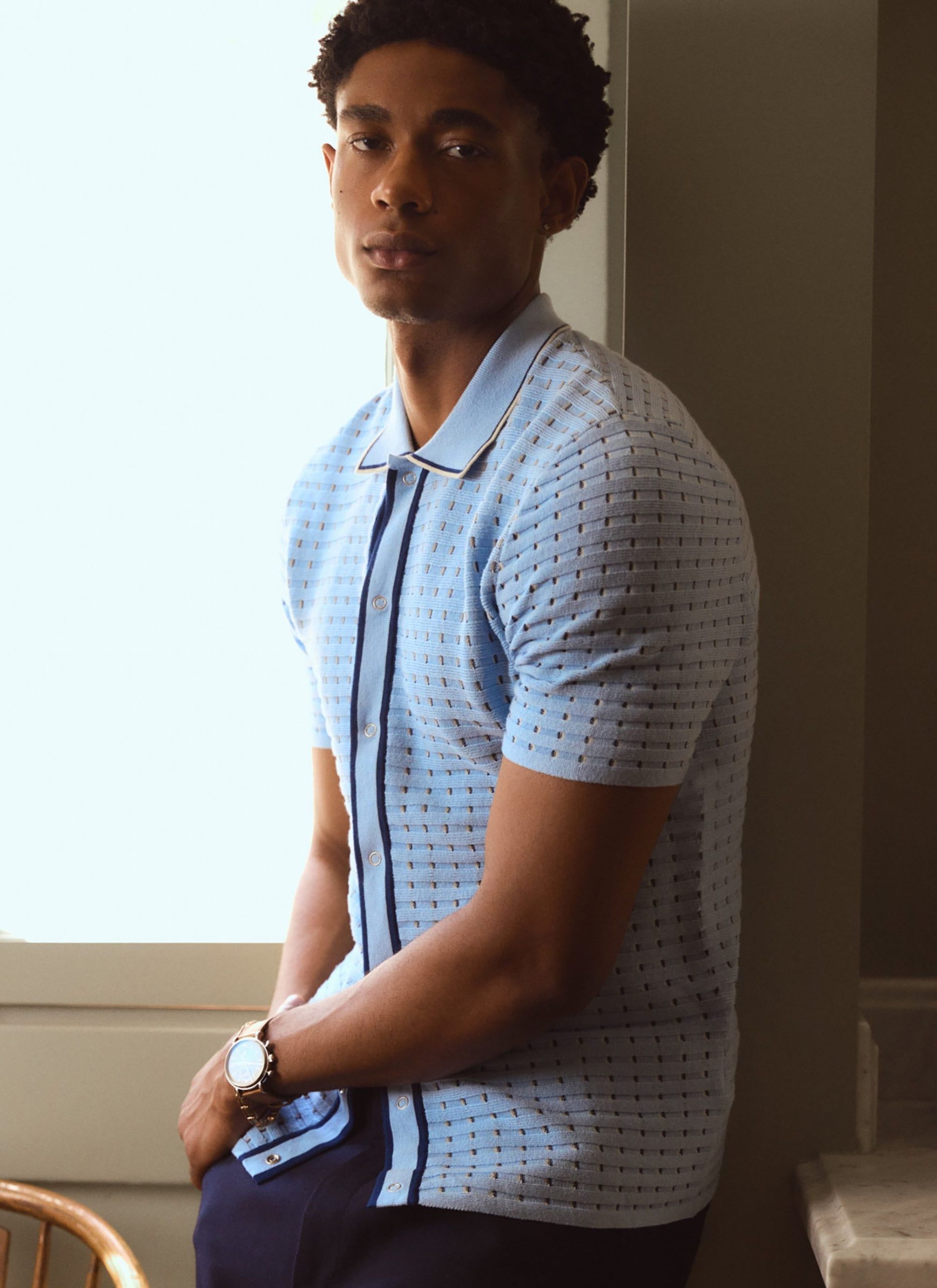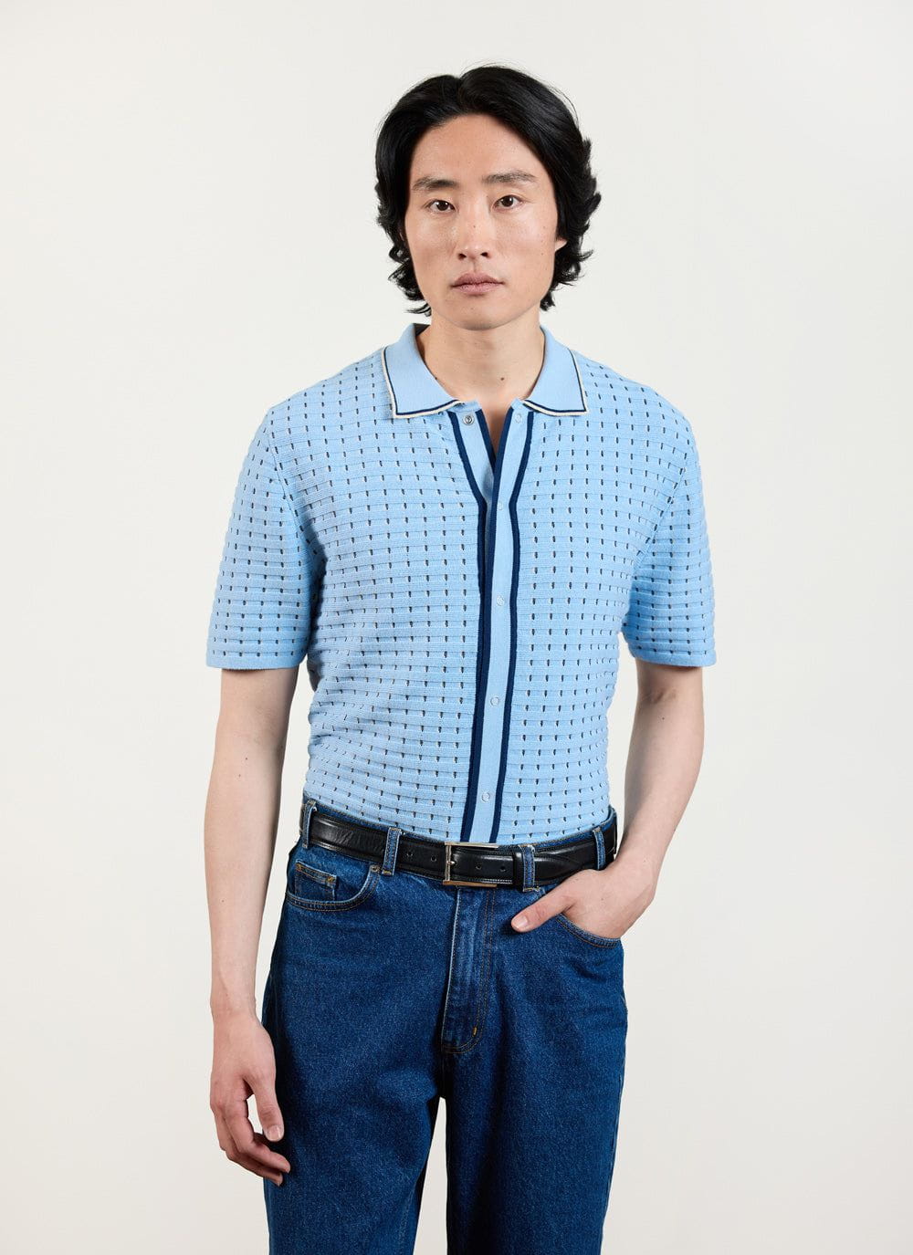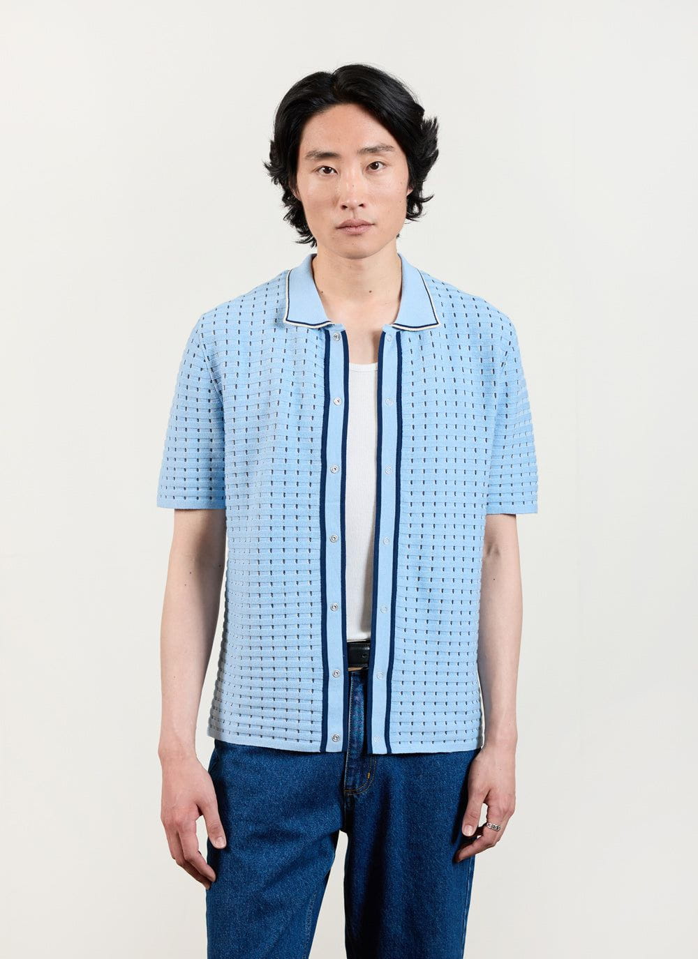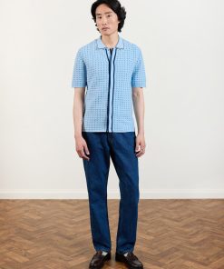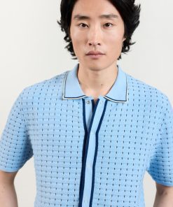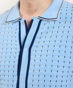- Features: Men’s knitted shirt with short sleeves. Featuring silver snap popper fastenings and in a standard fit, this Knit Shirt is an all-year wardrobe staple.