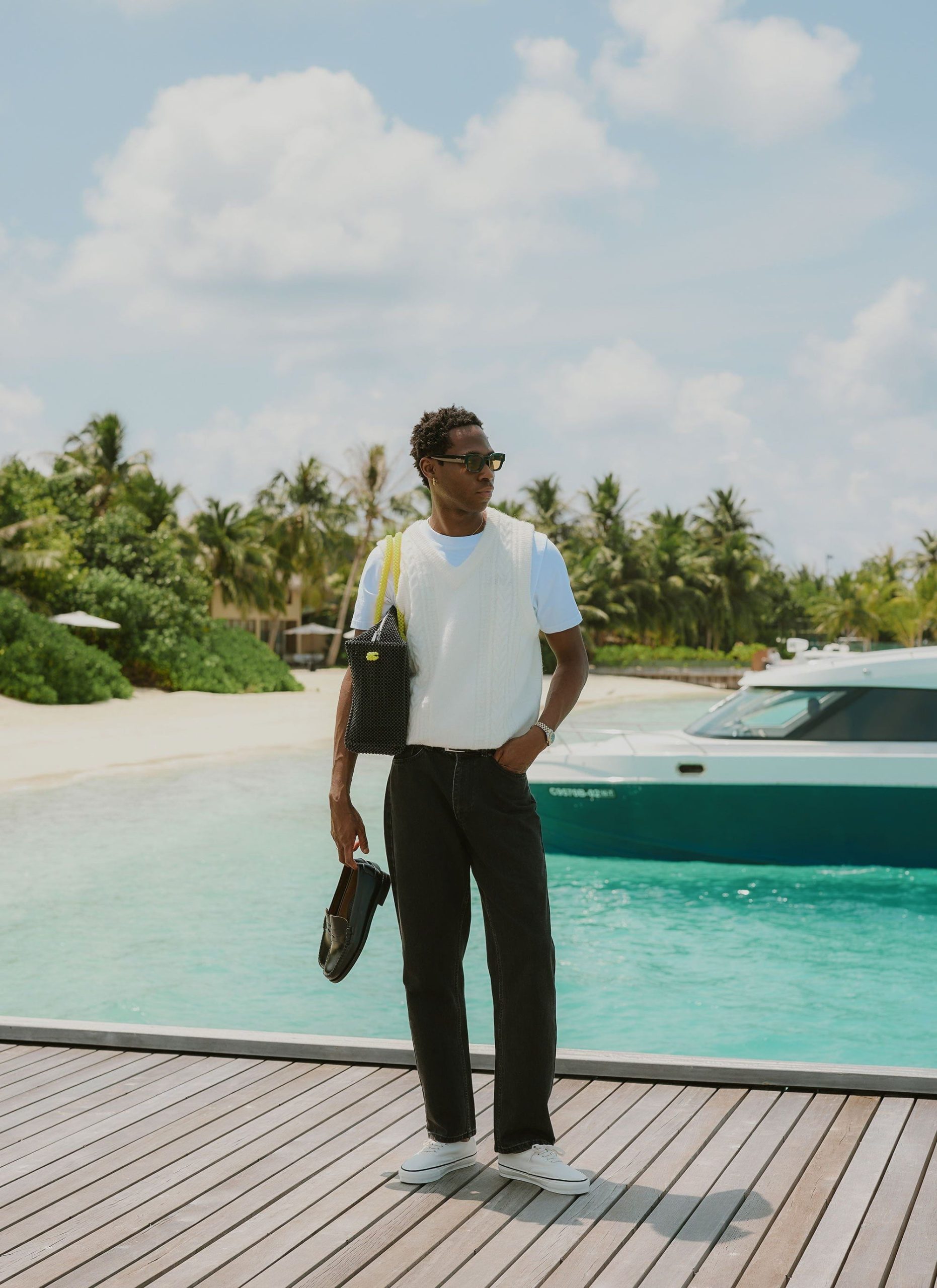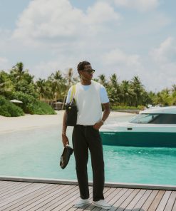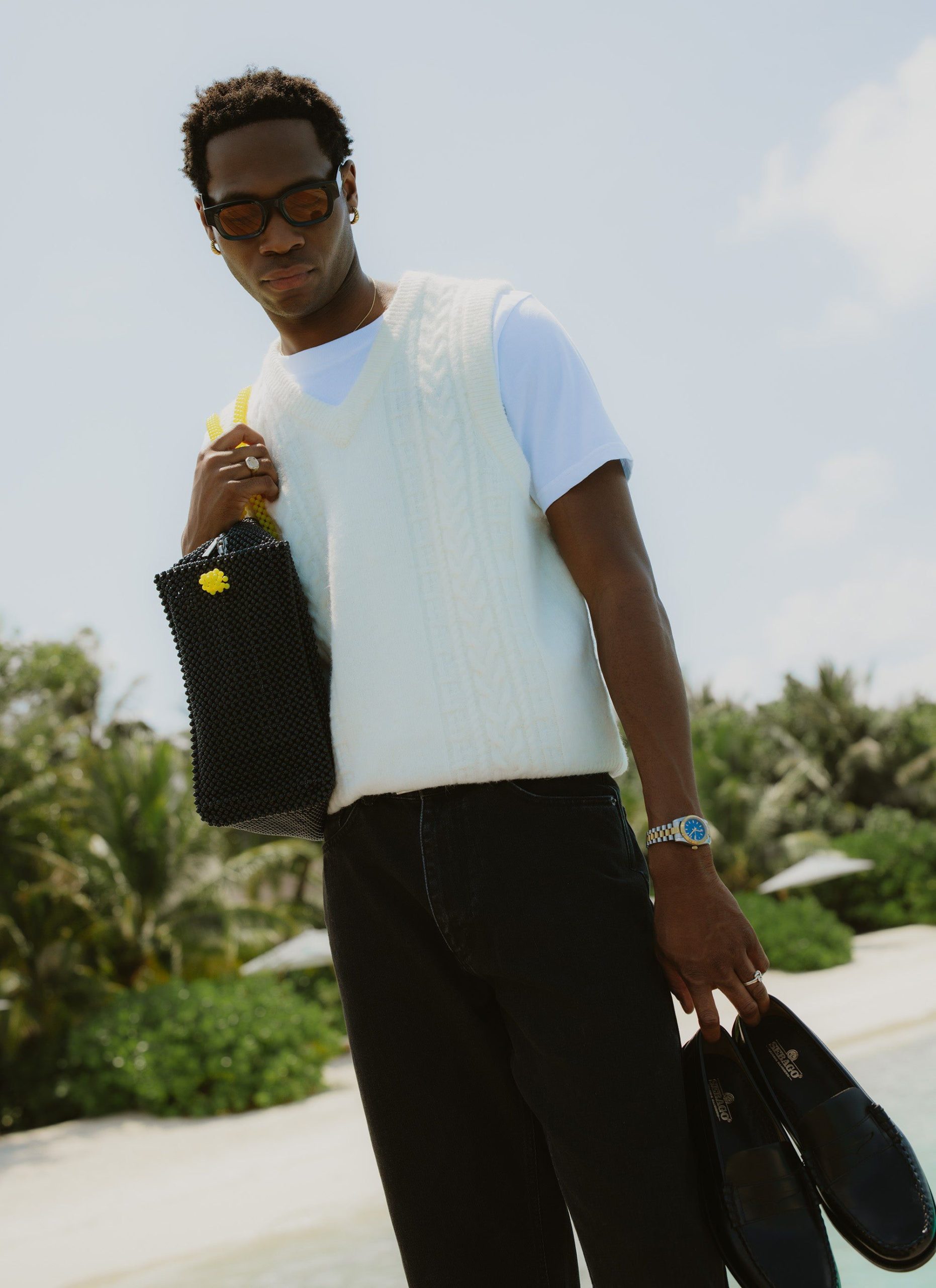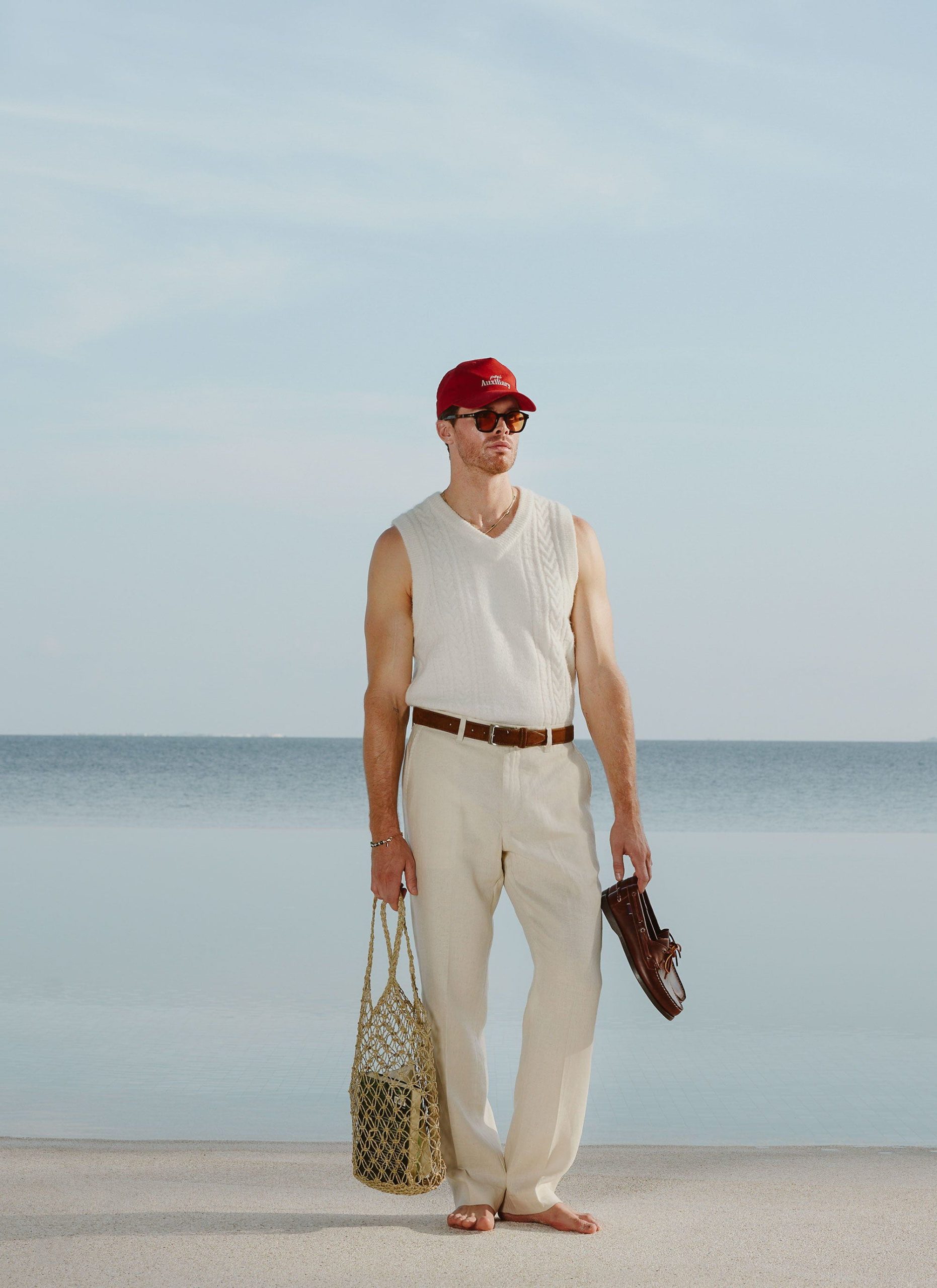 Percival Spring Summer 2025, inspired by Italy, it’s fine people and food, full flavour, full Perci pomodoro, the sauce of good fits. Cable stripe knitted vest, alpaca wool blend, the blend helps it hold its shape and knit texture, it also adds flavour, texture, palatable delight. Perfect for layering, or keeping your warm on spring summer evenings.