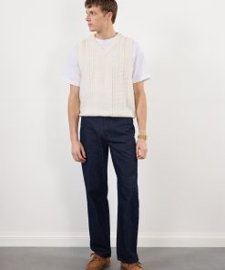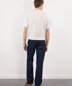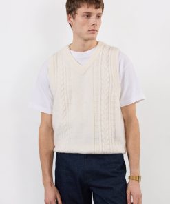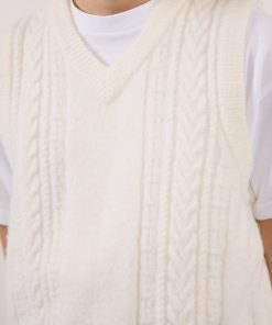 - Features: Men’s Cable Knit Sweater Vest, crafted from an Alpaca Wool blend for comfort and durability. Designed with a thick ribbed V Neck, making the piece ideal for on top of a t shirt or layering with a lightweight jacket. The Cream Vest top is a must have for this spring as it is perfect for transitional seasons.