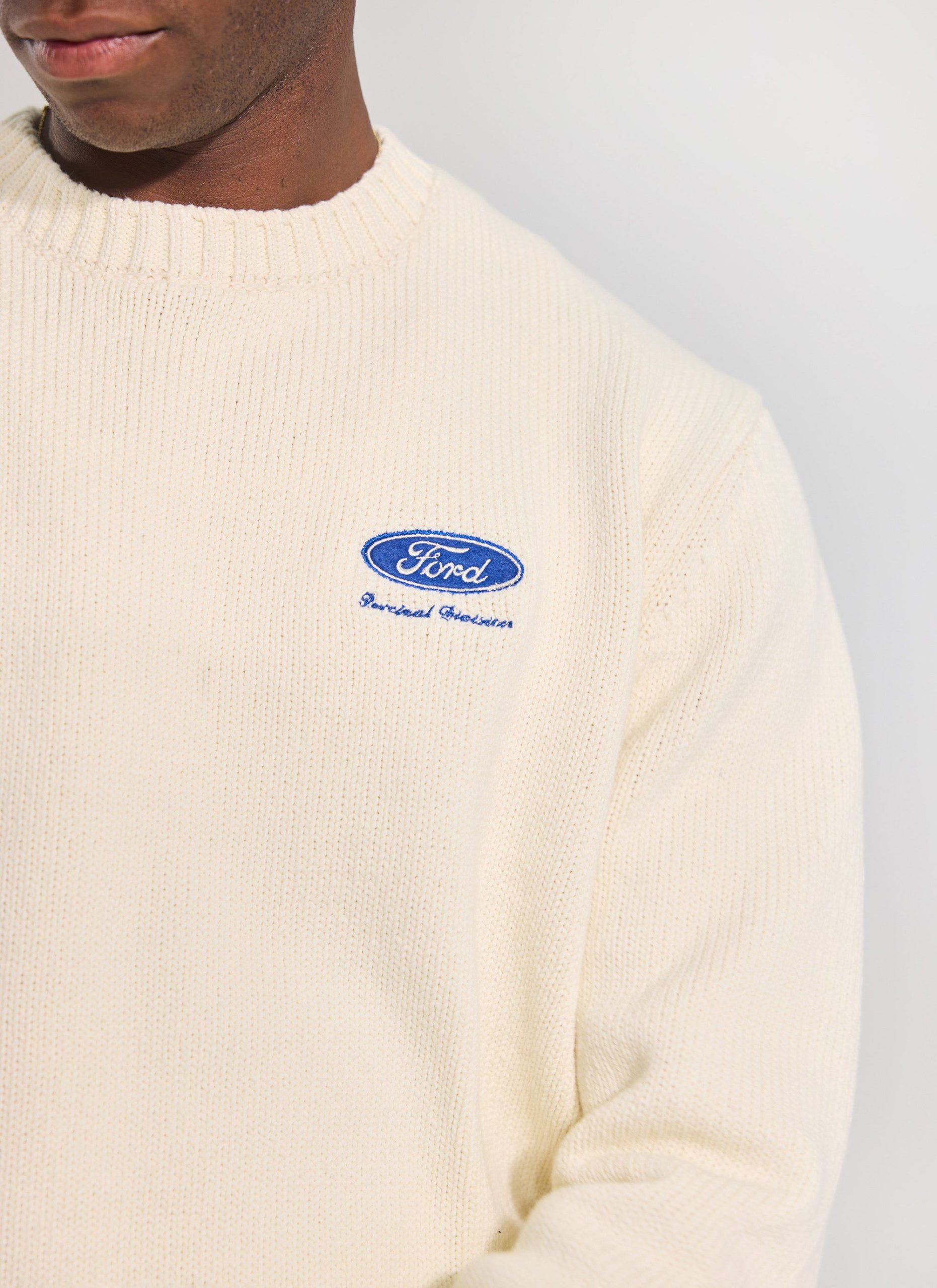 - Features: Men’s ecru cream sweatshirt made from a 100% organic cotton. Featuring custom Ford embroidery on the chest, this knitted sweatshirt is ideal for adding a stylish yet relaxed touch to every man’s wardrobe.