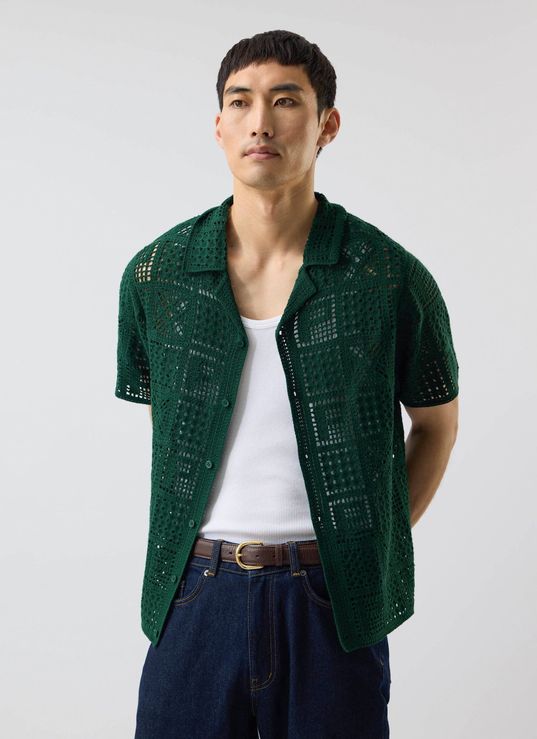 Percival Men’s Crochet Groundsman Shirt | Forest