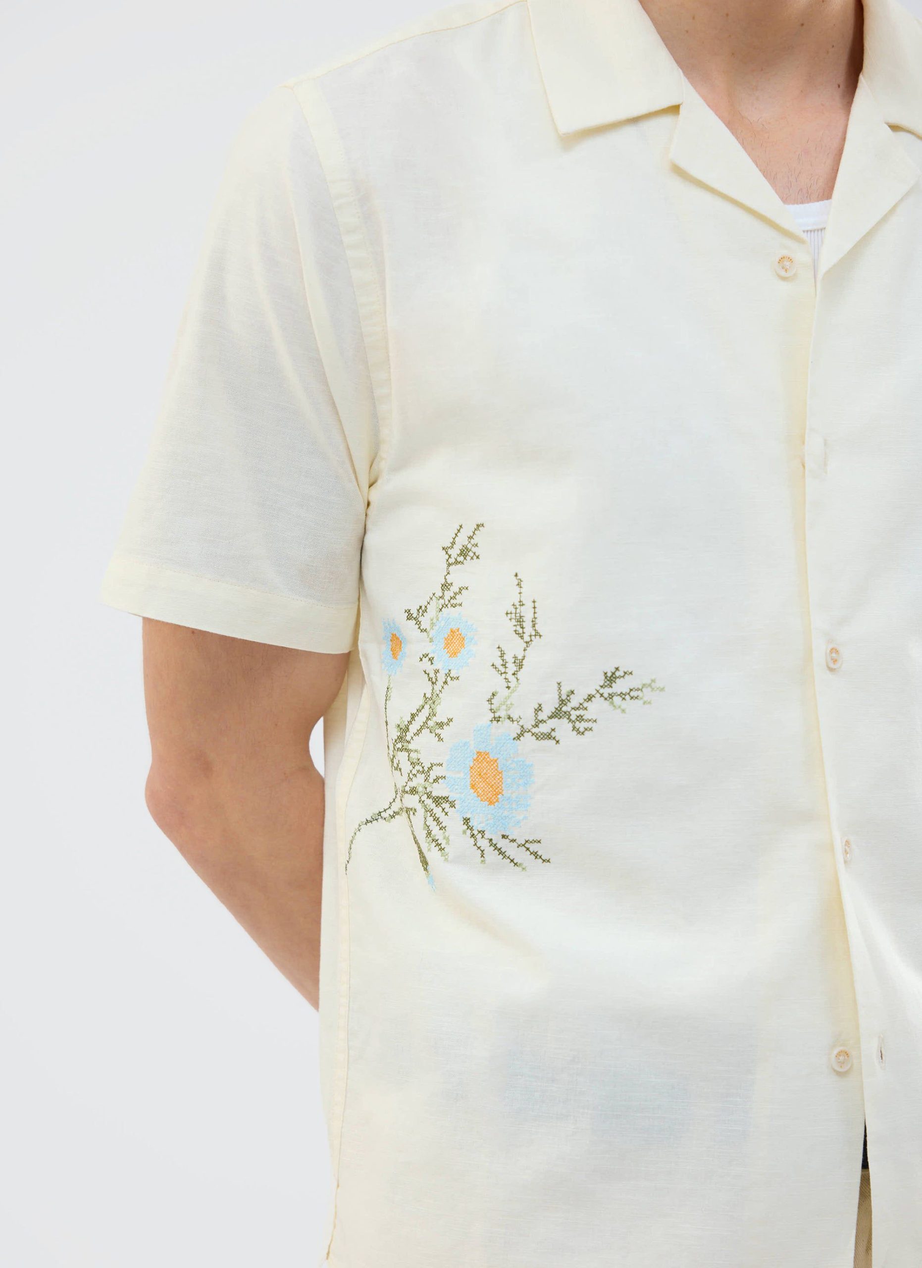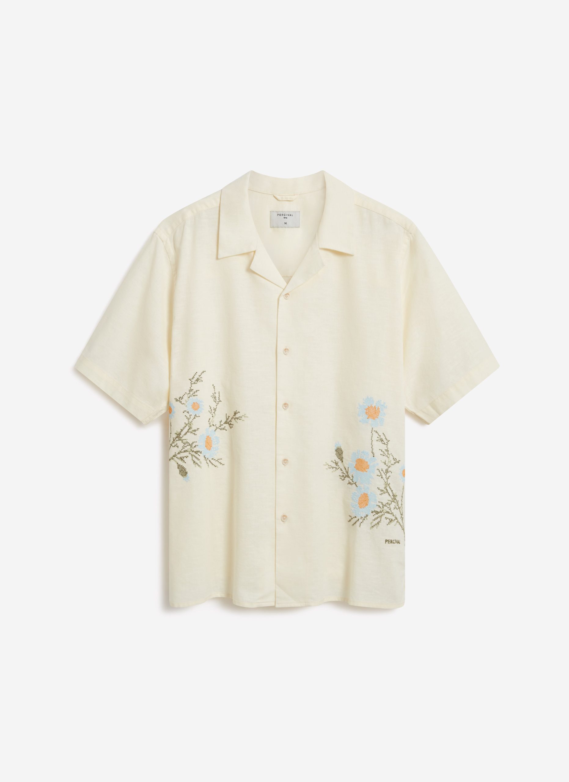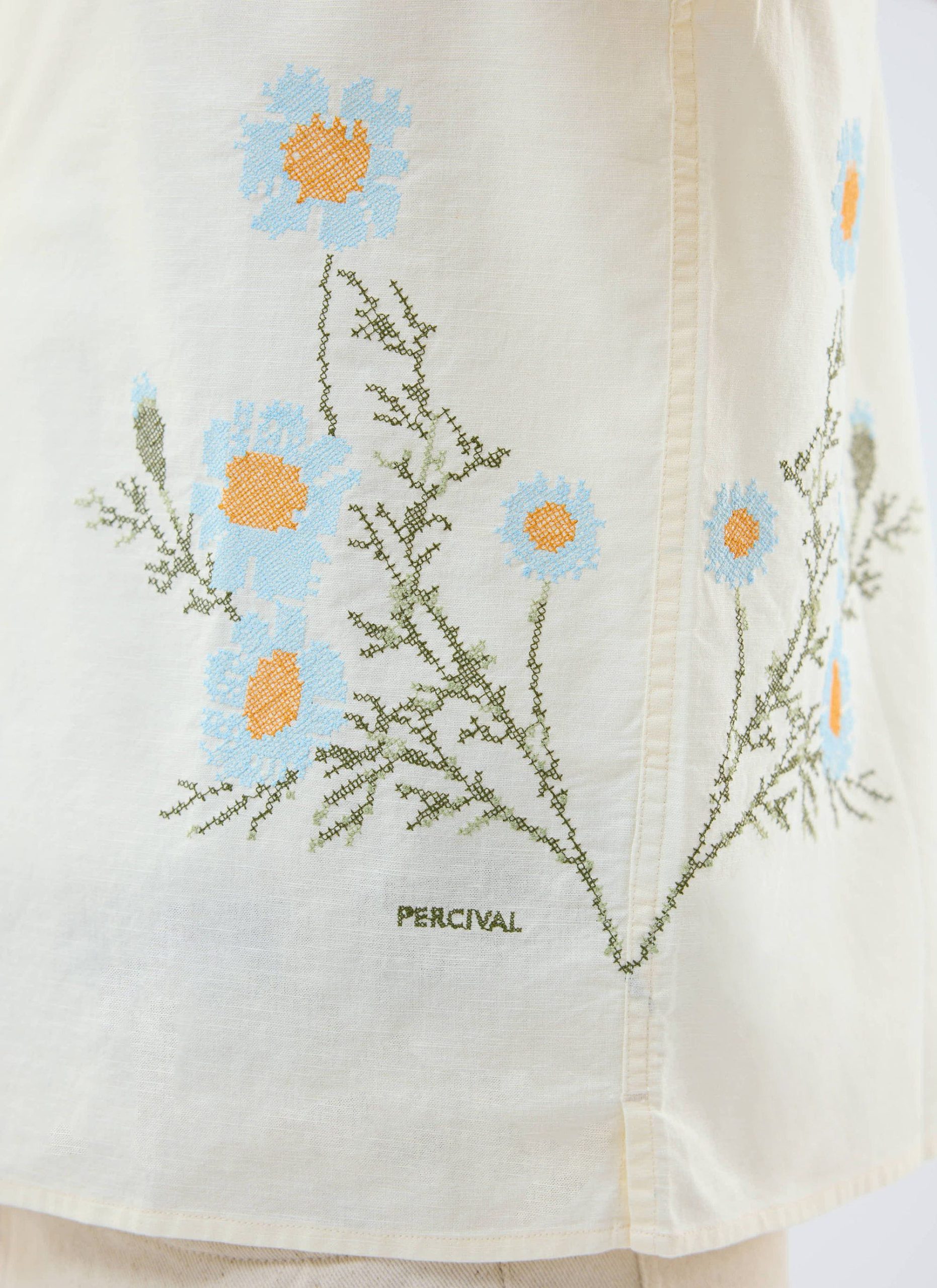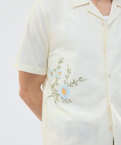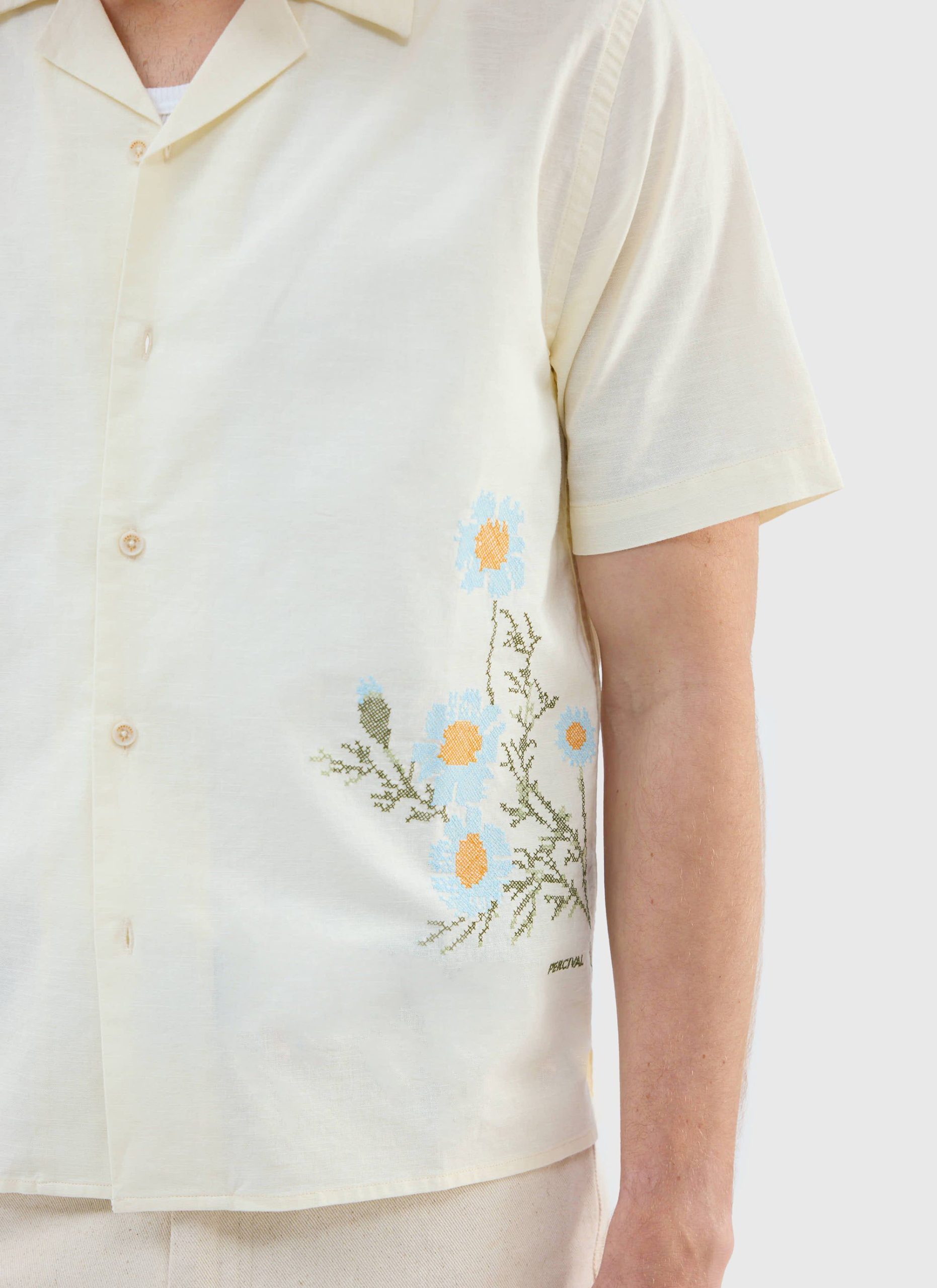 Percival Men’s Cross Stitch Daisy Clerk Shirt | White
