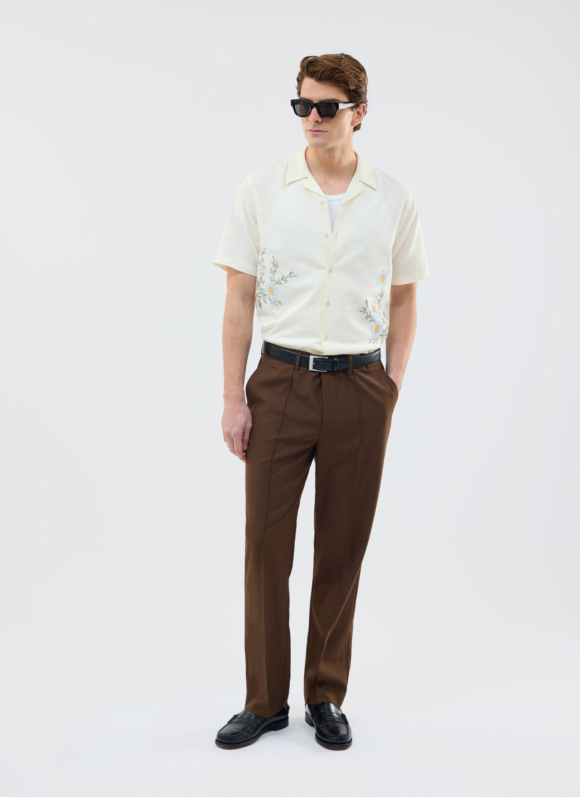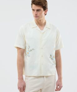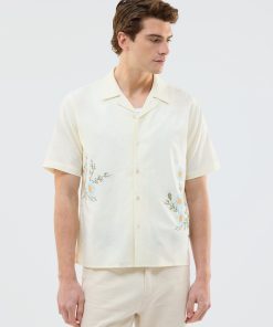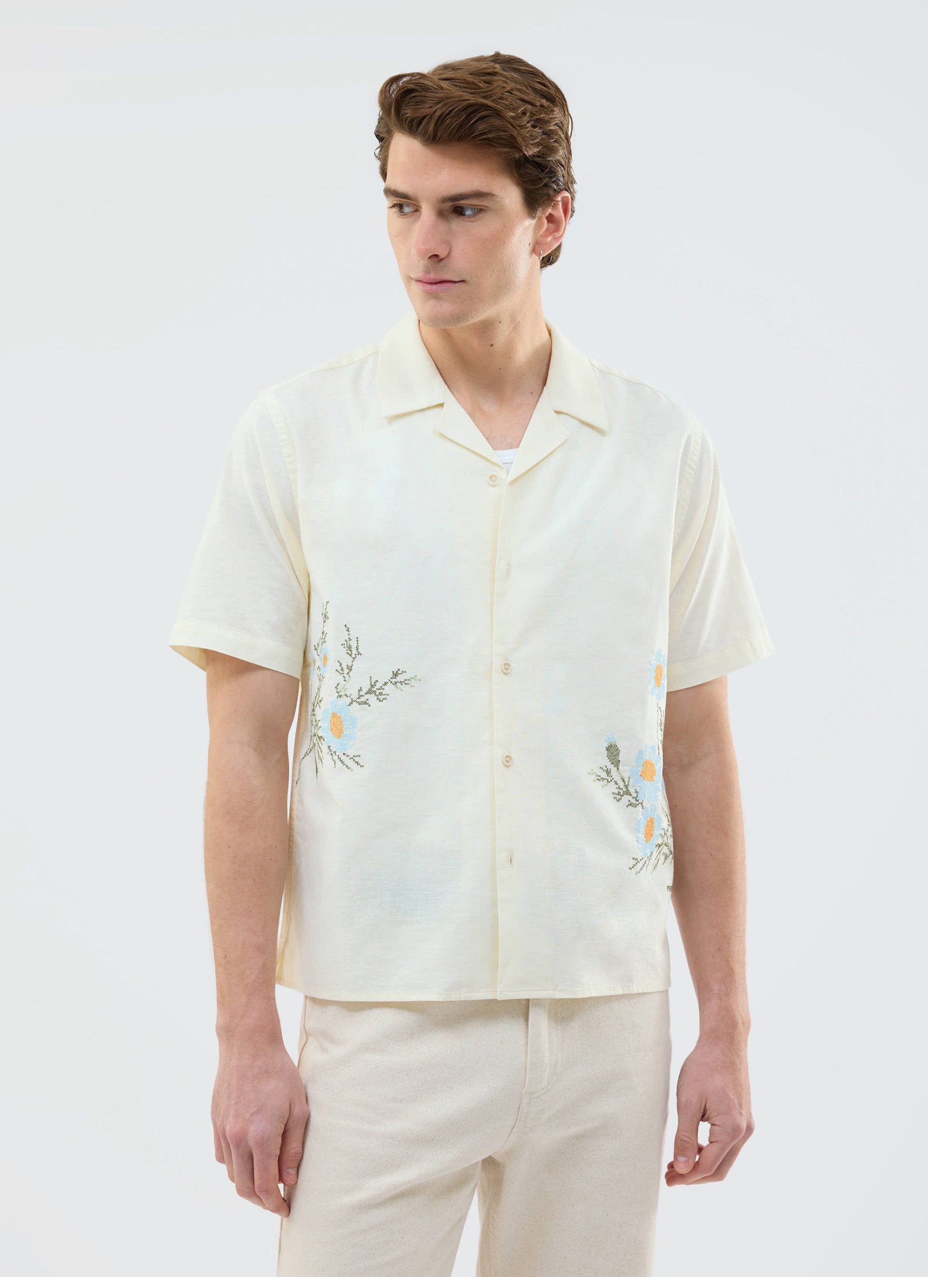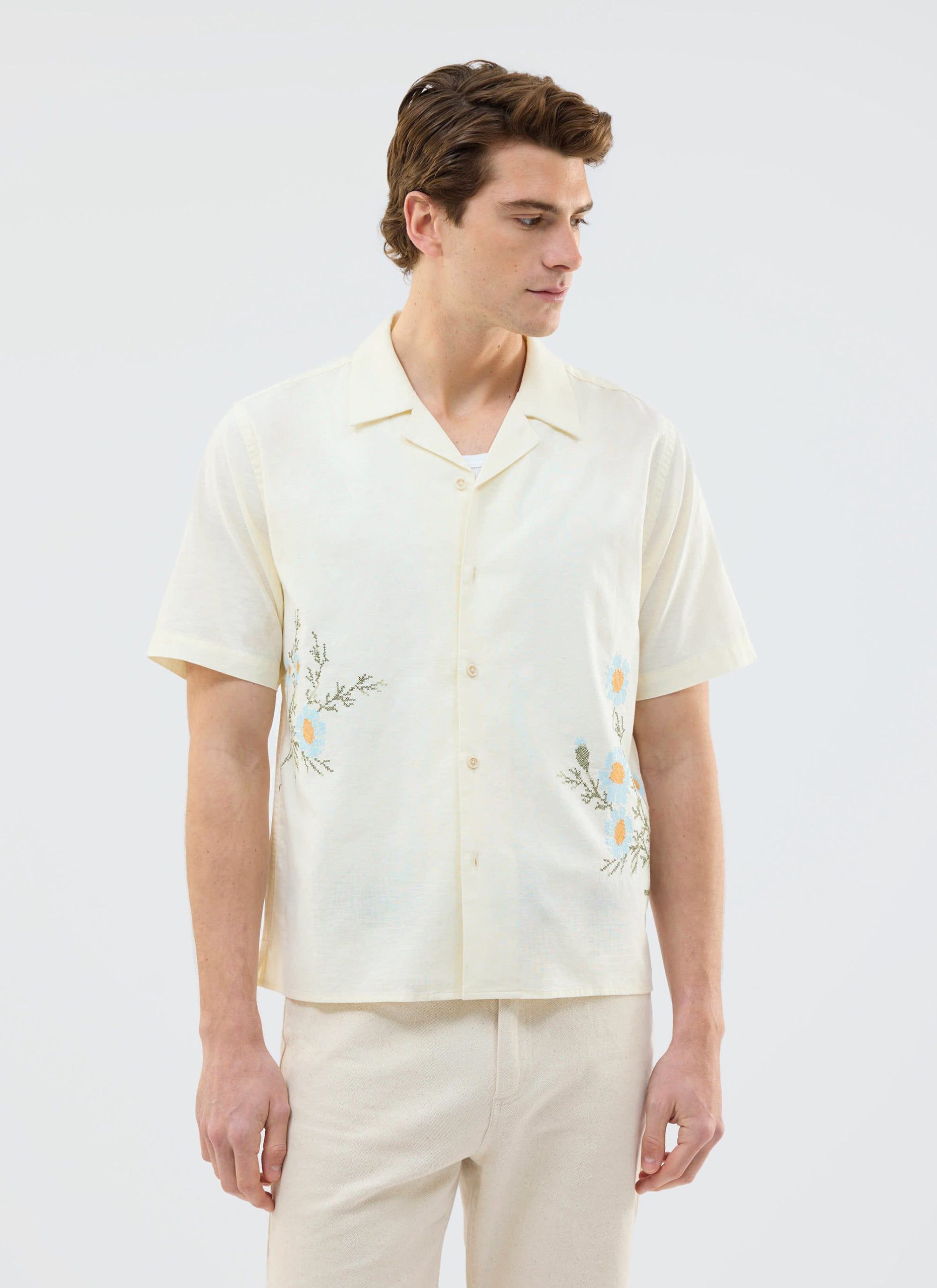 Percival Men’s Cross Stitch Daisy Clerk Shirt | White