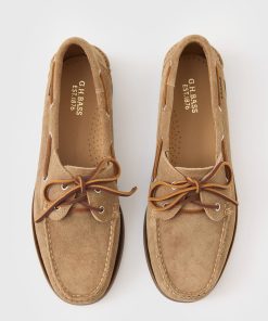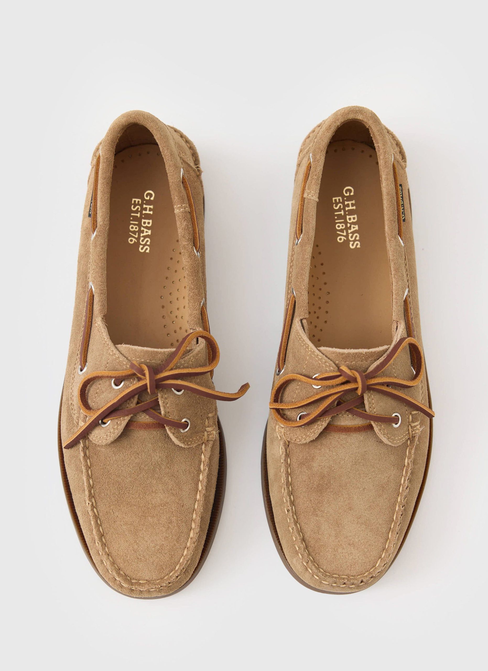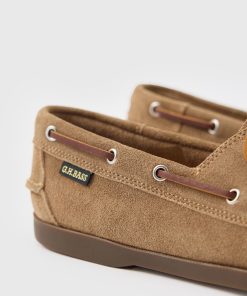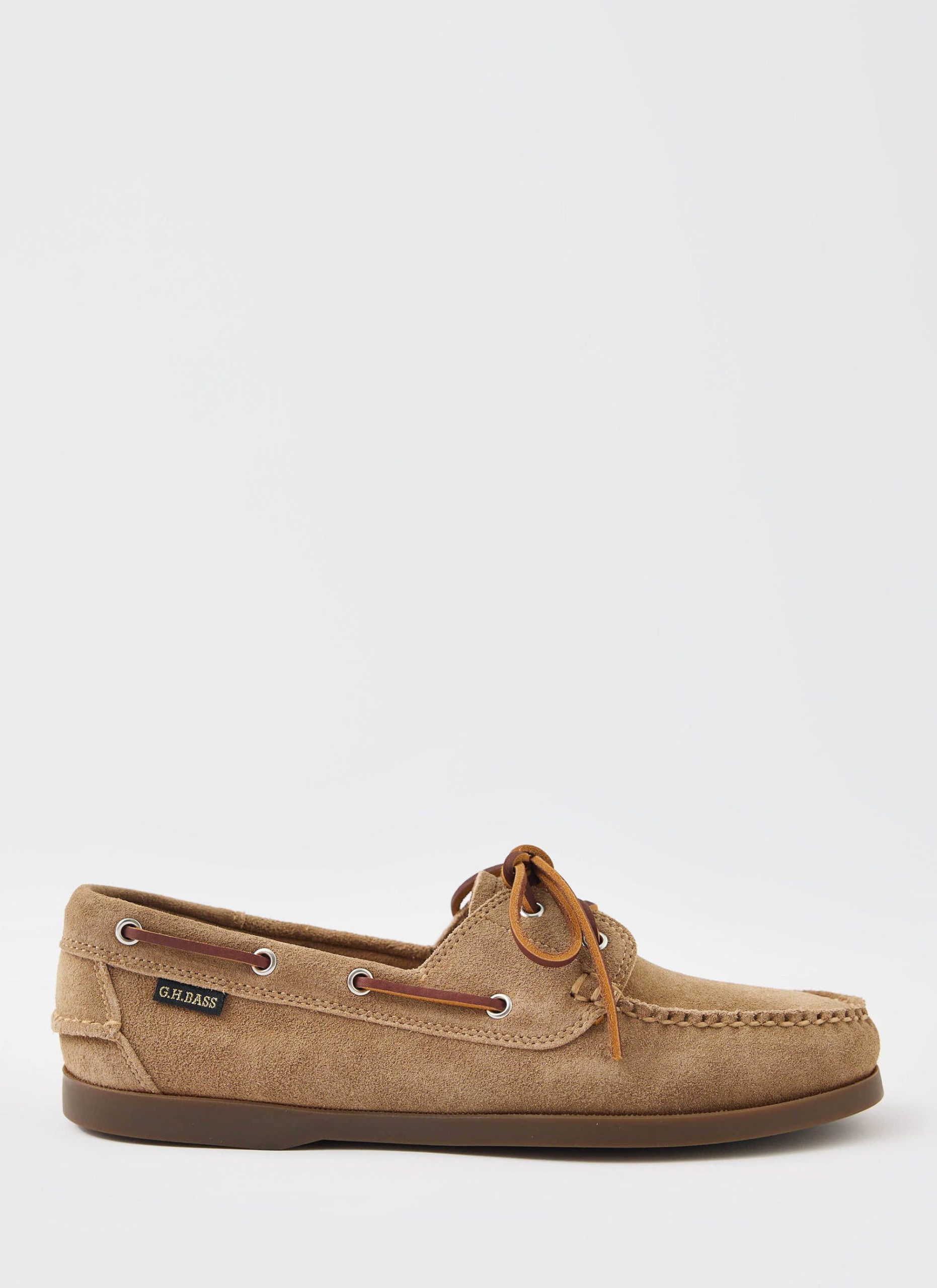 - Features: Ultra soft tan suede. Leather laces for a secure fit. Woven BASS flag. Hand Sewn with tonal thread. Soft leather insock for added comfort. Plush cushioned insole. Gold foil insock branding. Improved grip and traction. Water-resistant rubber sole