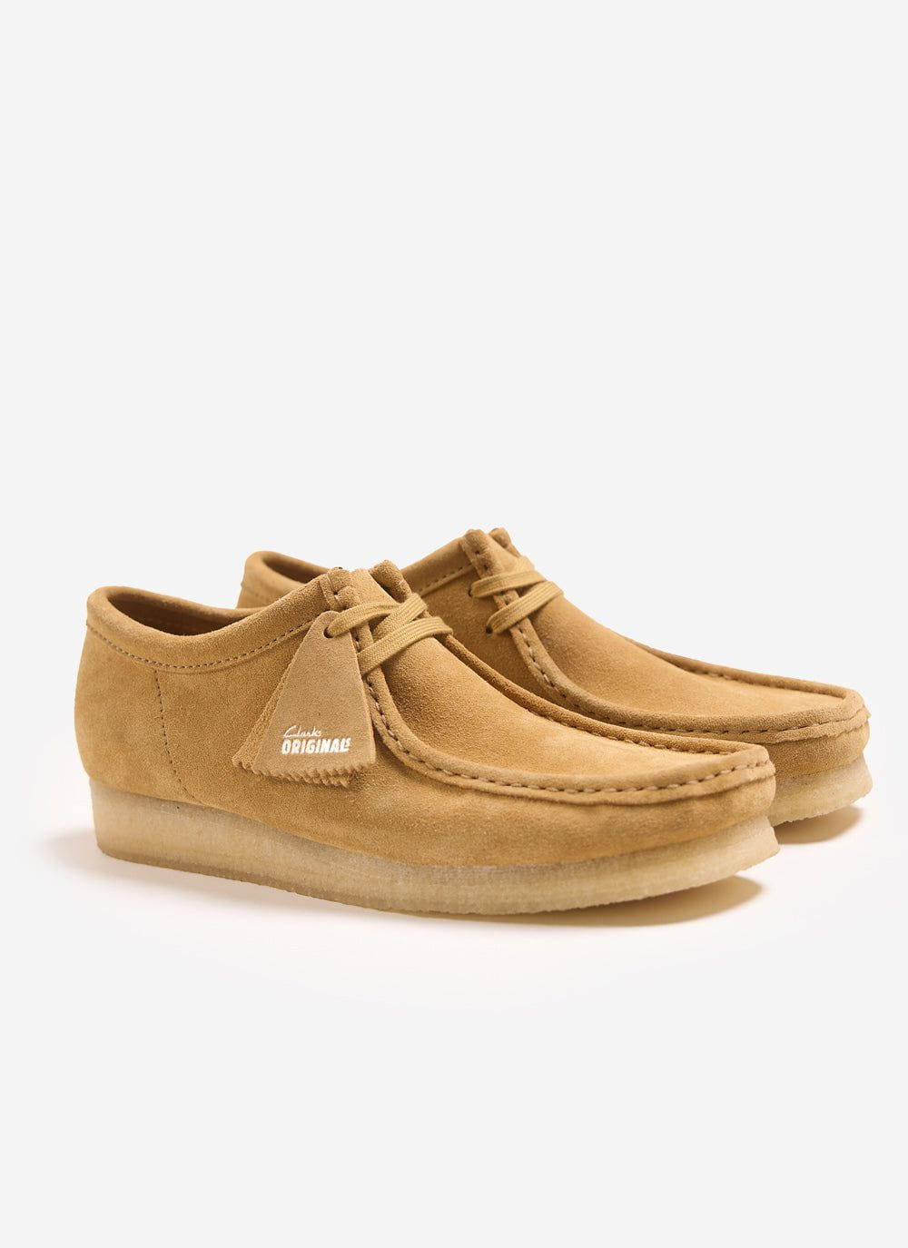 - Features: Men’s Wallabee shoes with soft suede uppers and tonal laces, perfect for laid-back casual occasions. The FSC®-certified natural crepe sole provides long-lasting comfort, ideal for all-day wear. Finished with two signature Clarks Originals fobs and metallic foil transfer detailing for a refined touch.