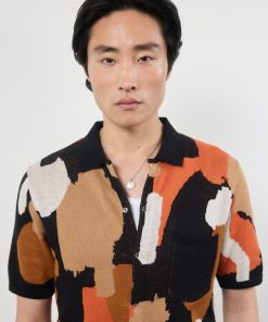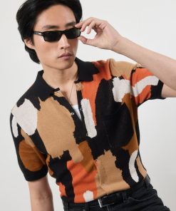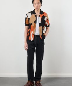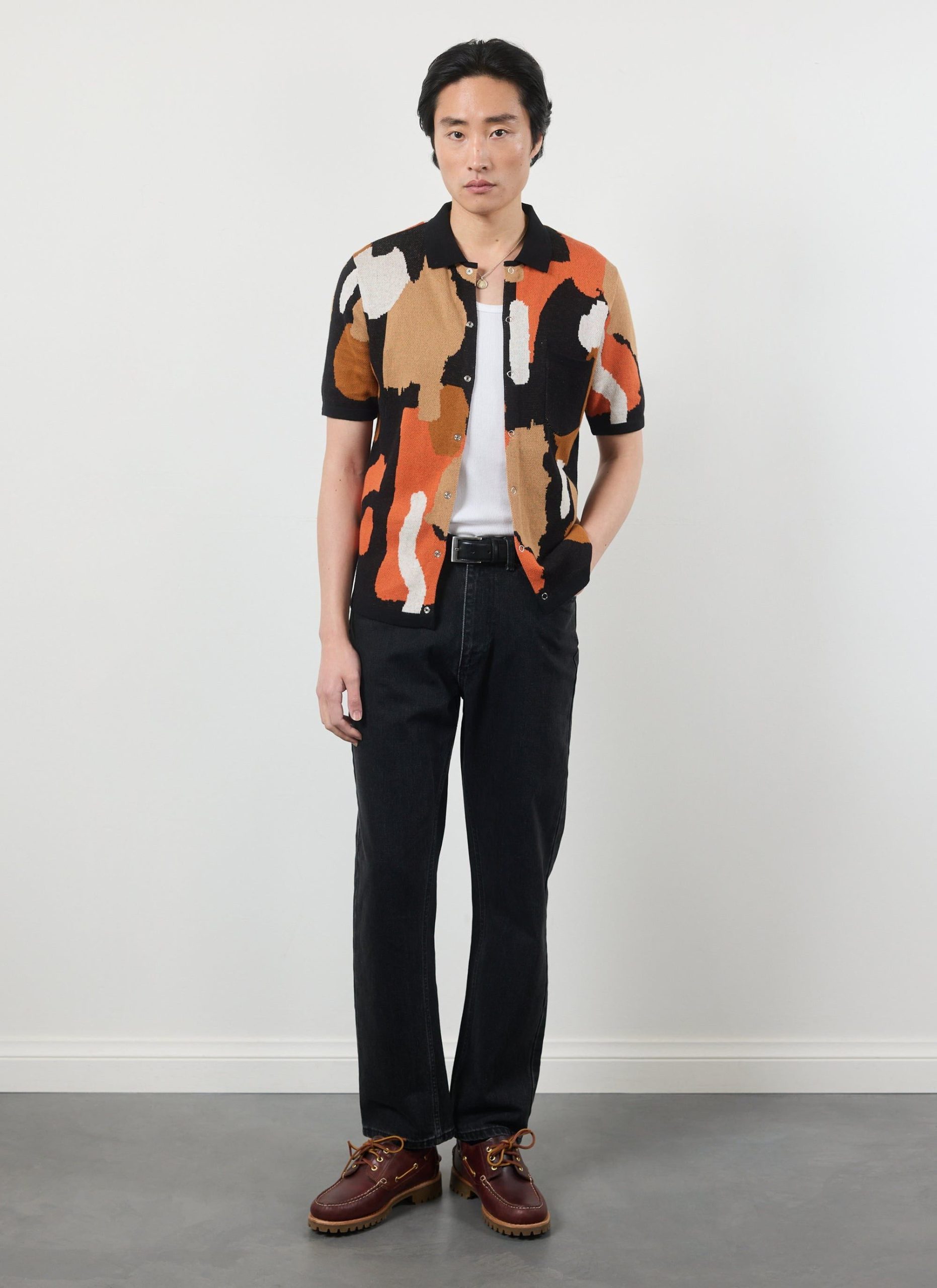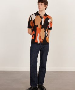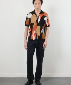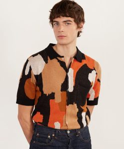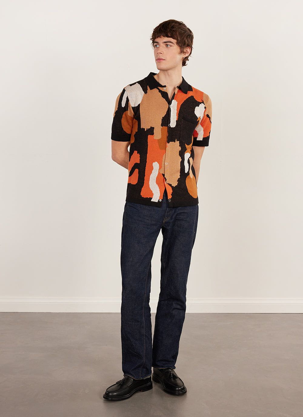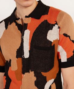 - Features: Men’s button down shirt made from knitted cotton. Finished with short sleeves, popper fastening and a front chest pocket, this jacquard knit shirt is ideal for the summer.