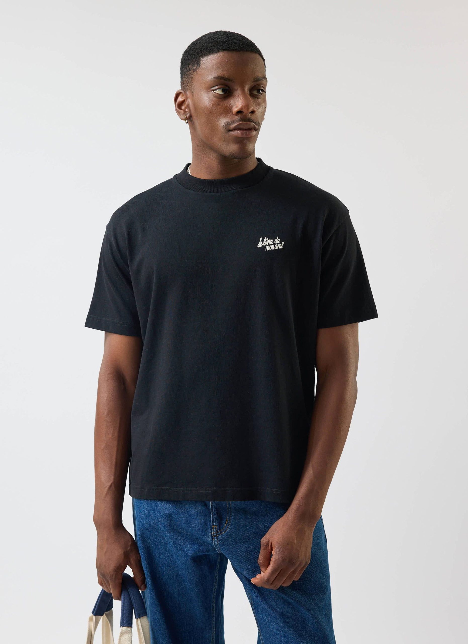 - Features: Men’s heavyweight black t shirt featuring intricate ‘Le Livre De Mon Ami’ embroidery and graphic on the back. Made from 100% organic cotton for a premium feel and long lasting durability. Designed in an oversized fit, this short sleeve tee is comfortable, versatile, and easy to style for any occasion.