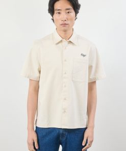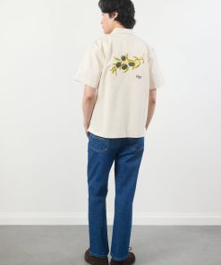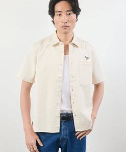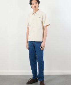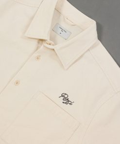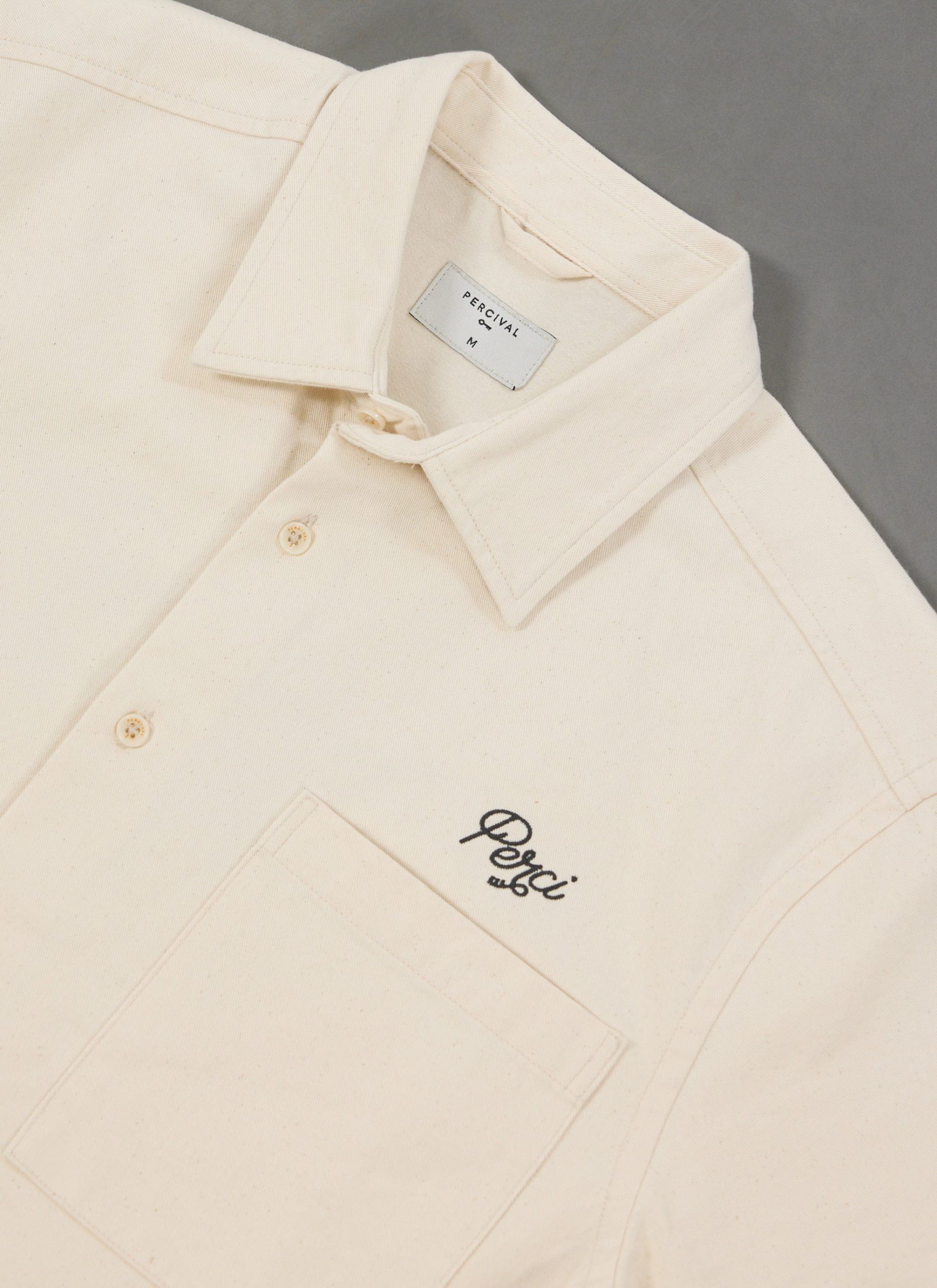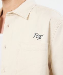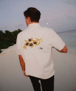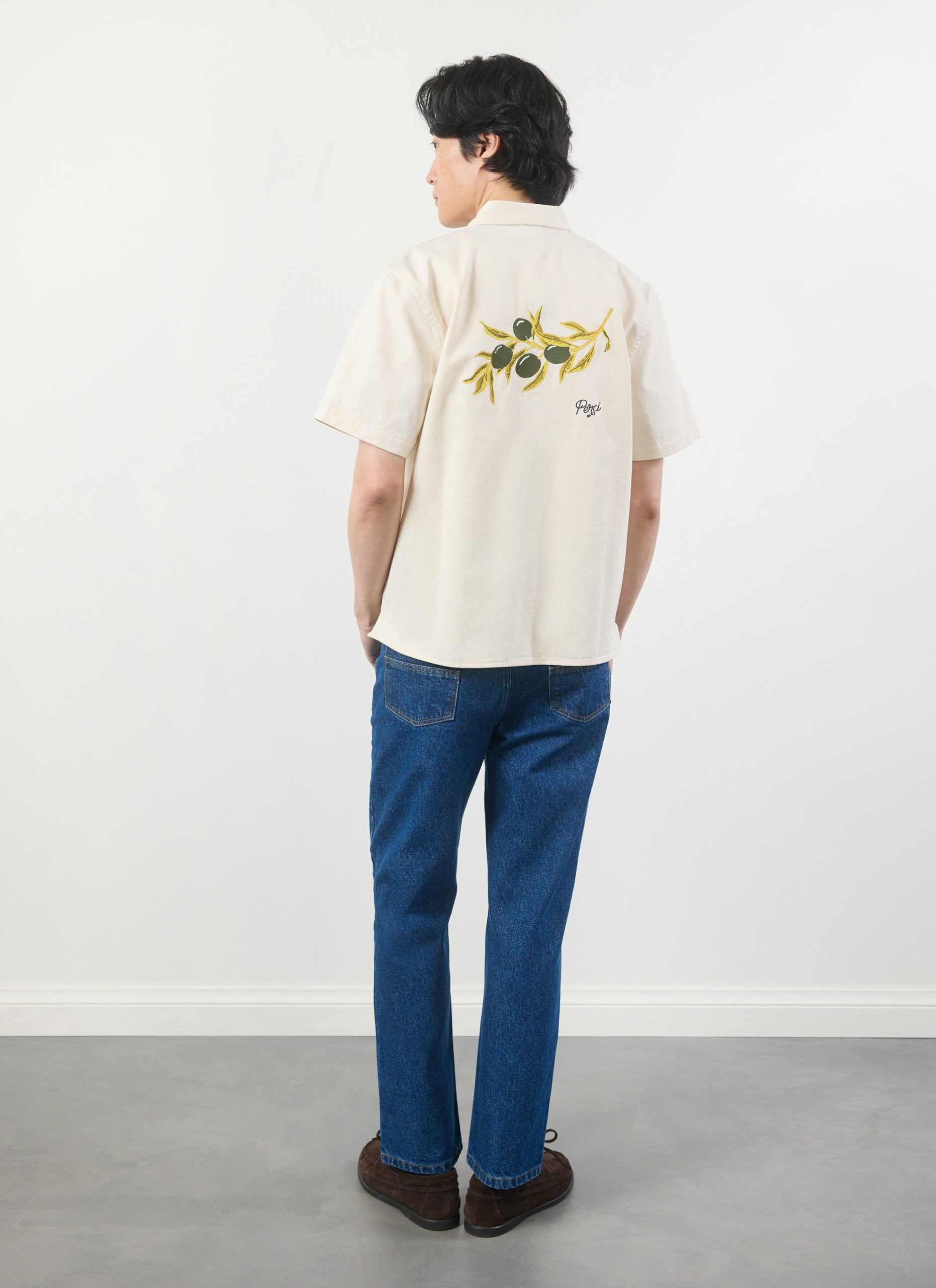 Percival Men’s Olive Embroidered Cropped Shirt | White