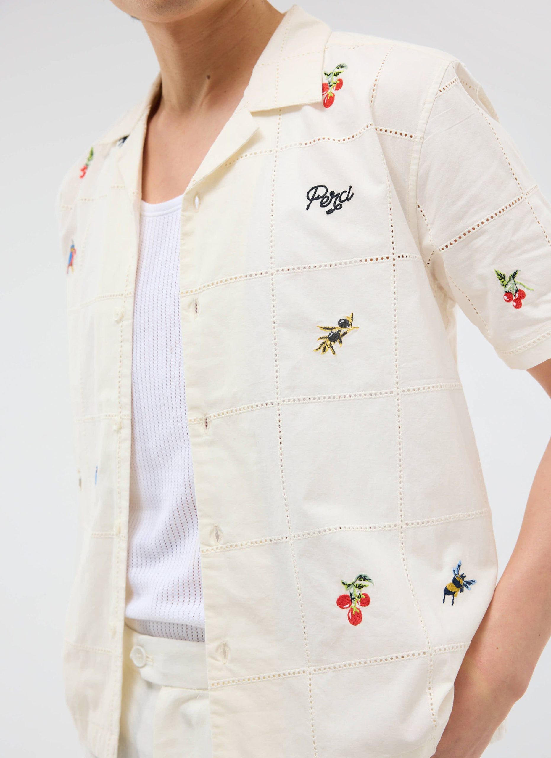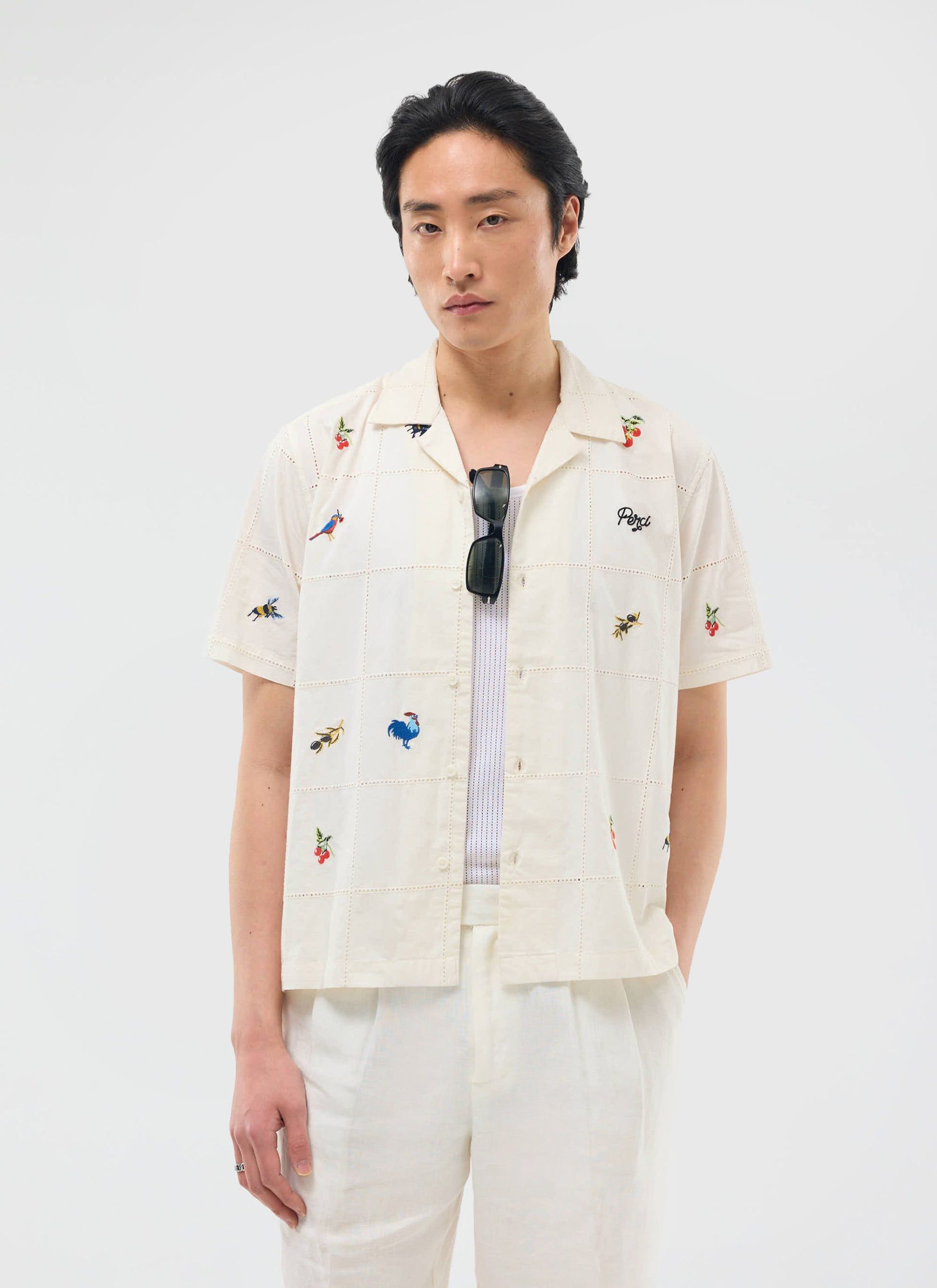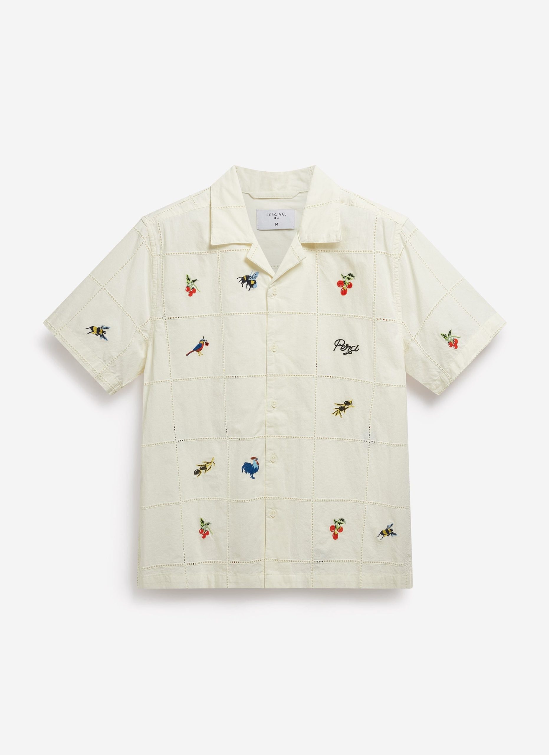 Percival Men’s Olive Tapestry Cuban Shirt | Ecru