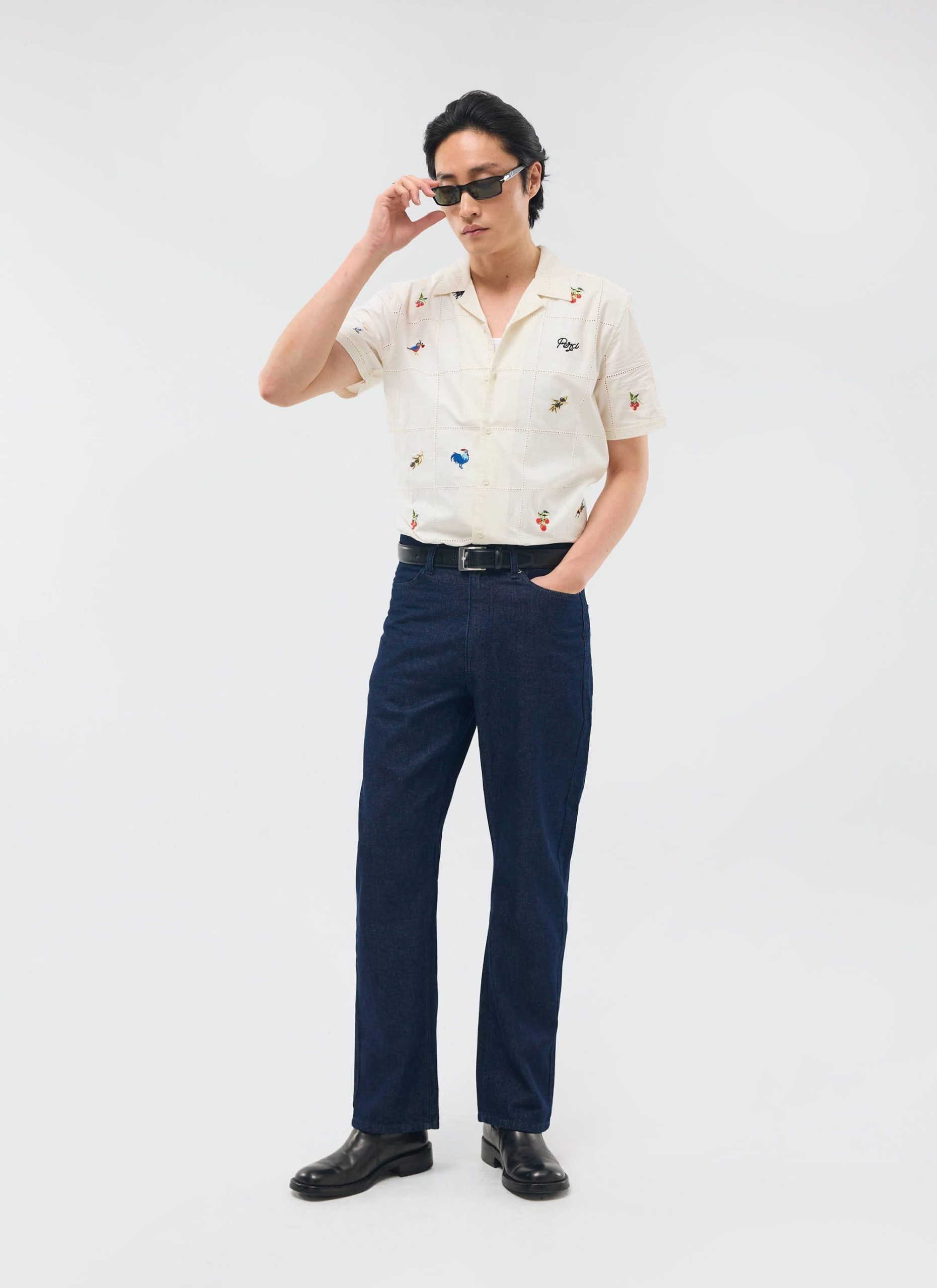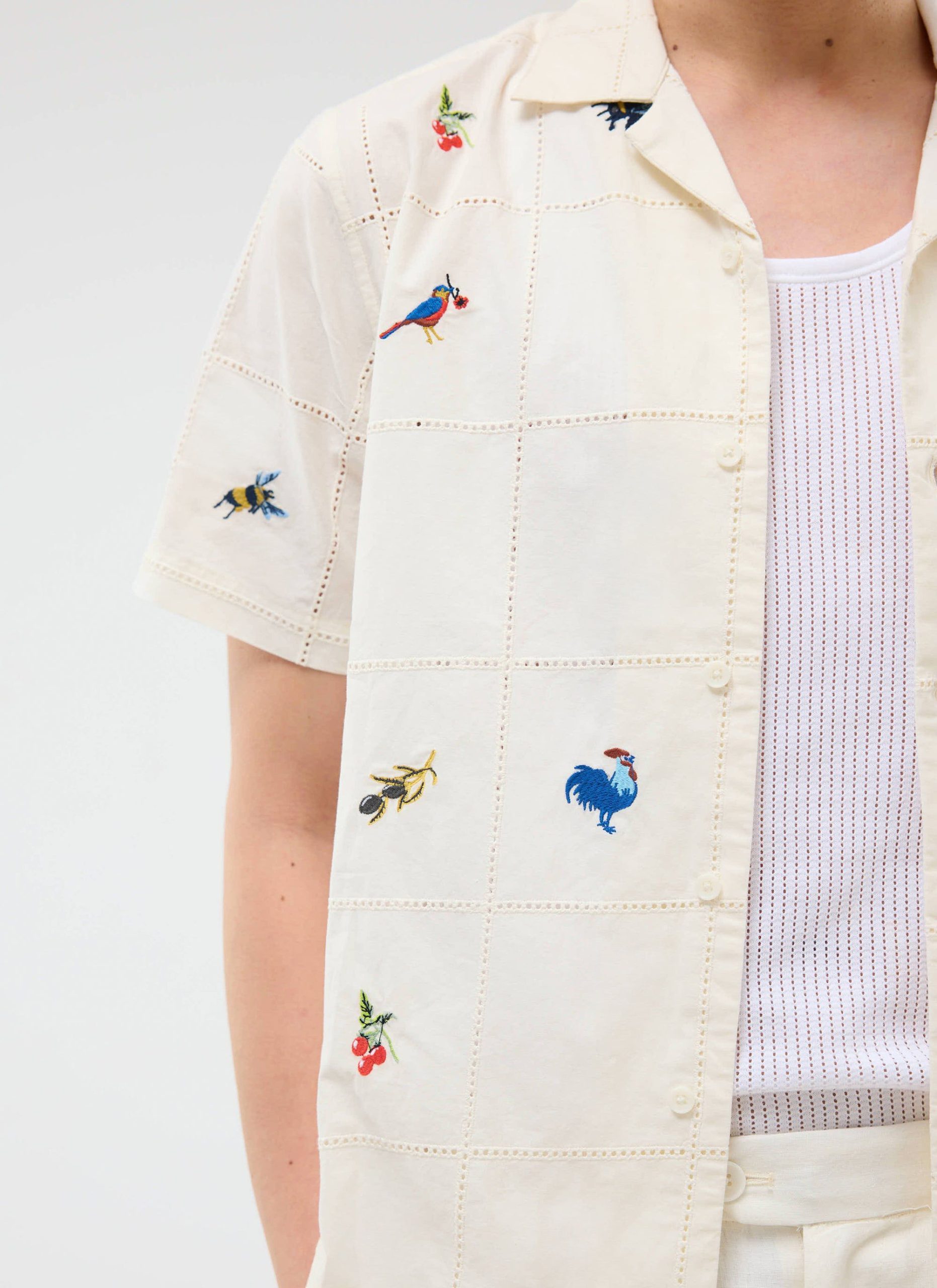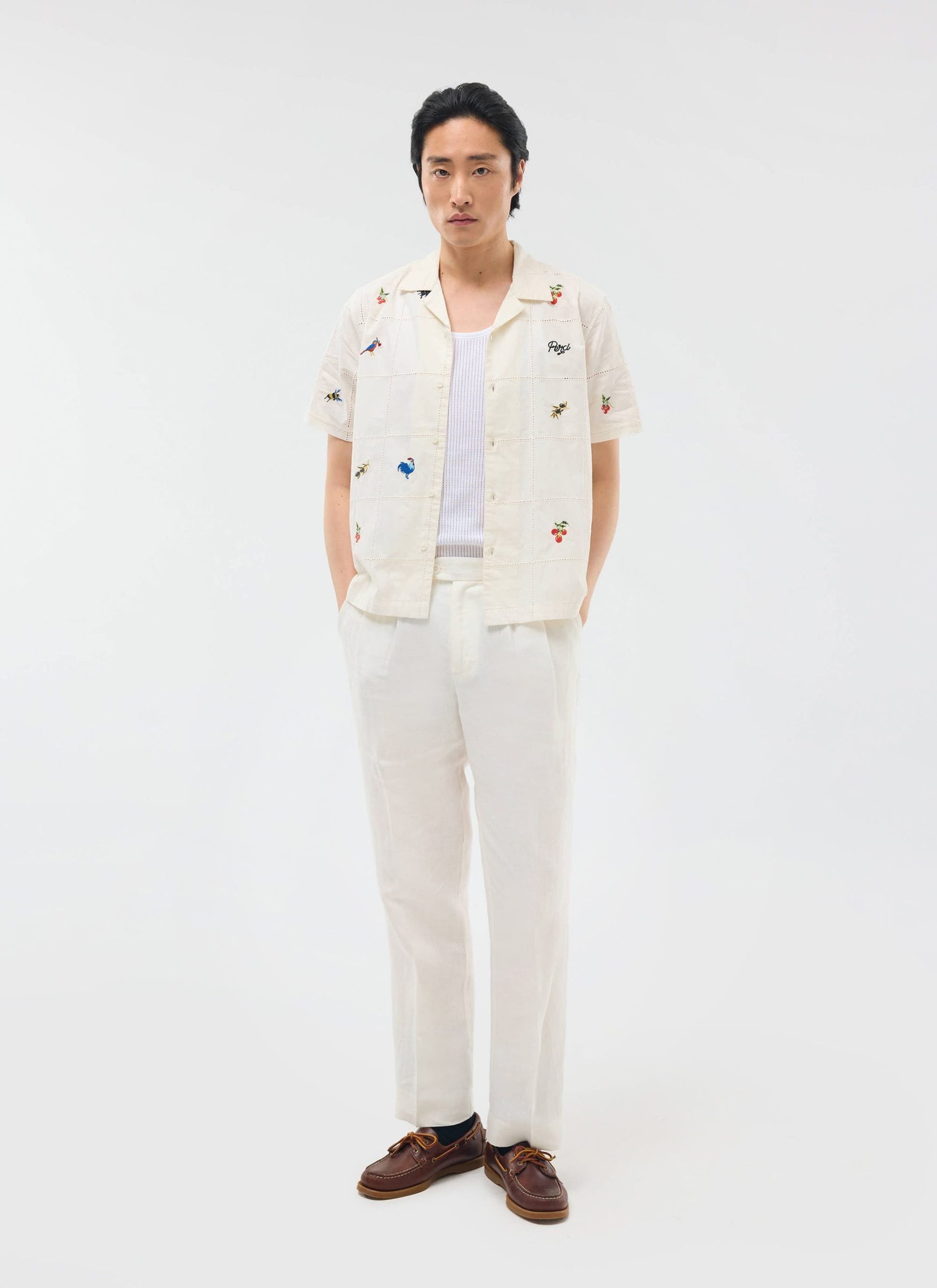 Percival Men’s Olive Tapestry Cuban Shirt | Ecru