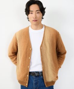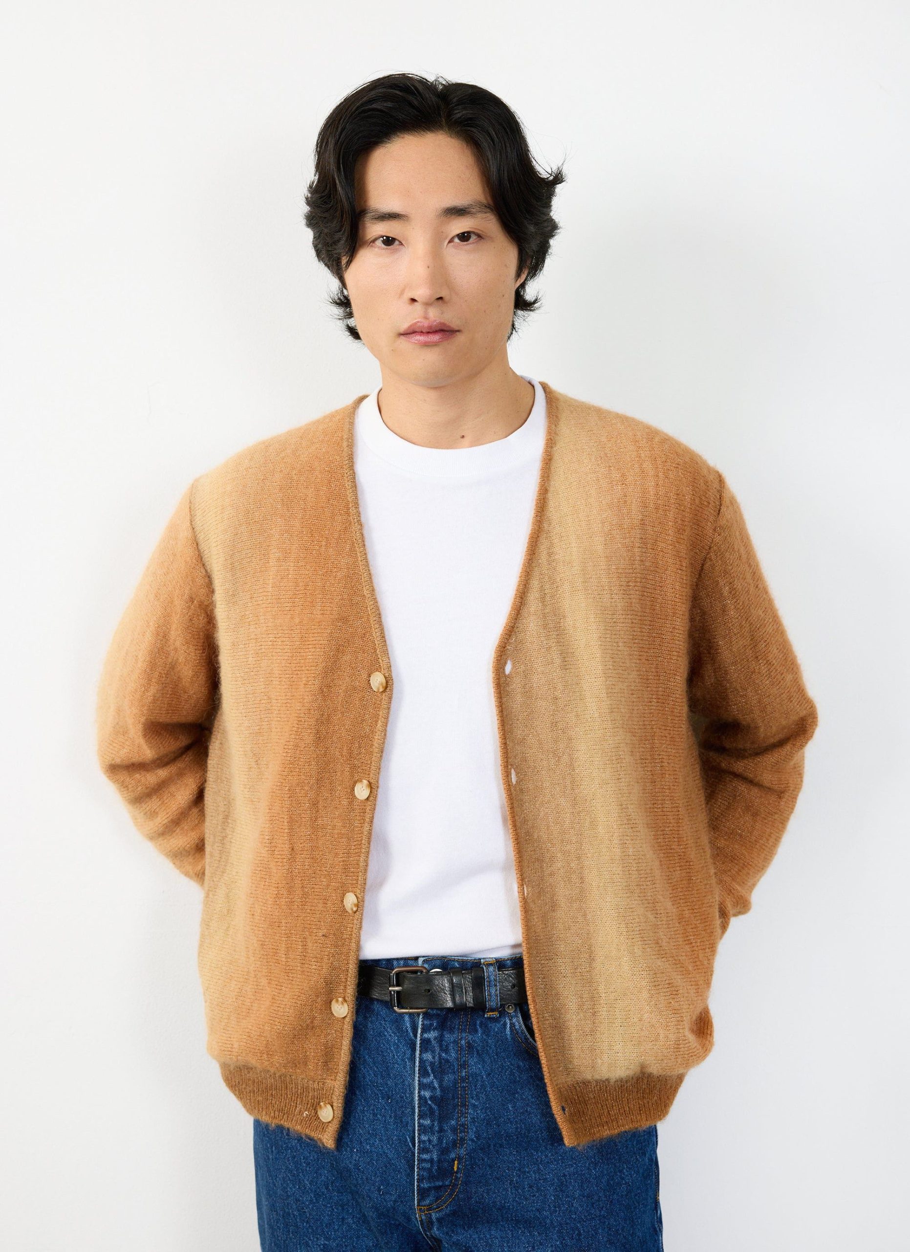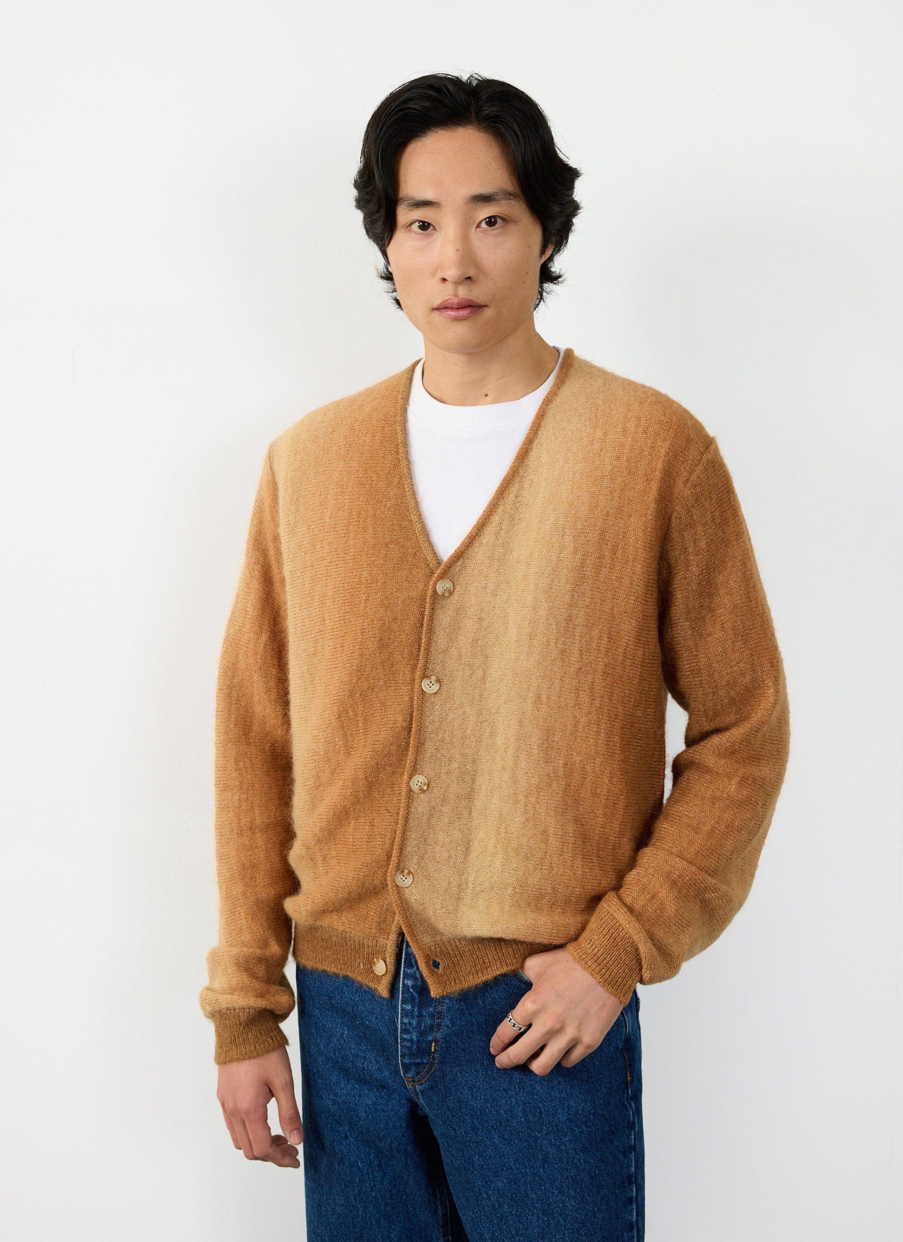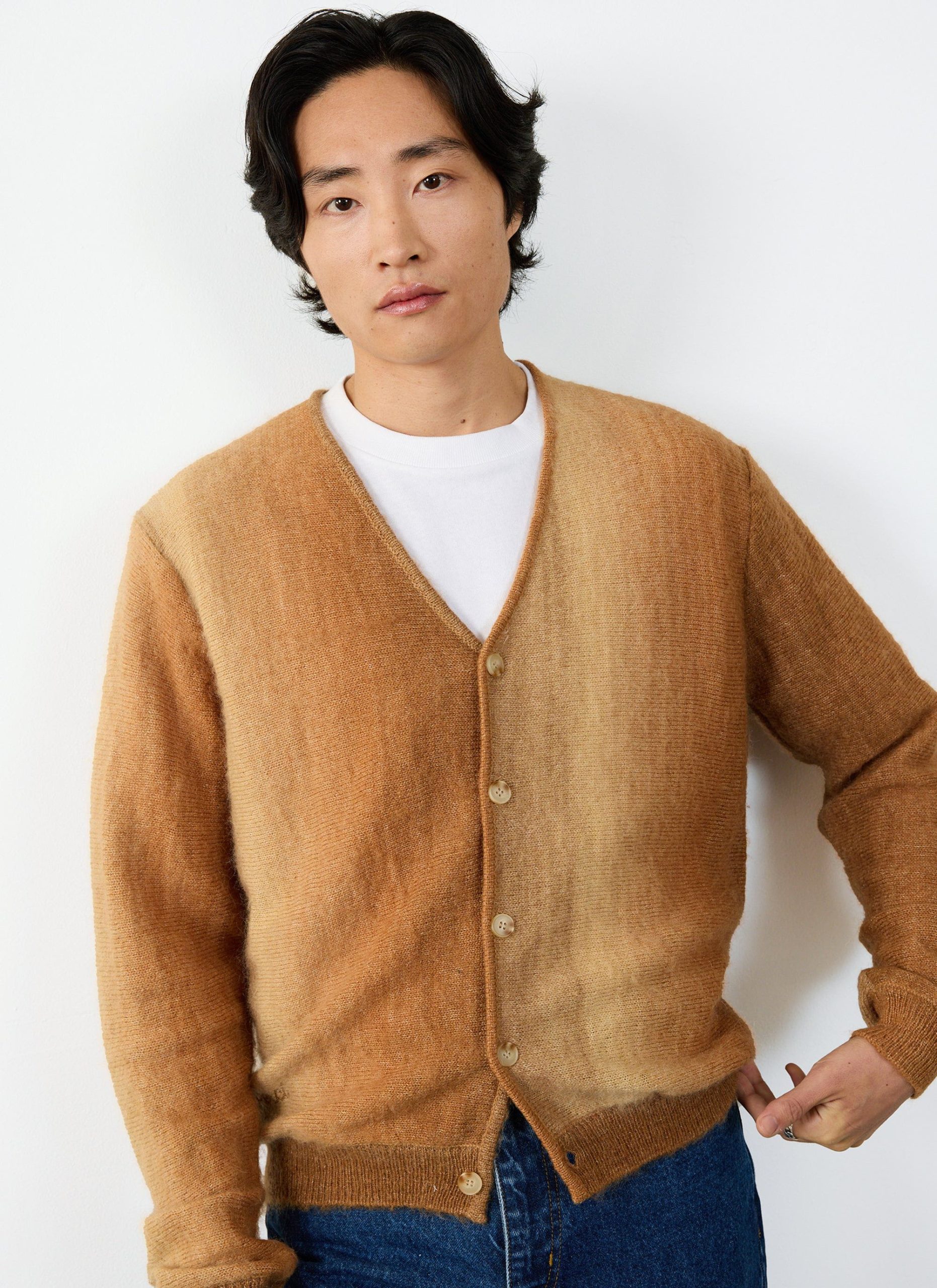 - Features: Men’s knit cardigan made from a mohair wool blend. Finished with a space dye yarn and engraved corozo buttons, this knitted cardigan is ideal for layering in the colder months.