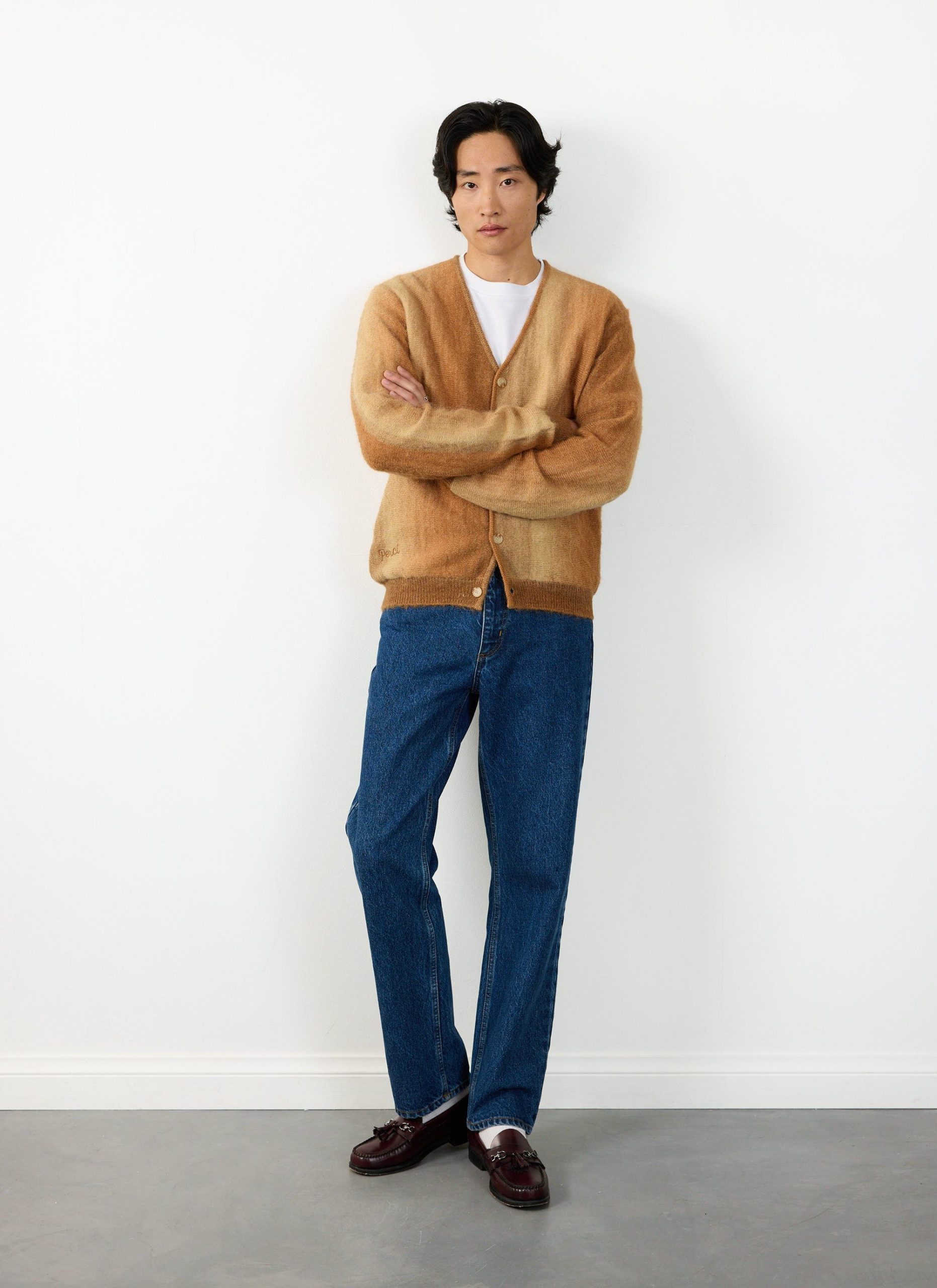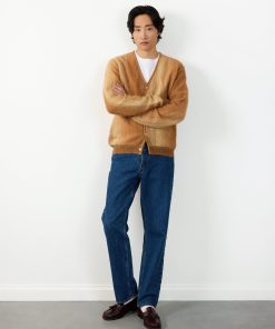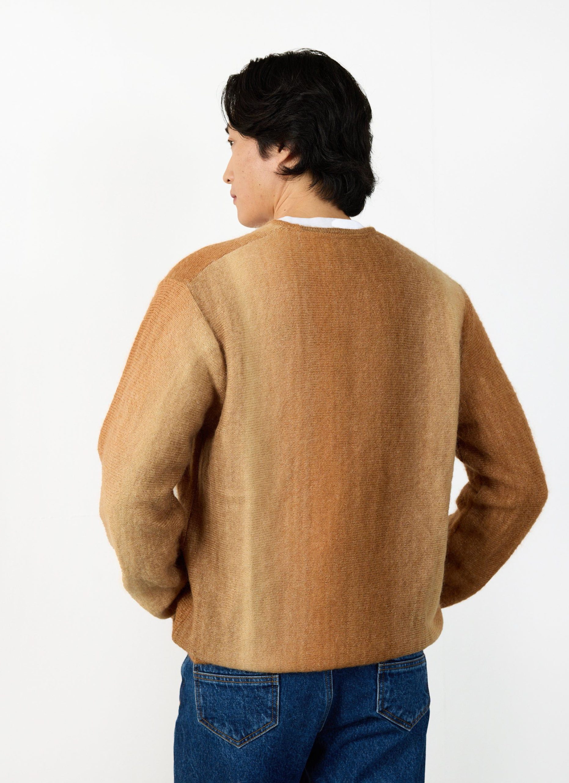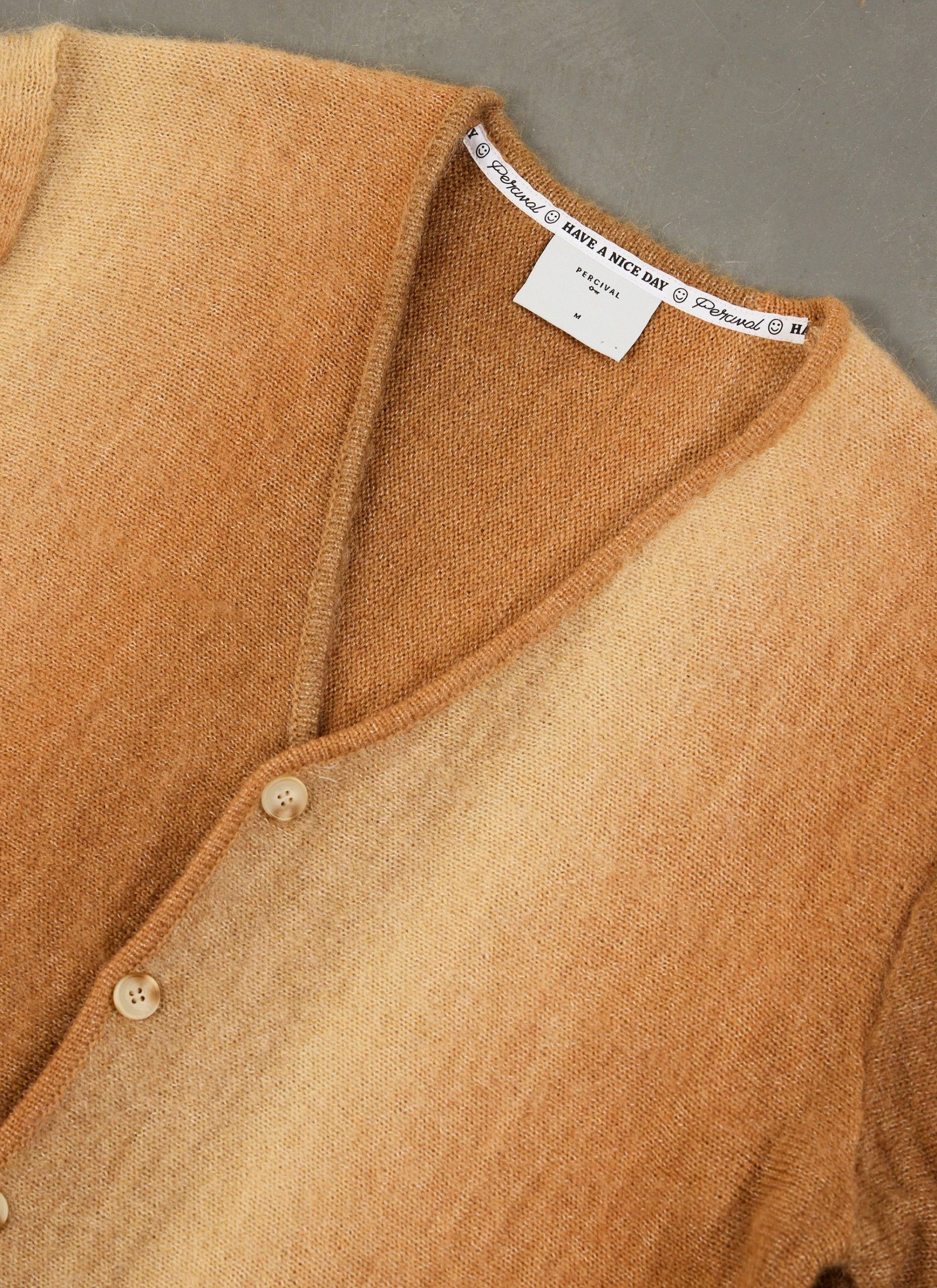 - Features: Men’s knit cardigan made from a mohair wool blend. Finished with a space dye yarn and engraved corozo buttons, this knitted cardigan is ideal for layering in the colder months.