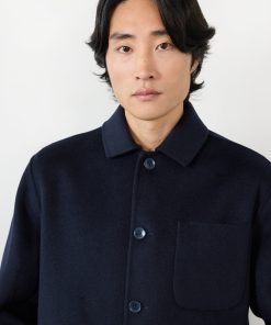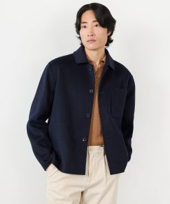 - Features: Men’s Overshirt in Navy, made from 100% Wool. This stylish peice features dropped shoulders, a chest patch pocket, two slip pockets and is made from high quality wool to provide warmth and breathability. This Wool Overshirt is ideal for layering and in particular transitional seasons, a must have for all men wanting to enhance their wardrobe.