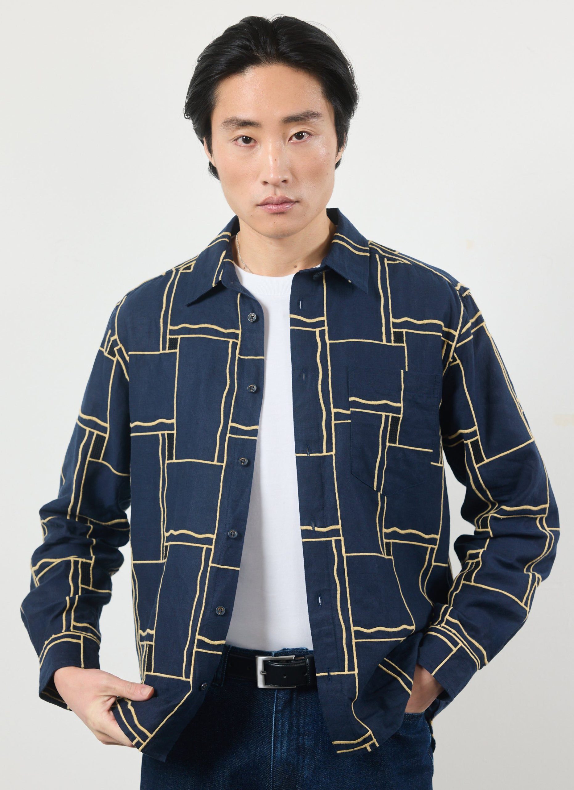 Men’s Embroidered Shirt in Navy