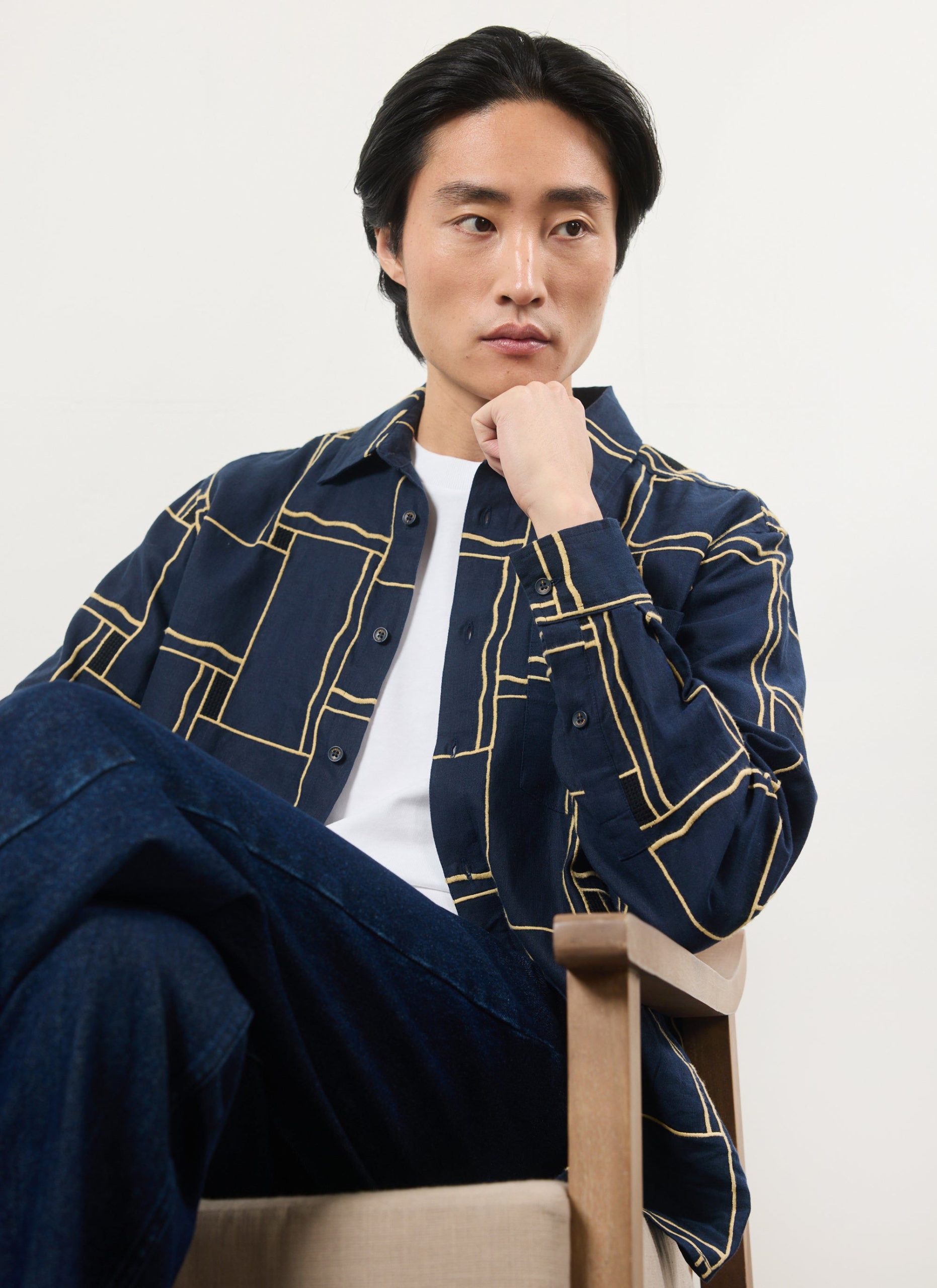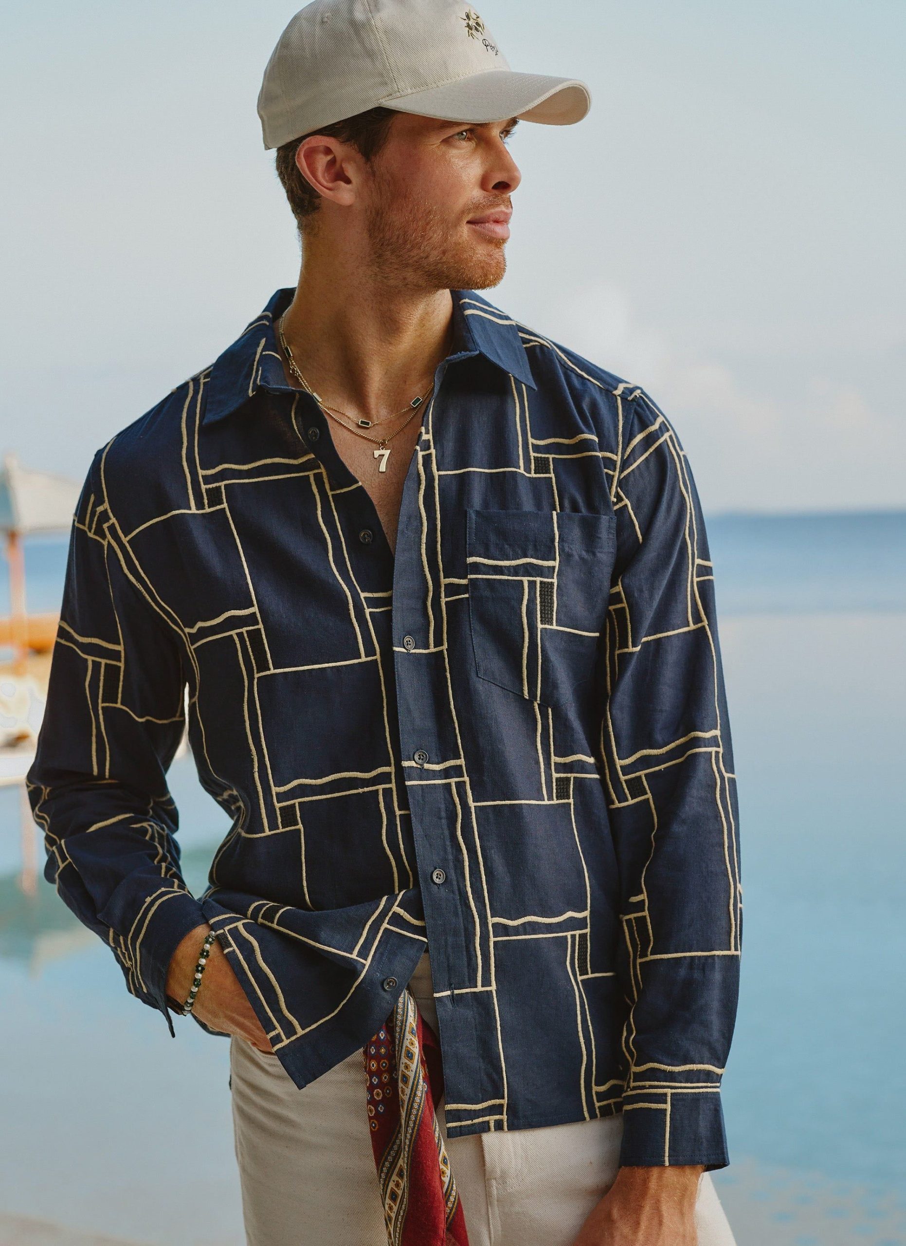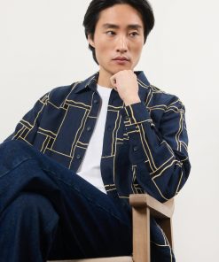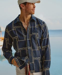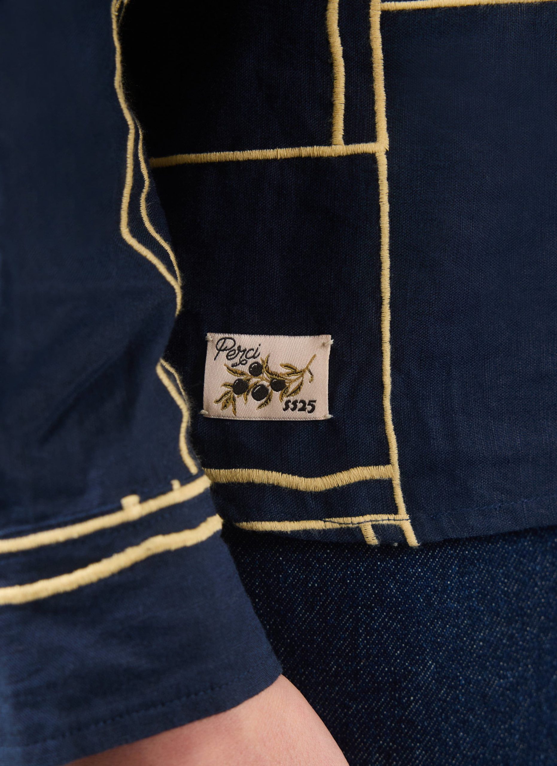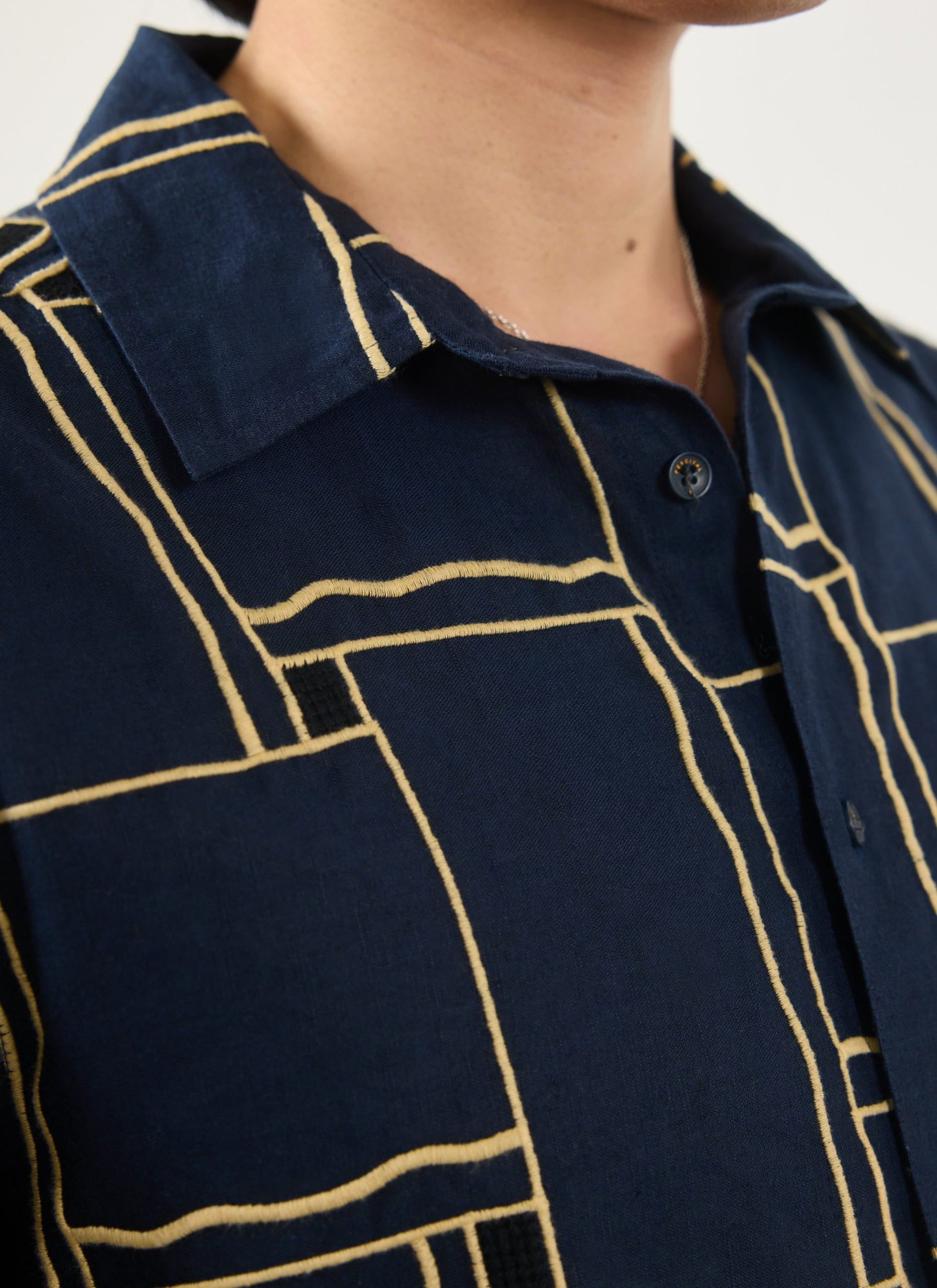 - Features: Men’s Embroidered Navy Shirt in an oversized fit. This versatile piece is ideal for a smart casual outfit or can be used for layering. Featuring an intricate Perci SS25 badge, chest pocket, button cuffs and custom Percival buttons. The hand drawn illustration has been sewn onto a cotton seersucker fabric making it perfect for every day wear.