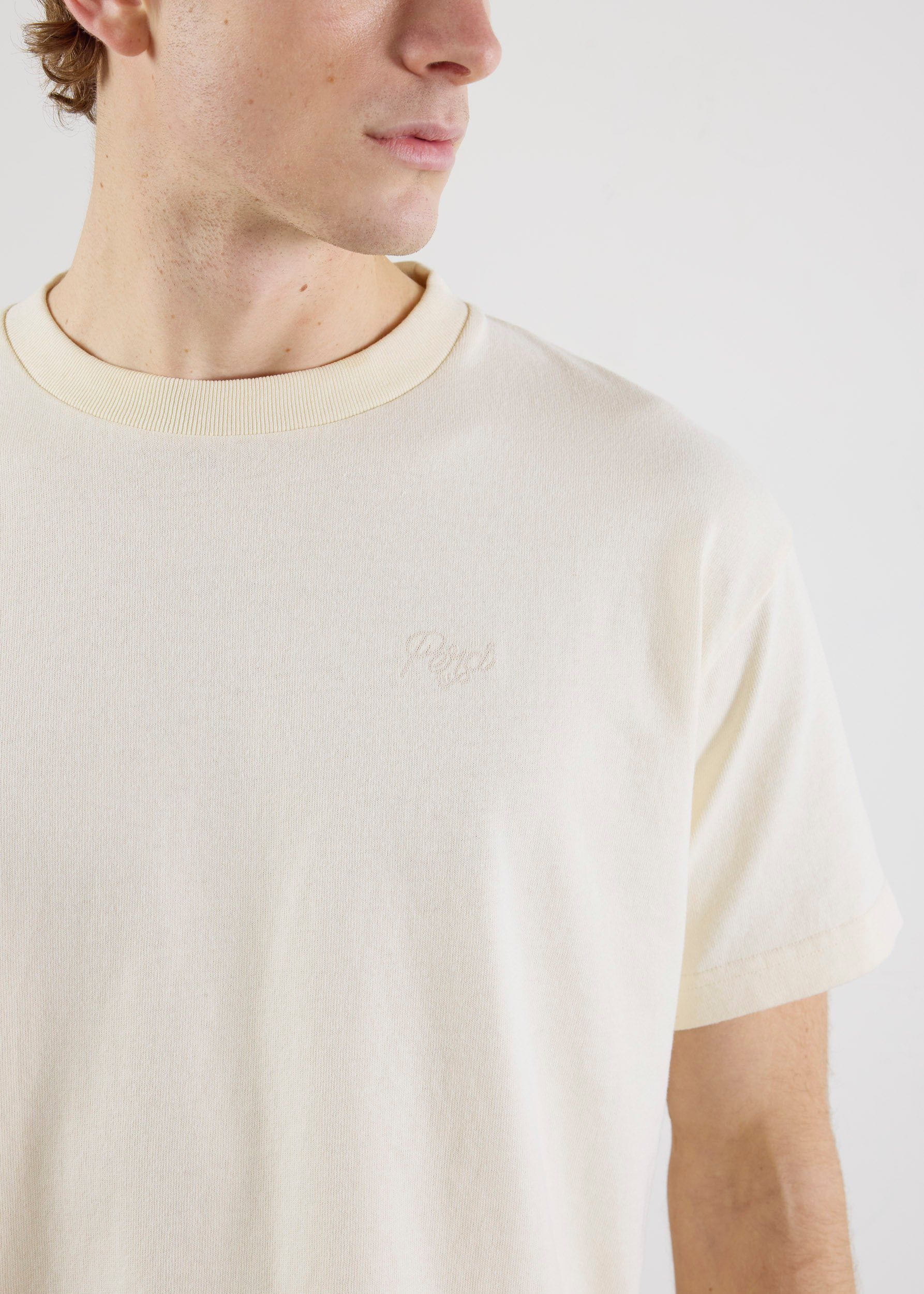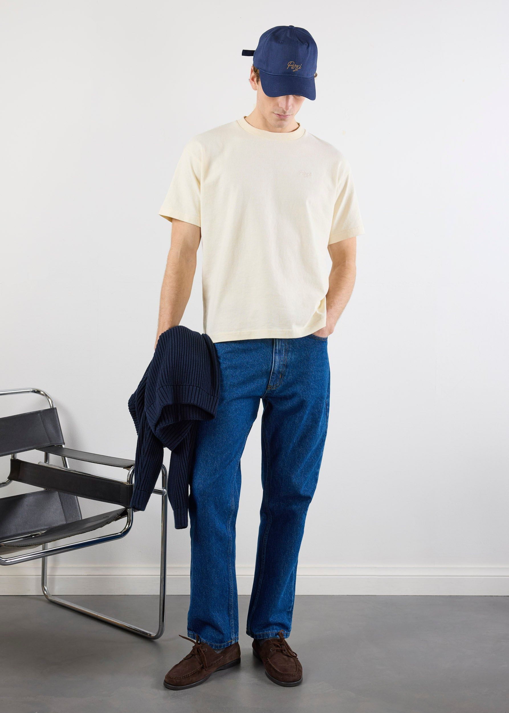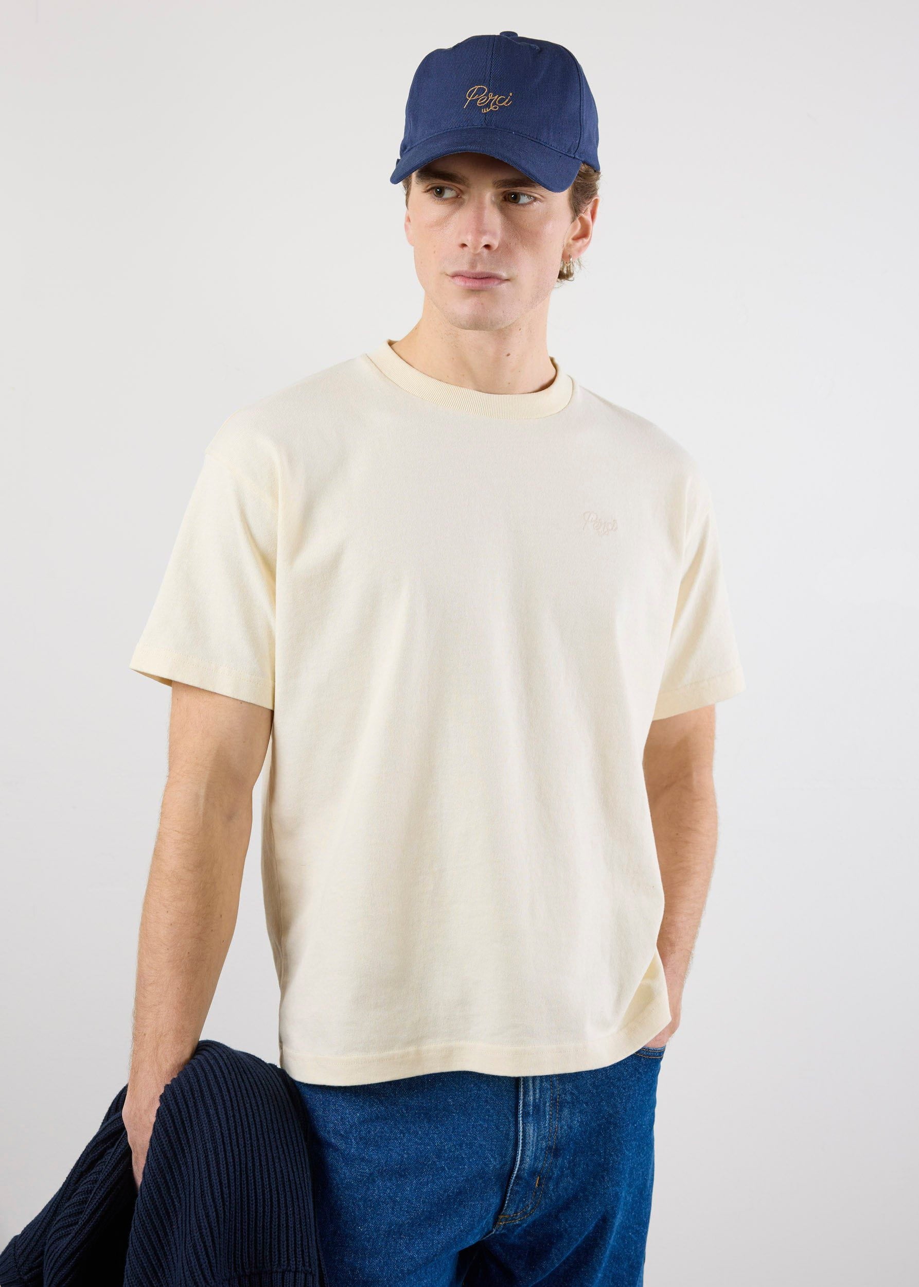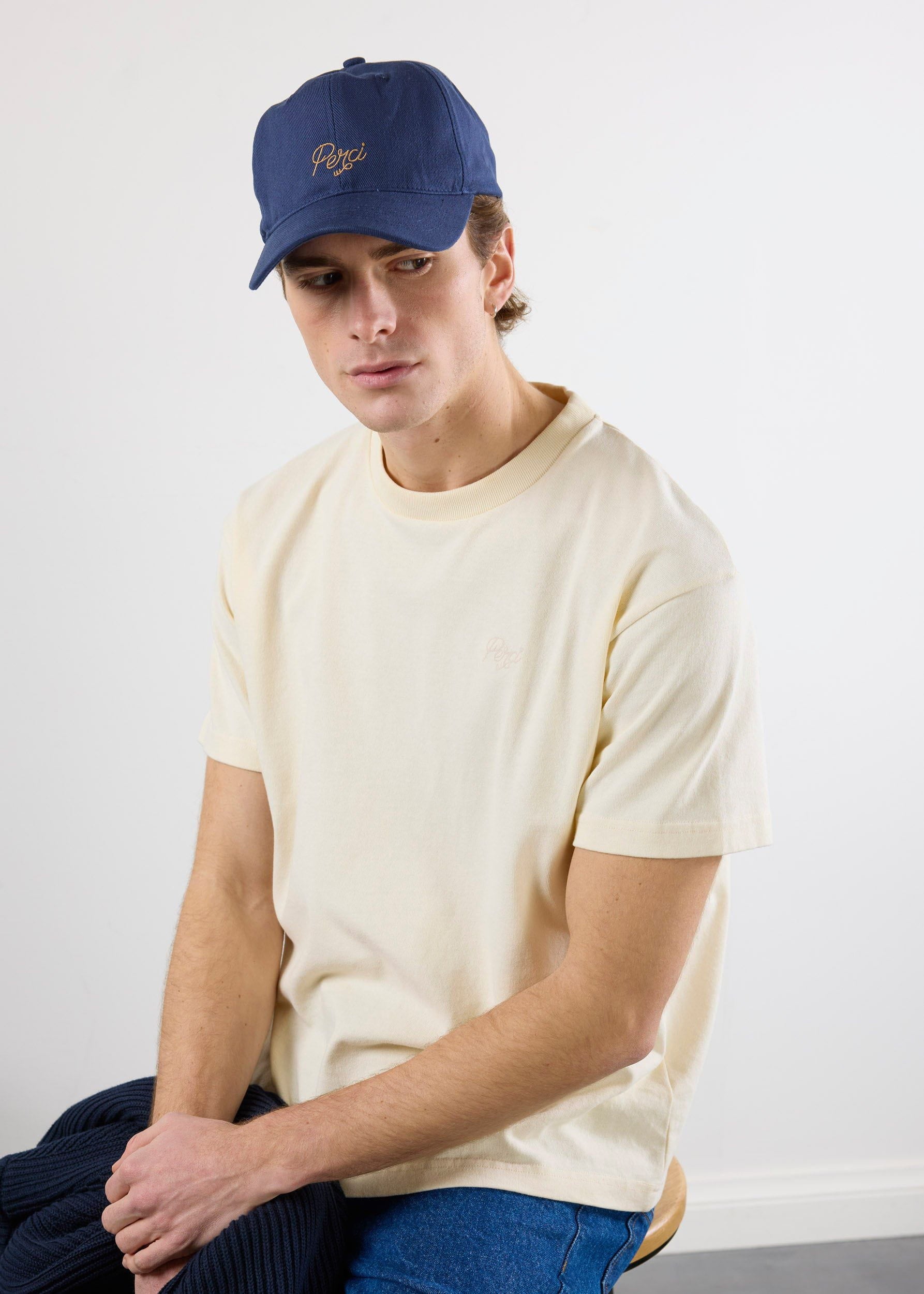 Perci Oversized T Shirt, made from organic cotton in this fetching ecru colourway,. The building blocks of any gents wardrobe – the humble t-shirt, with the T of course representing the shape of the garment and its association with training. Originating as an undergarment in the 19th century, the T gained in popularity through WWII through its adoption of the U.S. Navy and Military. Can’t imagine not having a good set of tees in rotation. Quality.