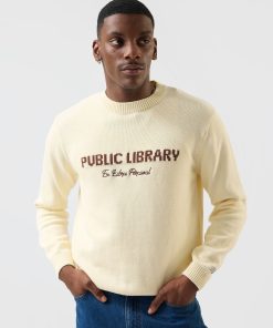 Public Library Knitted crew. Part of Percival new season, a season inspired by books, the pages, the spines and the dealers. The Public library, a silent club house.