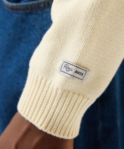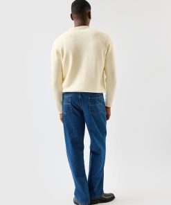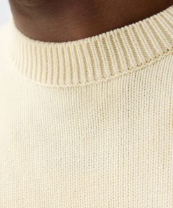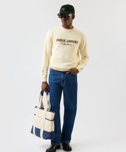 - Features: Men’s knitted crew neck jumper in ecru cream, made from an ultra-soft wool blend in a classic shape. This mid weight sweater is designed with a ribbed collar and finished with intricate ‘Public Library’ stitching for a subtle point of difference. A versatile piece for transitional seasons, this knit jumper offers warmth without bulk and layers effortlessly over shirts or under jackets. Lightweight yet cosy, it’s an ideal addition to your wardrobe for year-round styling.