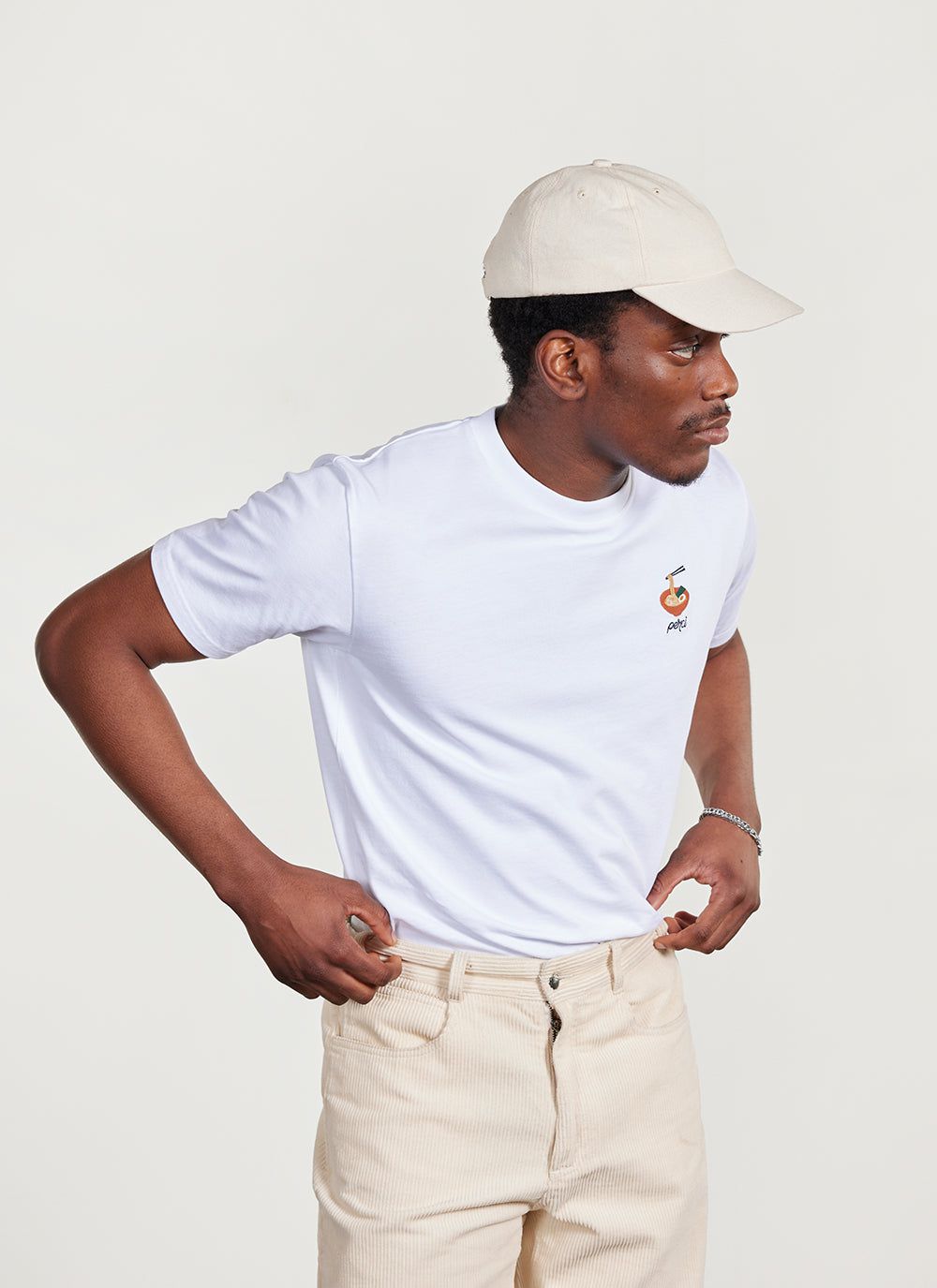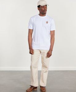 - Features: Men’s heavyweight t shirt made from 100% organic cotton. Finished with short sleeves and embroidery on ramen chest, this white oversized t shirt is an easy-to-wear staple.