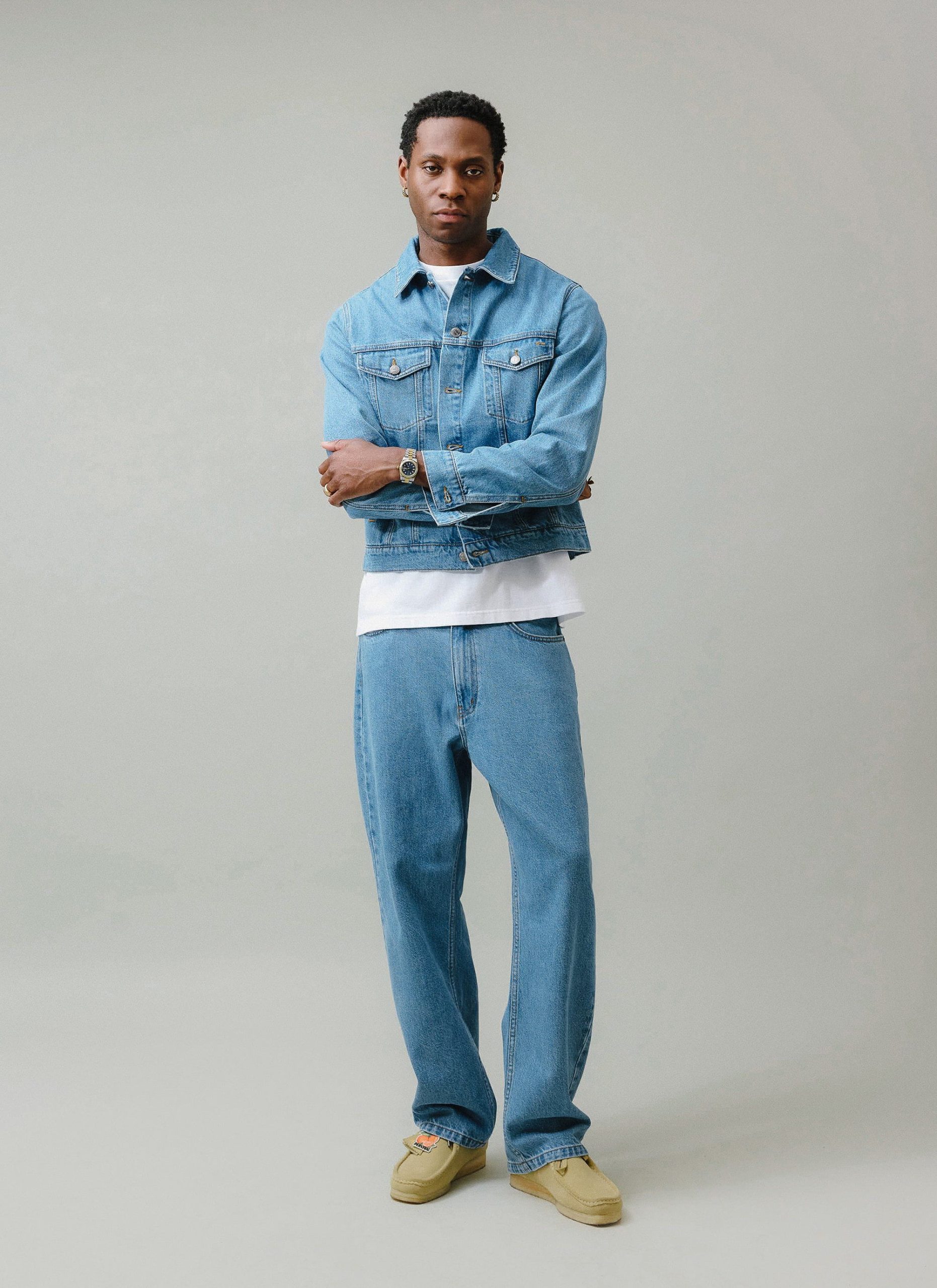 Yes, finally. Percival Brand Jeans. I’m a full jean counter, love to miss match tones and washes, or full denim tux, keen jean, straight leg or wide leg denim jean machine. Part of the Percival wardrobe, the new wide leg fit. Wider than our straight leg, this a relaxed or wider fit, pairs well with Percival shirts, or denim jackets.