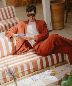 Blazer, the term first appeared in 1952, in an article that referred to a red jacket in a bright or ‘blazing’ red colour. Percival Tailored Linen Blazers then, blazing. Maybe not in red. A blazer or suit, dressing up for getting down, adapt a persona, whatever you do, do you.