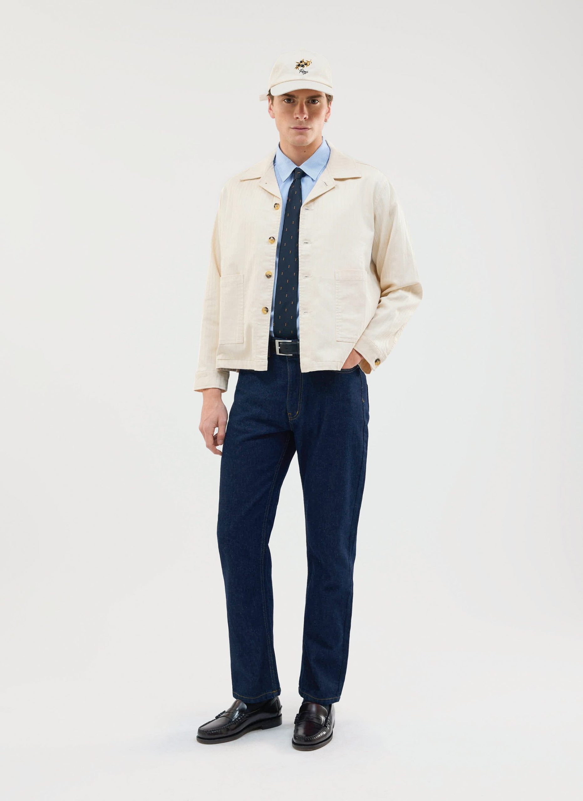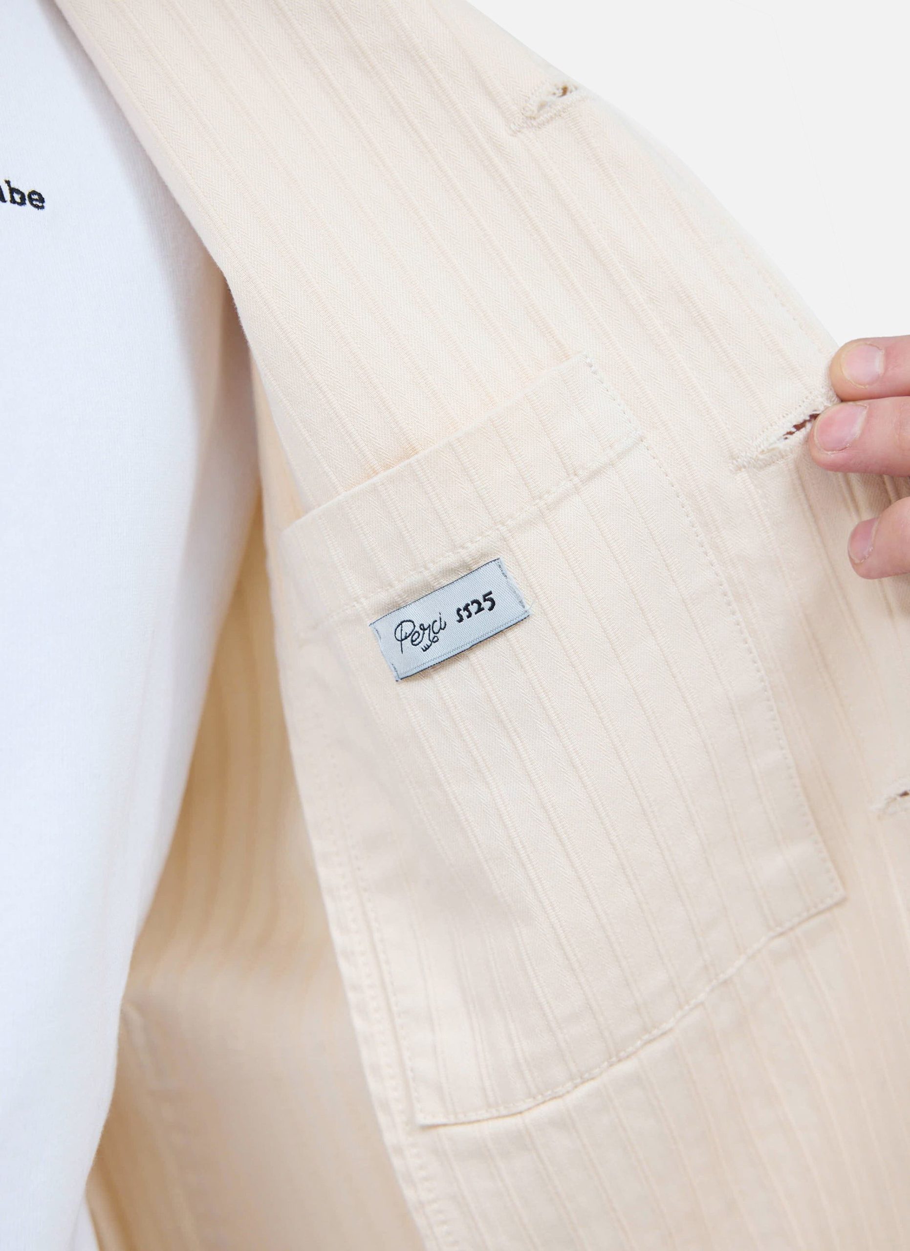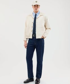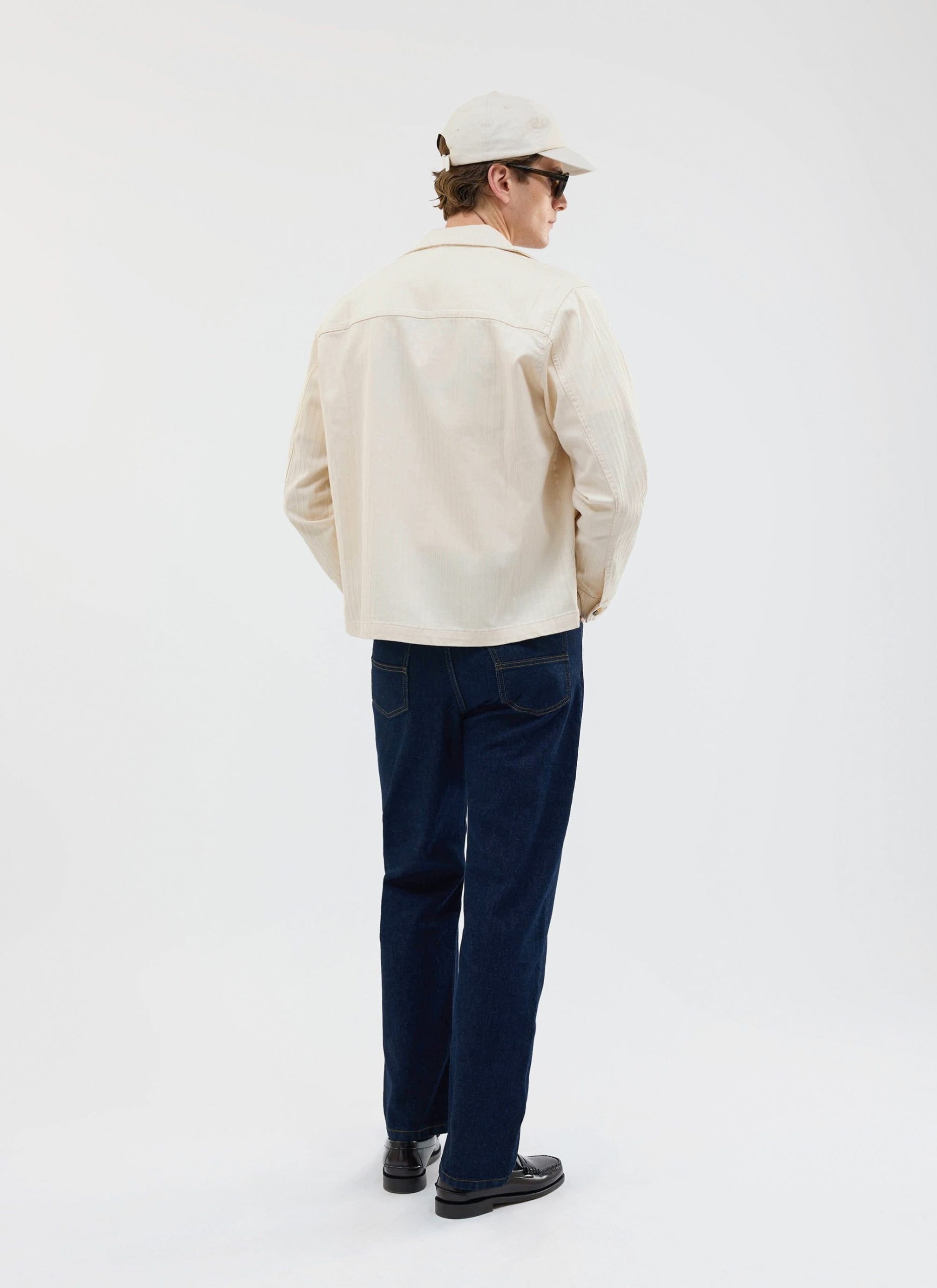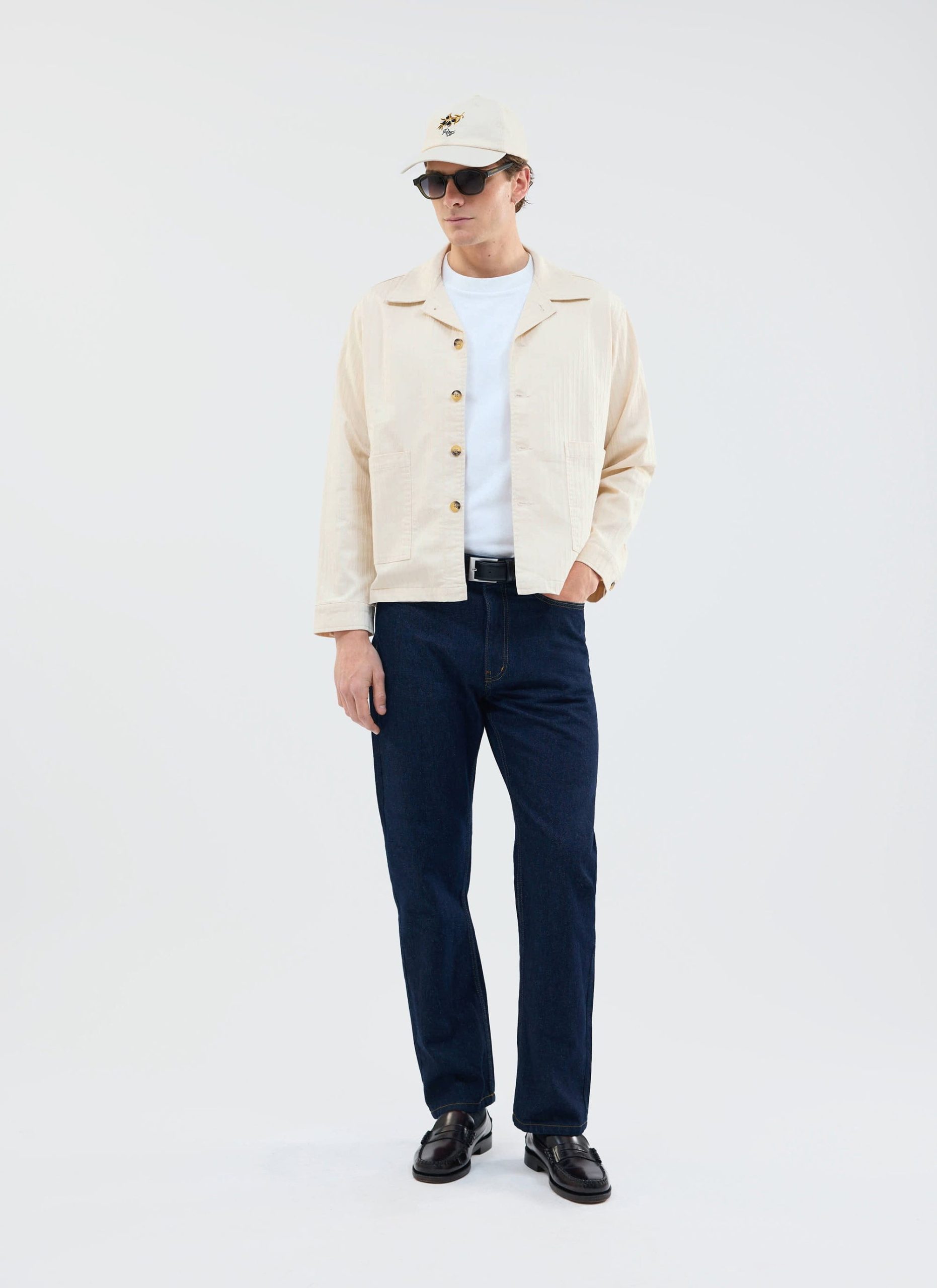 - Features: Men’s cream overshirt jacket featuring custom Percival buttons, a cuban style collar, patch pockets, faint ribbed texture, an internal storage pocket, and button cuffs. Cut at the hip for a slightly cropped but balanced fit, this summer weight overshirt is perfect for everyday wear. Effortlessly pair the utility overshirt with any summer shirt, polo, or tee for a clean, laid-back look.