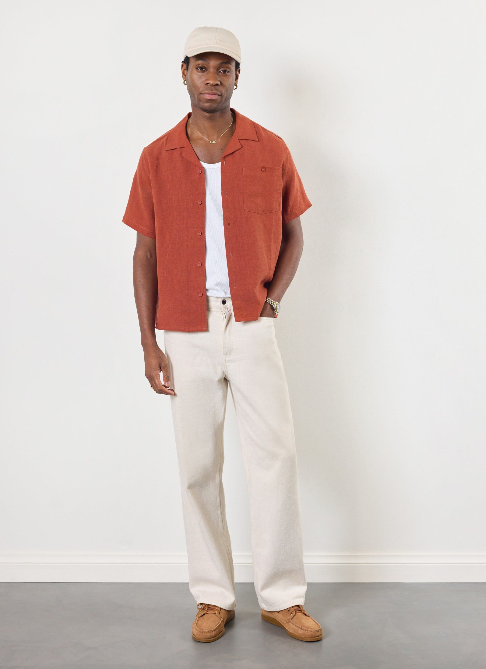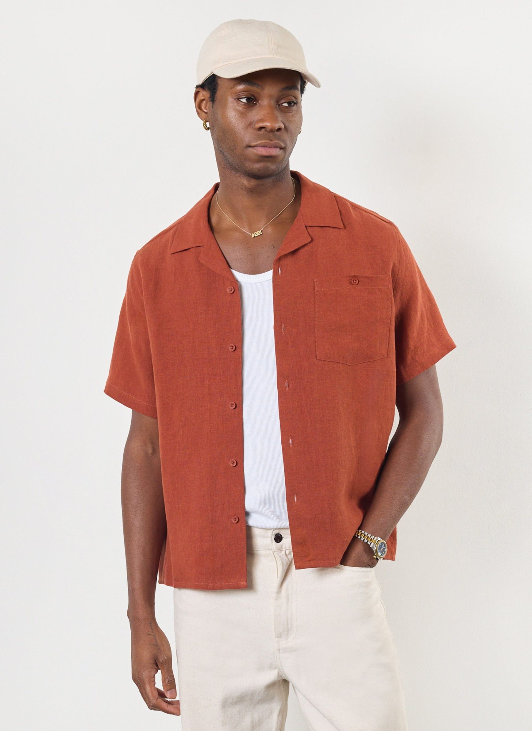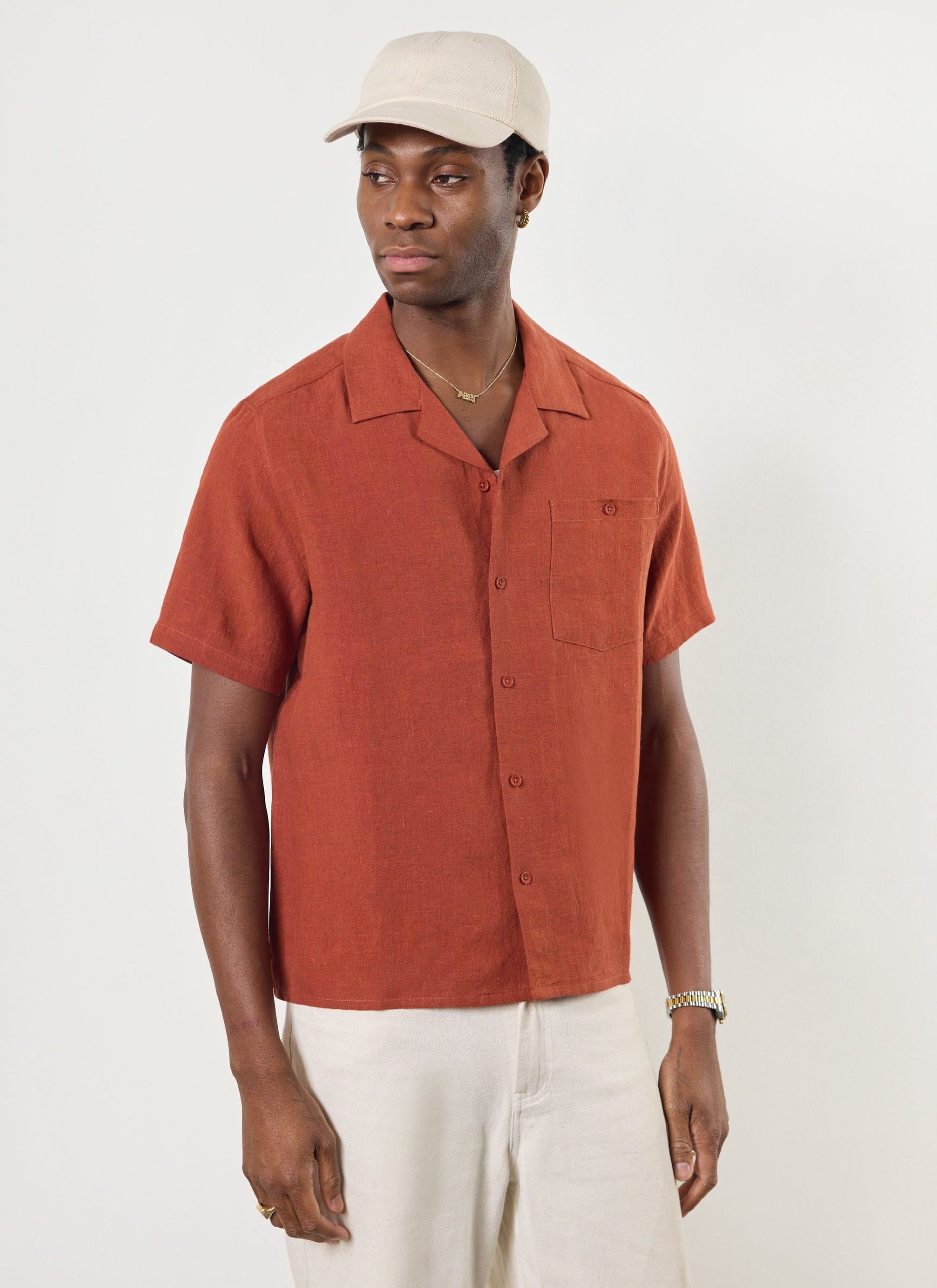 Percival Men’s Short Sleeve Cuban Shirt | Rust