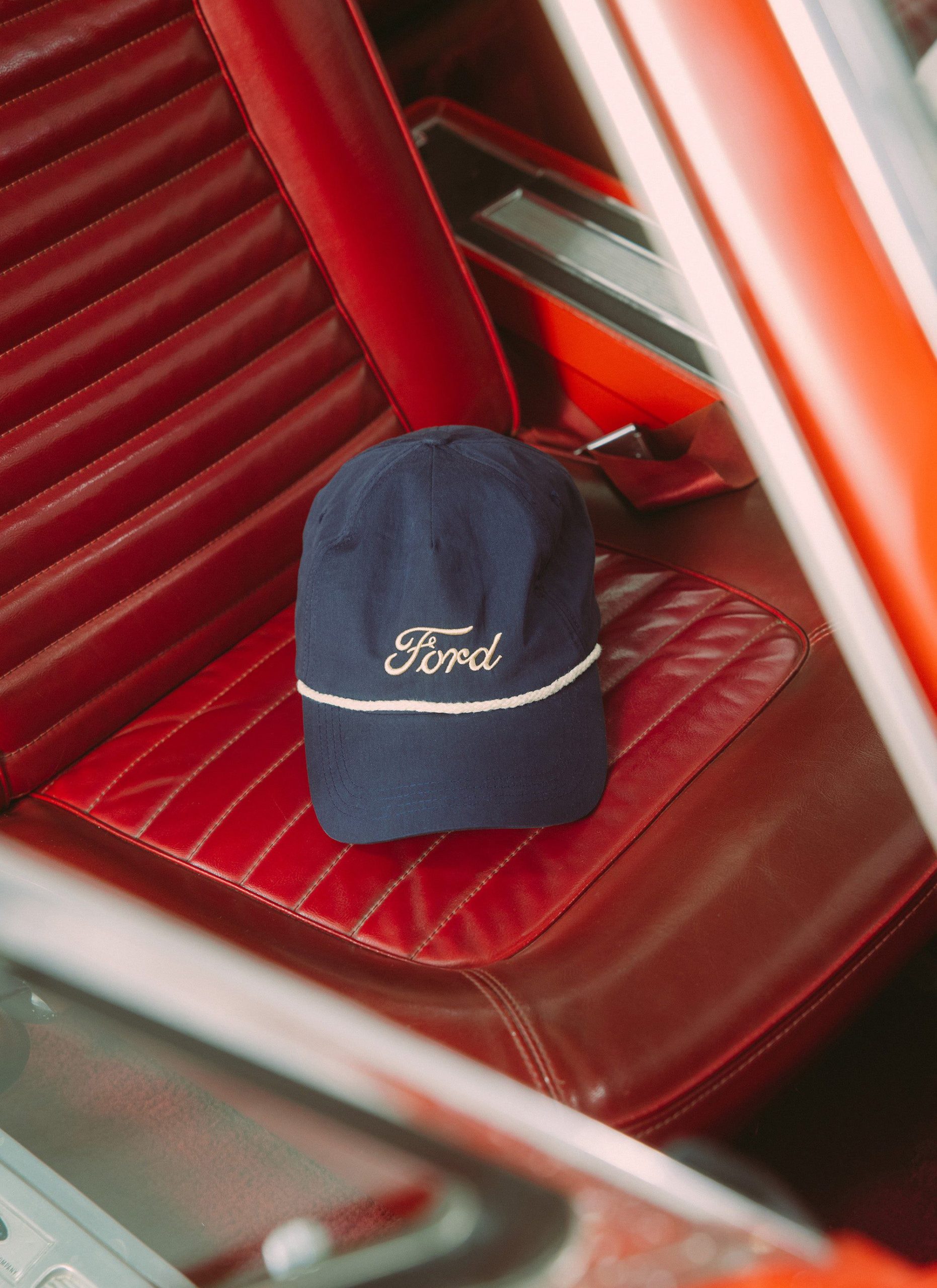 Blood type, gasoline. Celebrating 60 years of the Mustang, Percival and Ford have created a full gas no breaks collaboration of menswear. This a very limited edition trucker cap.