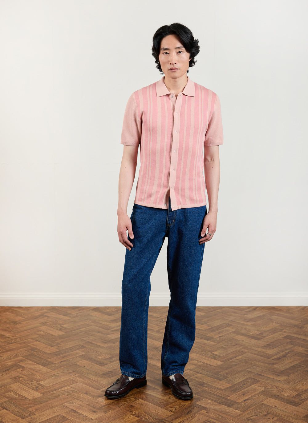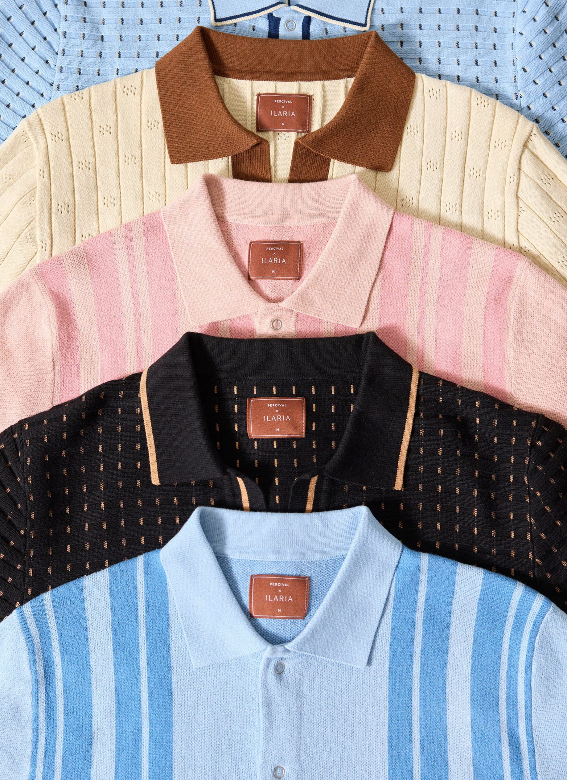 Classics, what makes a classic. A classic is judged over a period of time to be of the the highest quality and outstanding of its kind. An instant classic taking inspiration from the classics. Subverting the classics. Percival x Ilaria. This is a classic stripe knitted shirt, it will look good where ever you take it.