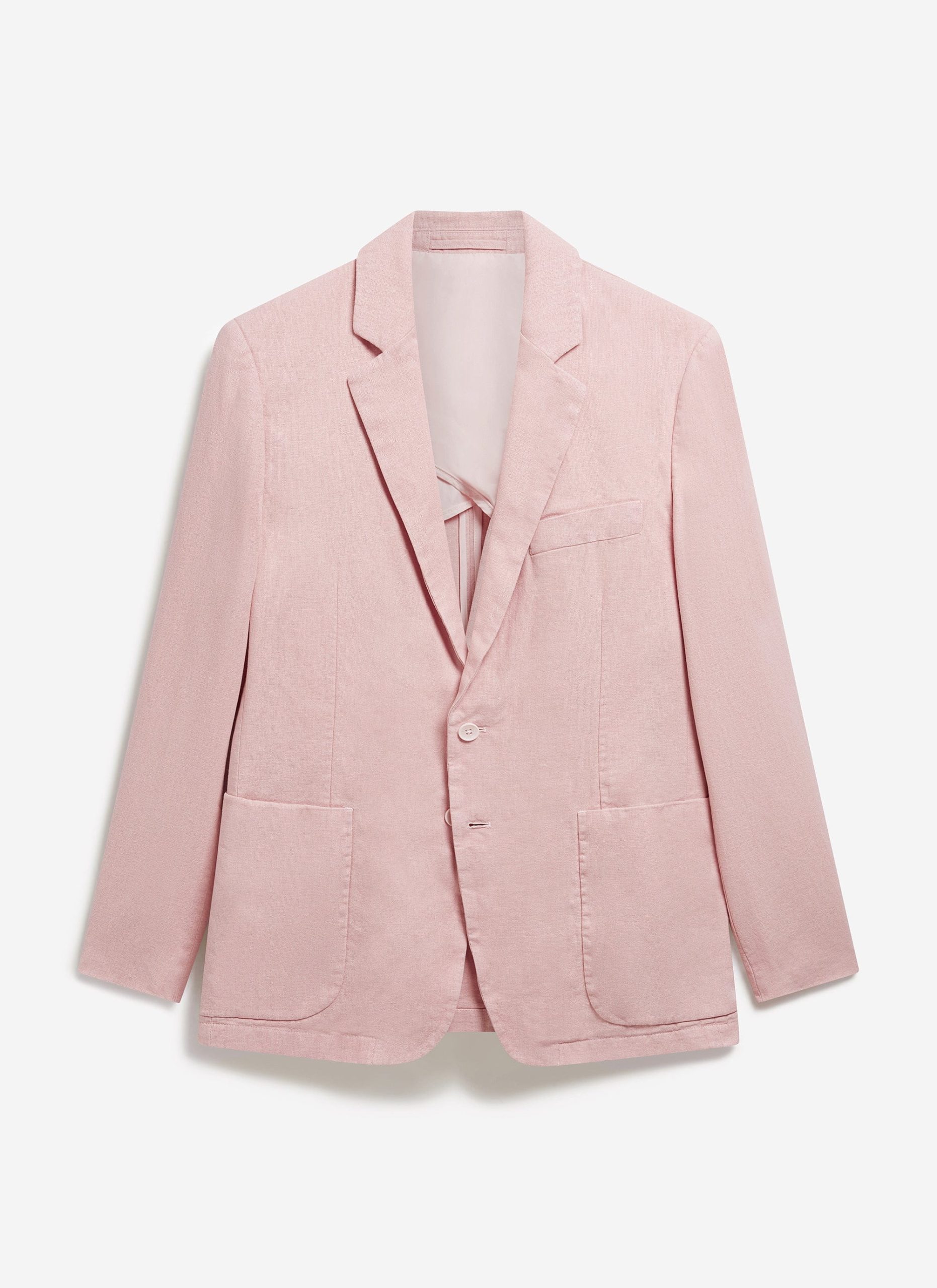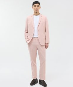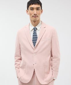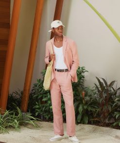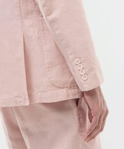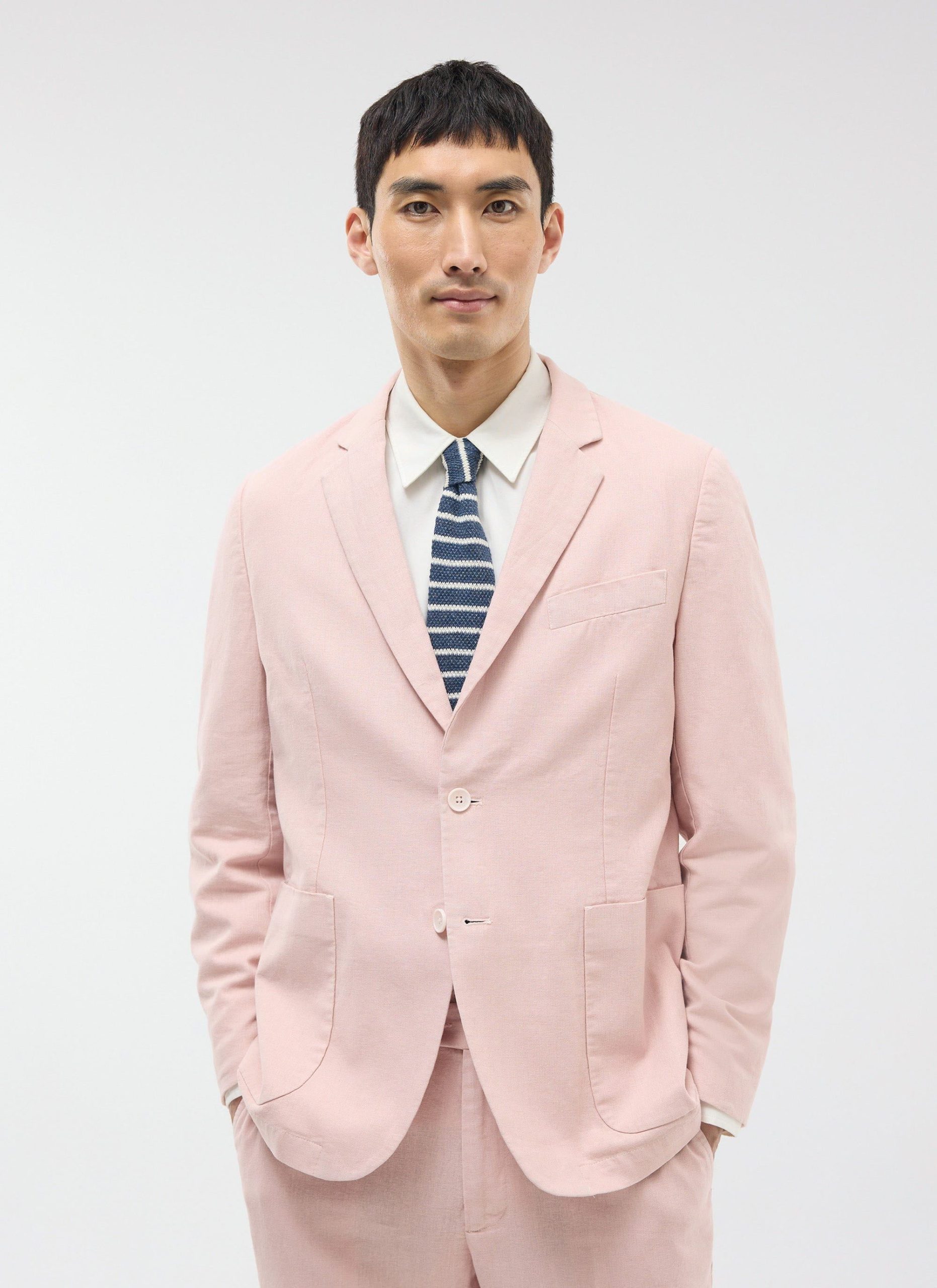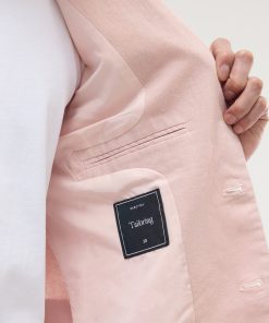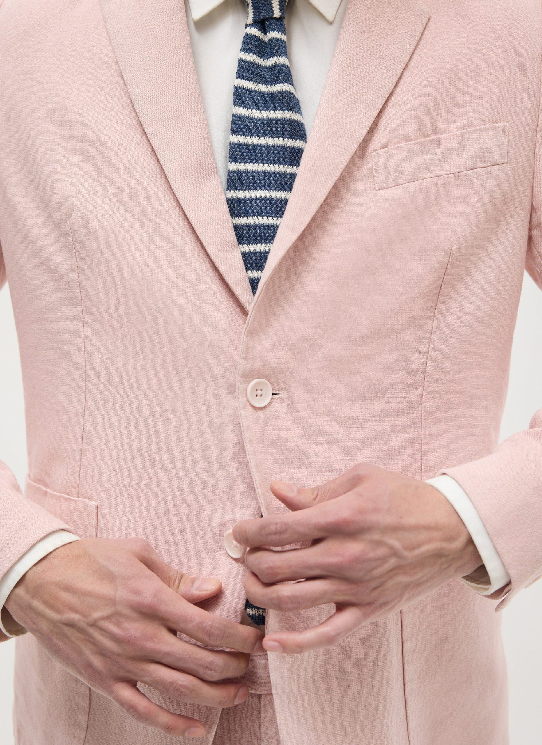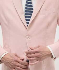 - Features: Men’s Linen Blazer in Pink, made from a lightweight Linen blend in a pink colourway. Our Pink Linen Suit Jacket is made with increased body and sleeve widths for comfort, thin shoulder pads and a smooth shaped shoulder. The Pink Tailored Blazer is finished with a single breasted design, back vents, chest welt pockets, side patch pockets and button-fastening. This lightweight Linen Suit Jacket is ideal for Weddings & Smart Dressing all year round.