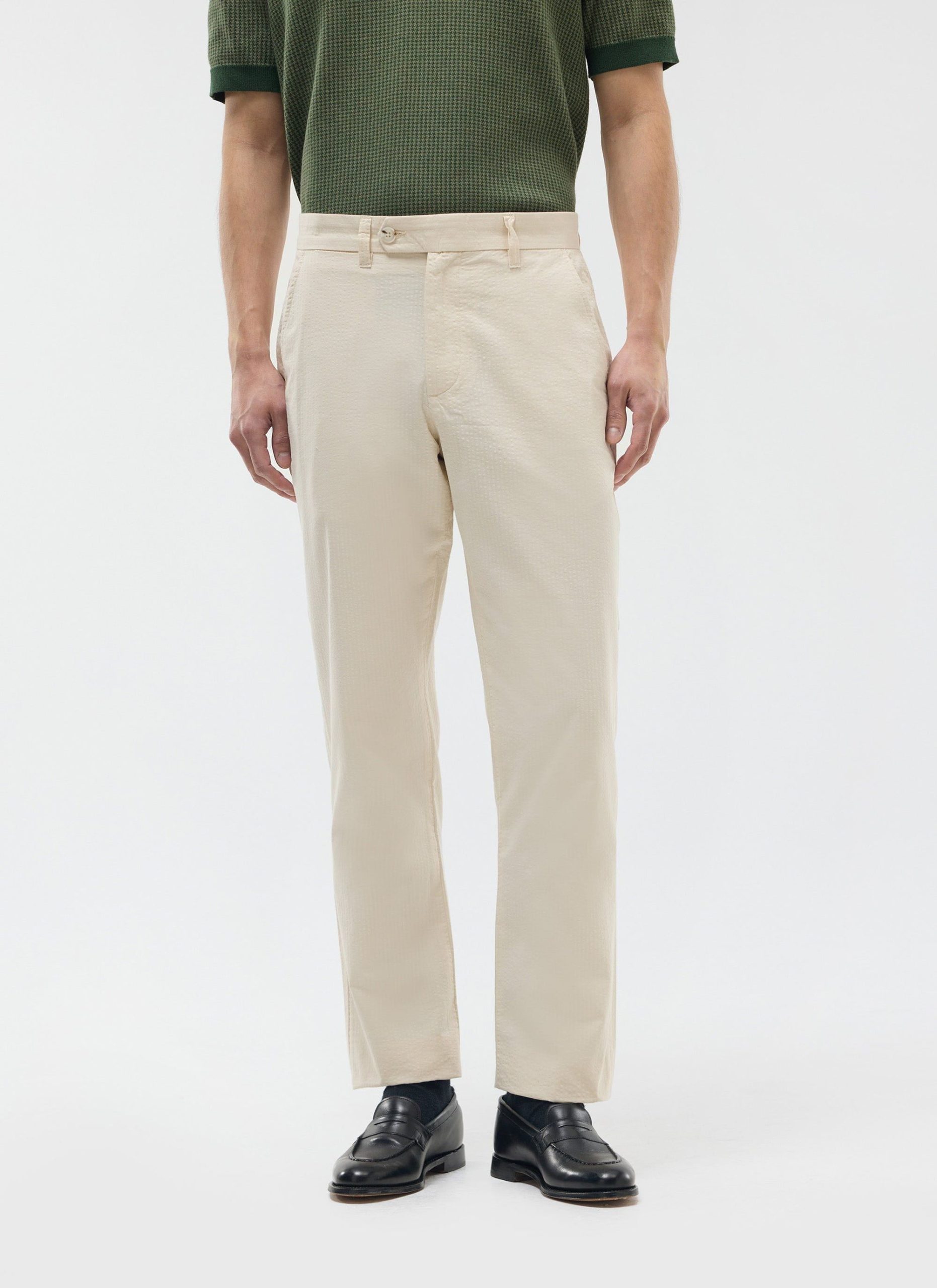 - Features: Men’s Tailored Trousers made from durable , with a straight leg shape and tailored details. These Seersucker Trousers features include a zip fly, back welt pockets, fixed waistband and belt loops, perfect for wearing with a belt. Ideal for weddings and smart dressing, these Tailored Straight Leg Suit Trousers should be in every man’s wardrobe, the 4.5cm invisible hem turn up depth allows for leg length alteration for personal preference.