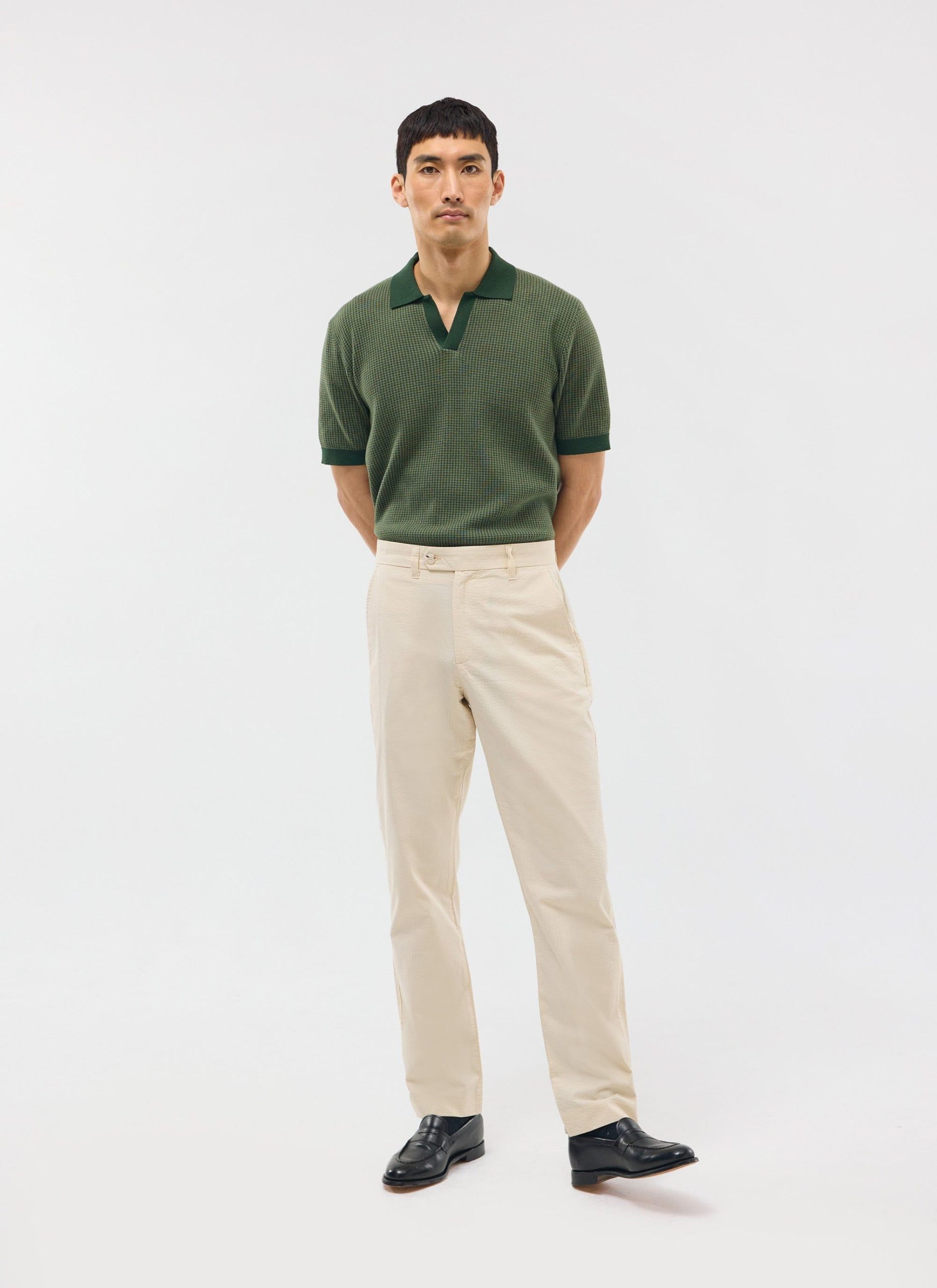 Tailored trousers, in a straight leg fit. Perfectly paired with the seersucker blazer or one of our smart summer casual shirts or lightweight knit options. These suit trousers feature, but are not limited to – shirt grip, welt pockets at back, belt loops, zip fly, all the hits. Perfect for summer weddings, dinners, smart casual wine mixers, or delivering the pefect pitch, pitch perfect, help yourself.