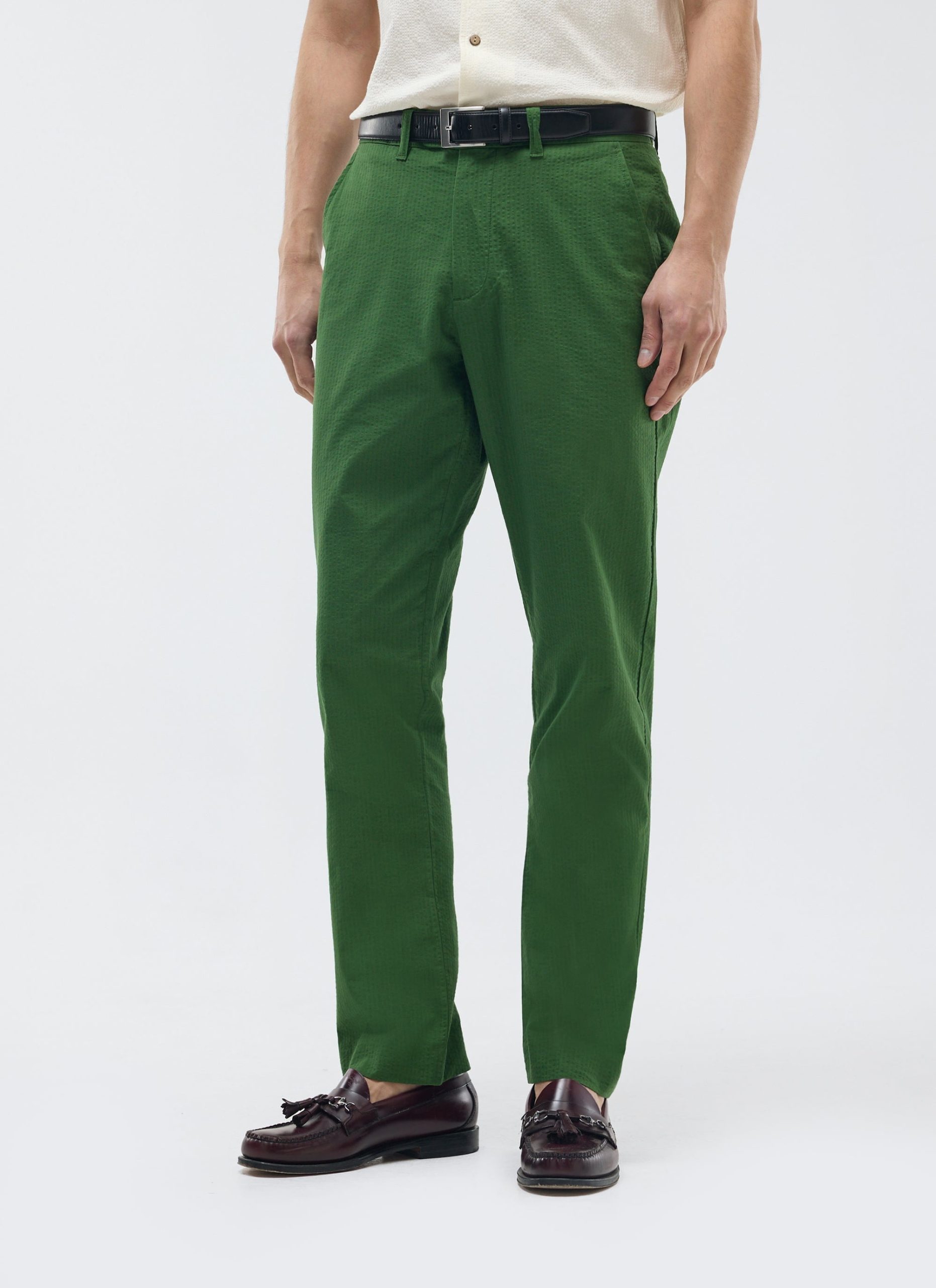 Percival Men’s Tailored Seersucker Trousers | Forest