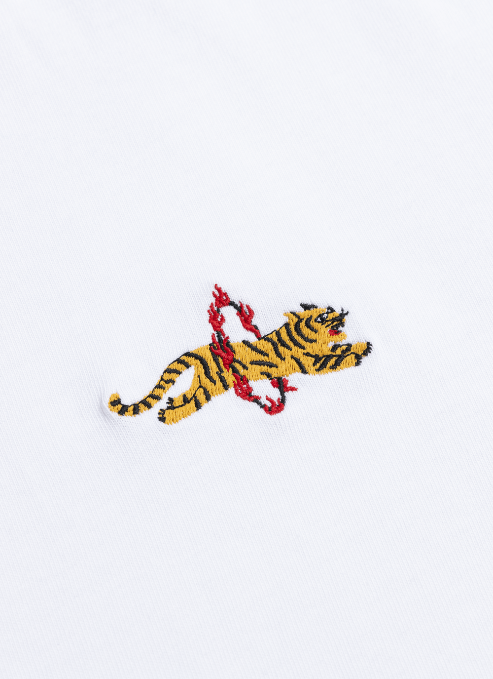 Tigers are the largest of the wild cats, they can apparently imitate the calls of other animals for hunting by mimicry but they can not purr, unsure if that is sad or not. Part of our new embroidered collection, all made from 100% organic heavy weight cotton, made by our friends in Portugal.