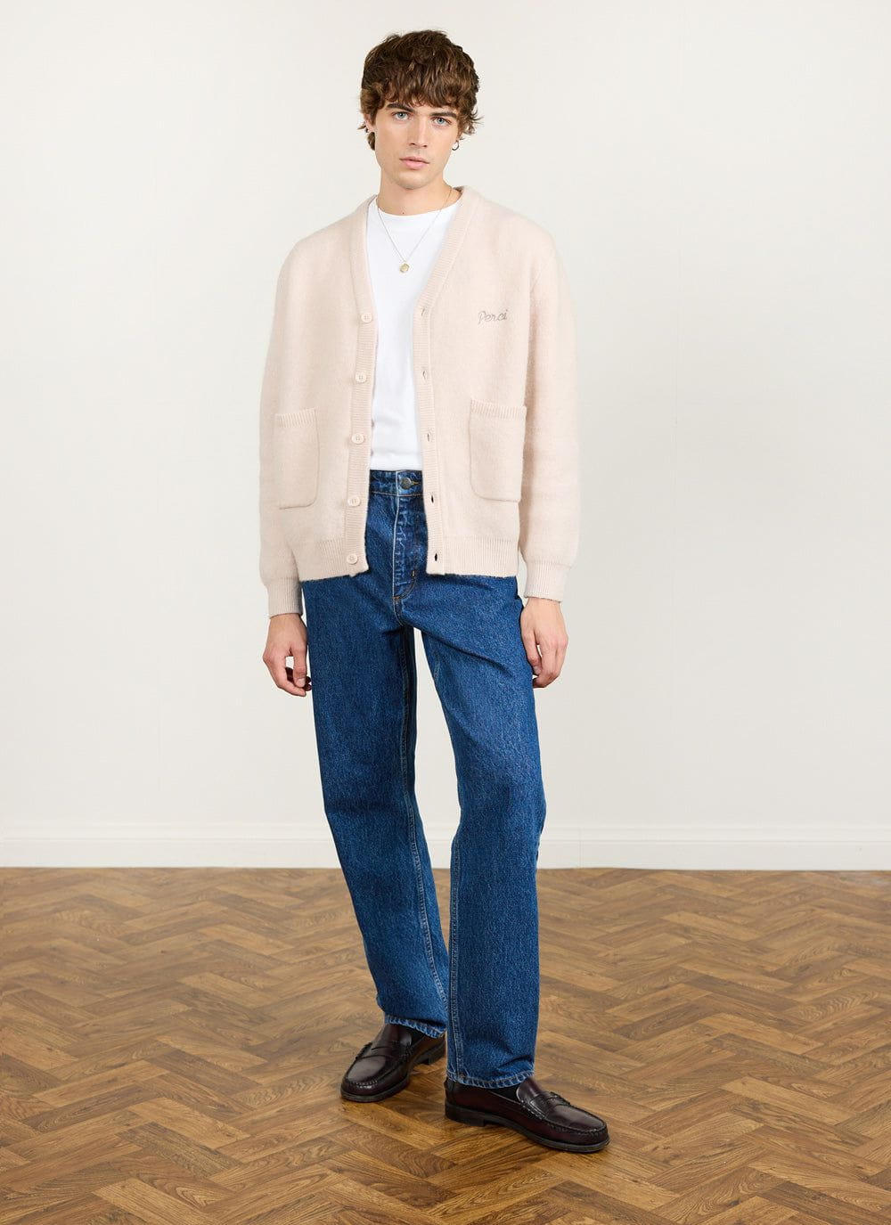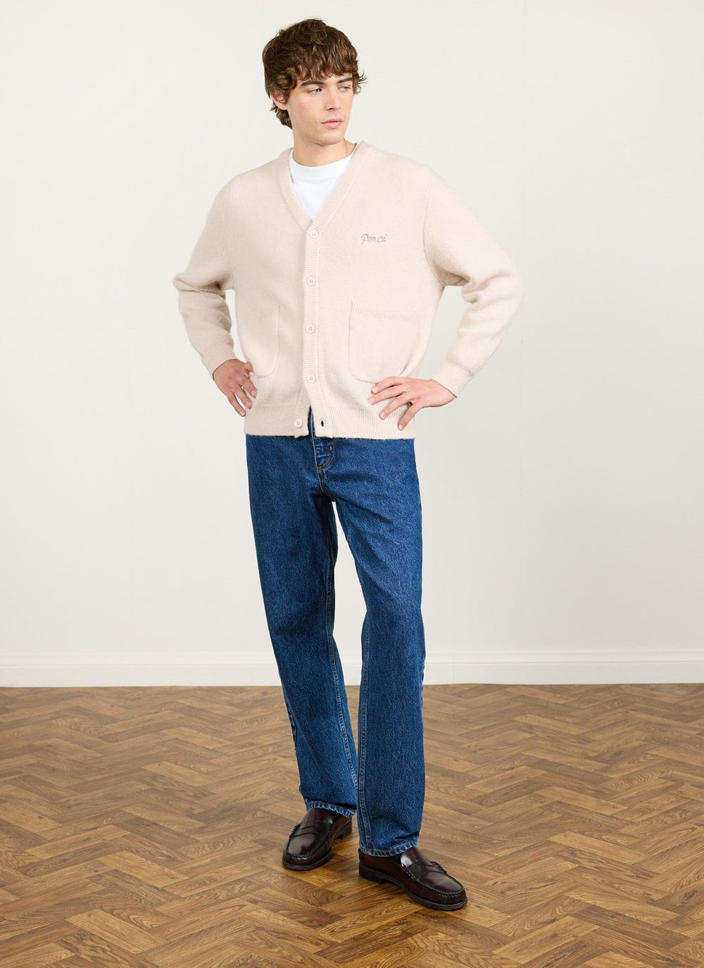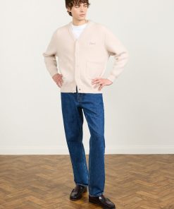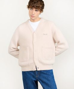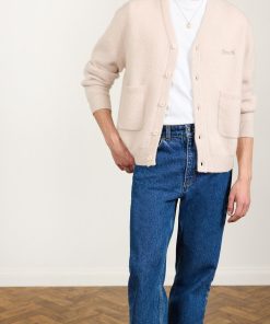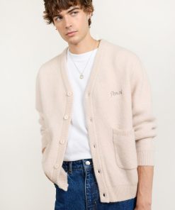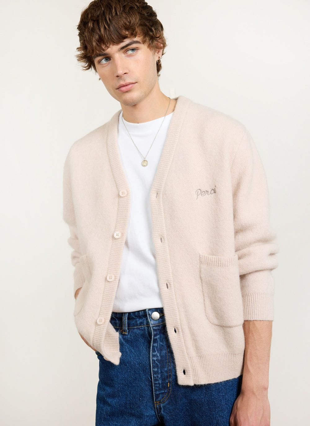 - Features: Men’s cream cardigan made from a soft mohair blend in a relaxed fit. Finished with unique white glove knitted detailing, this mohair cardigan is perfect for layering during cooler months. An elevated take on a wardrobe staple, ideal for casual yet refined styling.