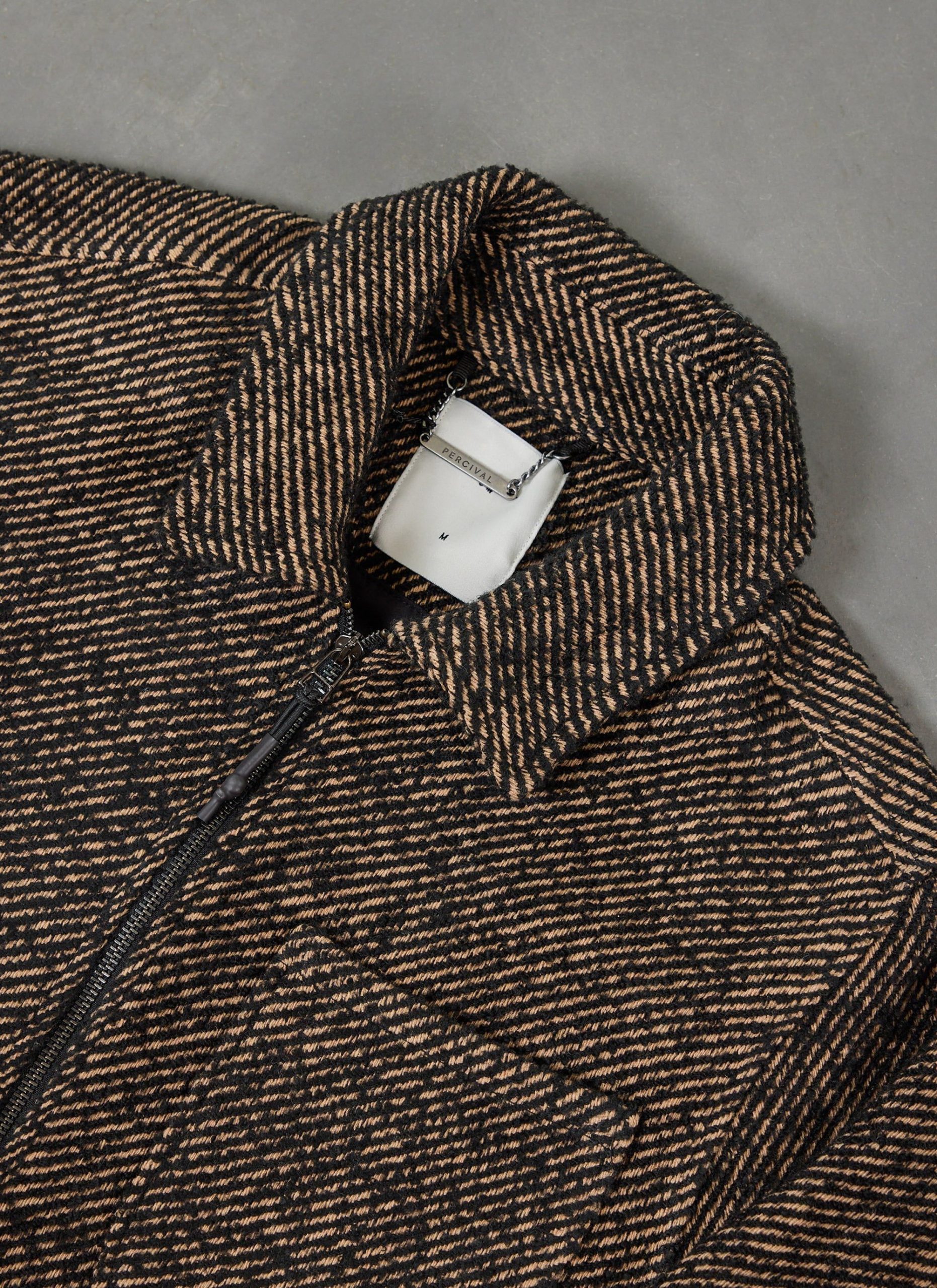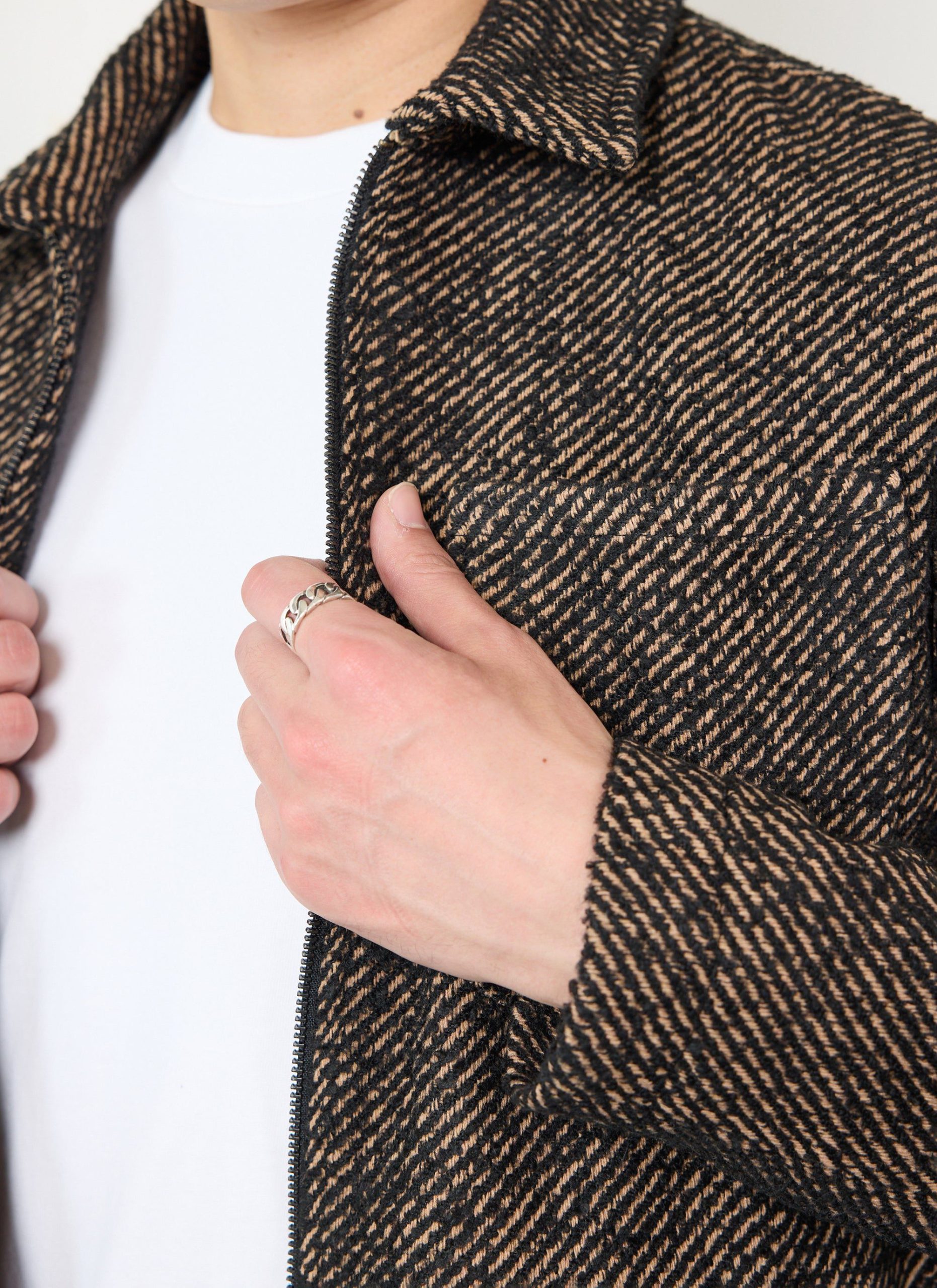 Oh me oh my oh nice new men’s jacket mate, look at this visual twill delight. In the colours of the season, lovely espresso tan, a deep luxury delight, blended with my favourite colour, black.Zip up, look smart, hem cut at the hip, hip too with a co-ord trouser option available. Perfect for those mid days.